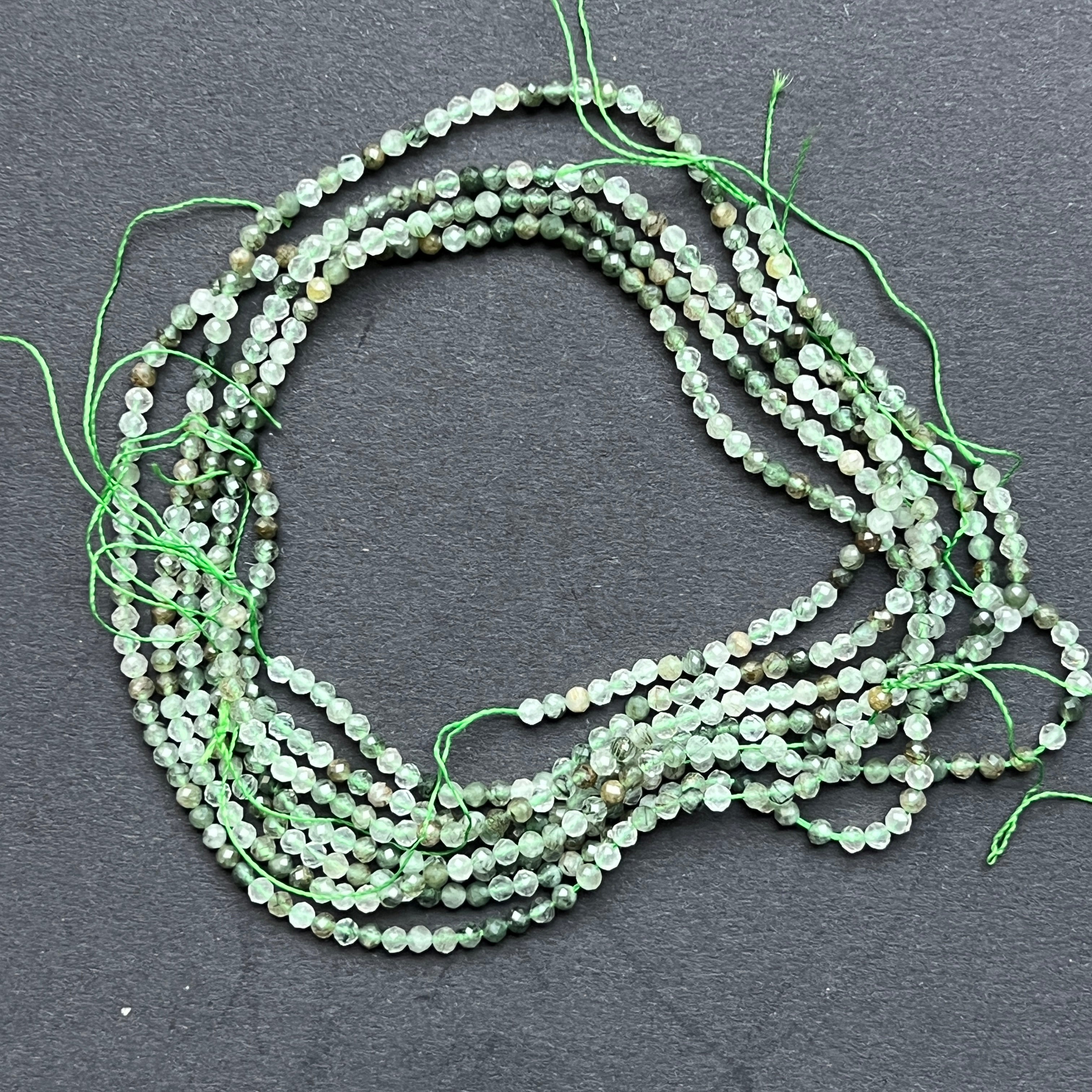 ZÖLD RUTILÁLT KVARTZ gyöngy, amelyből áll természetes FACETED gömbgyöngyök, tökéletes nyaklánchoz, karkötőhöz vagy más kézzel készített ékszerhez.