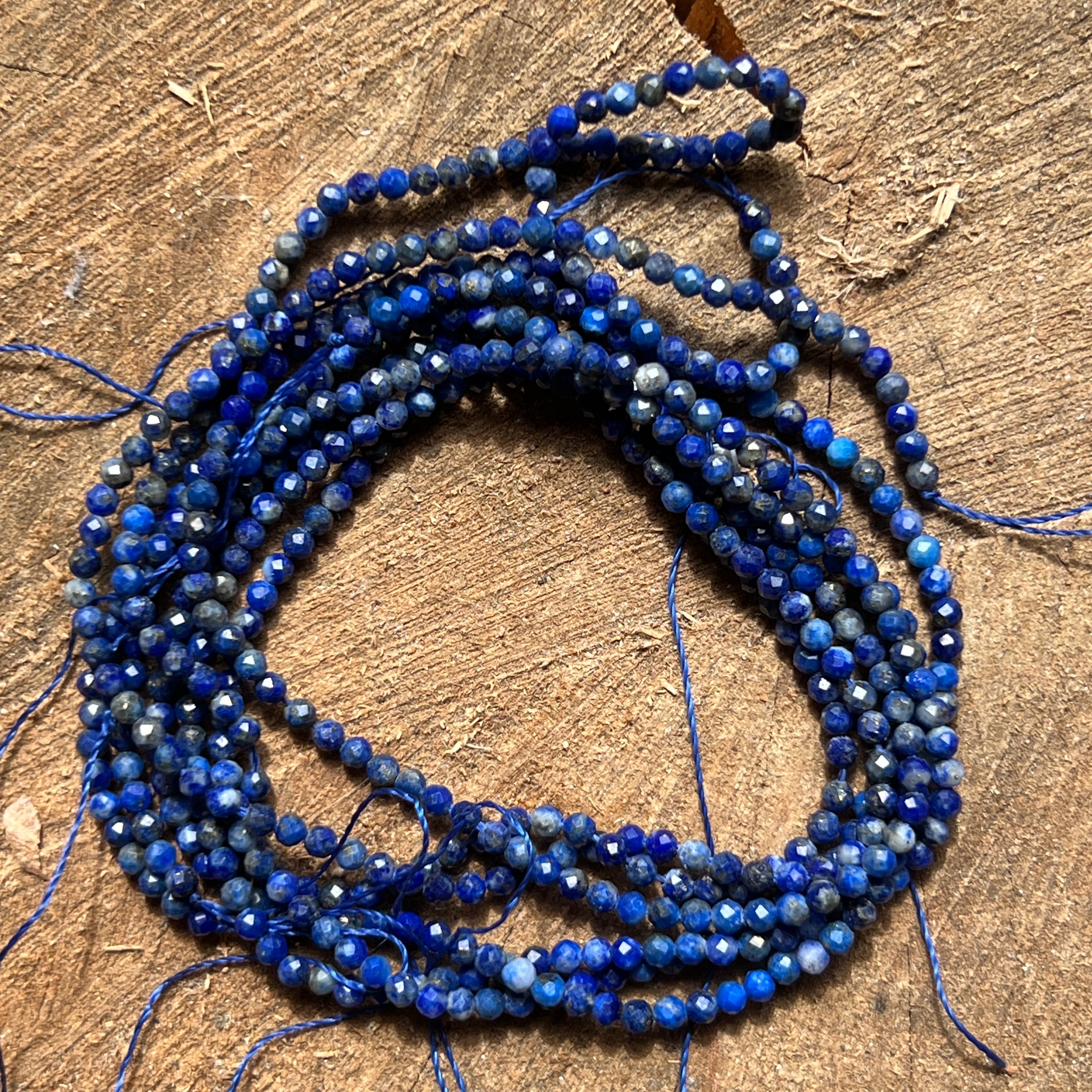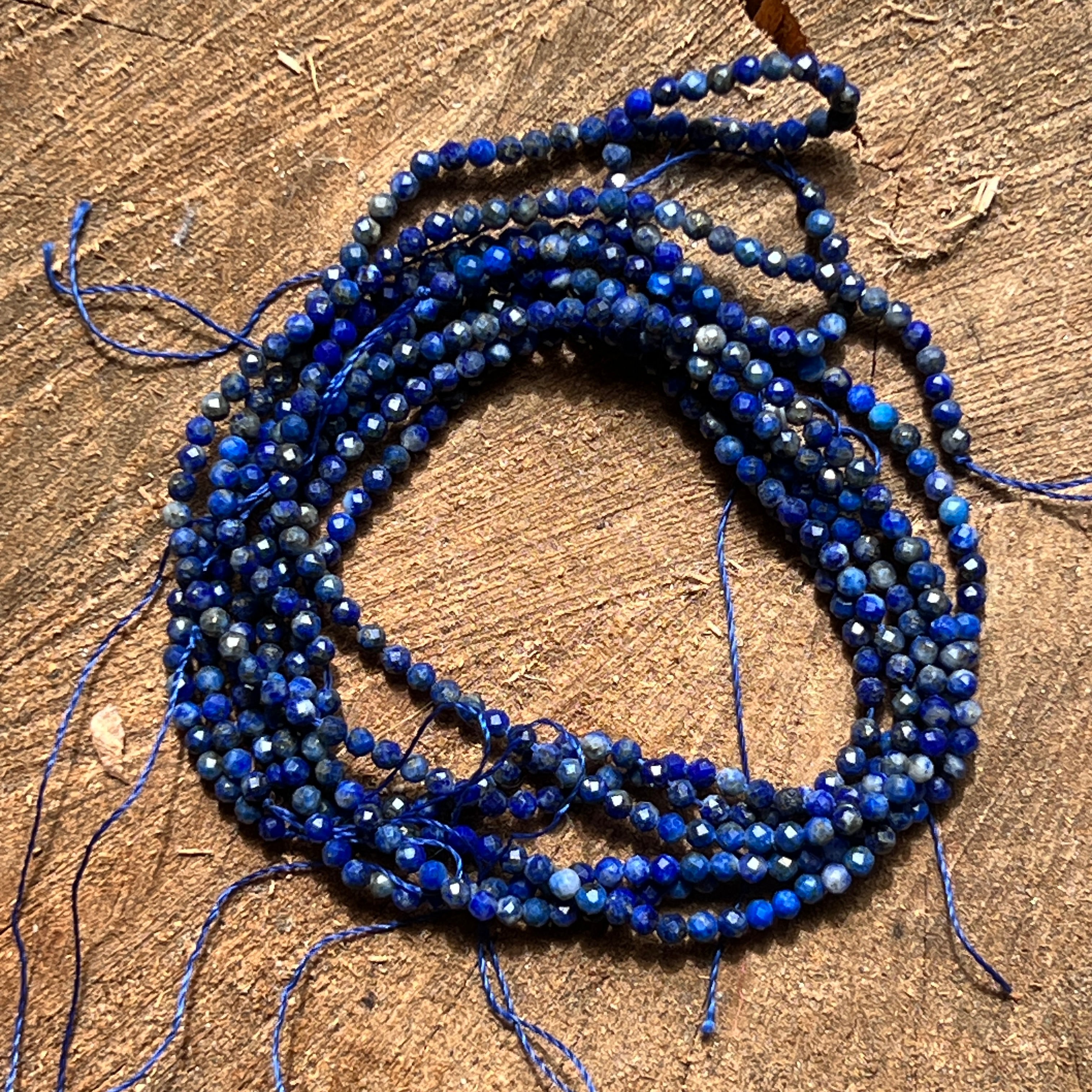 LAPIS LAZULI húrja, amelyből áll természetes csiszolt gömb alakú gyöngyök, tökéletes nyaklánchoz, karkötőhöz vagy más kézzel készített ékszerhez.