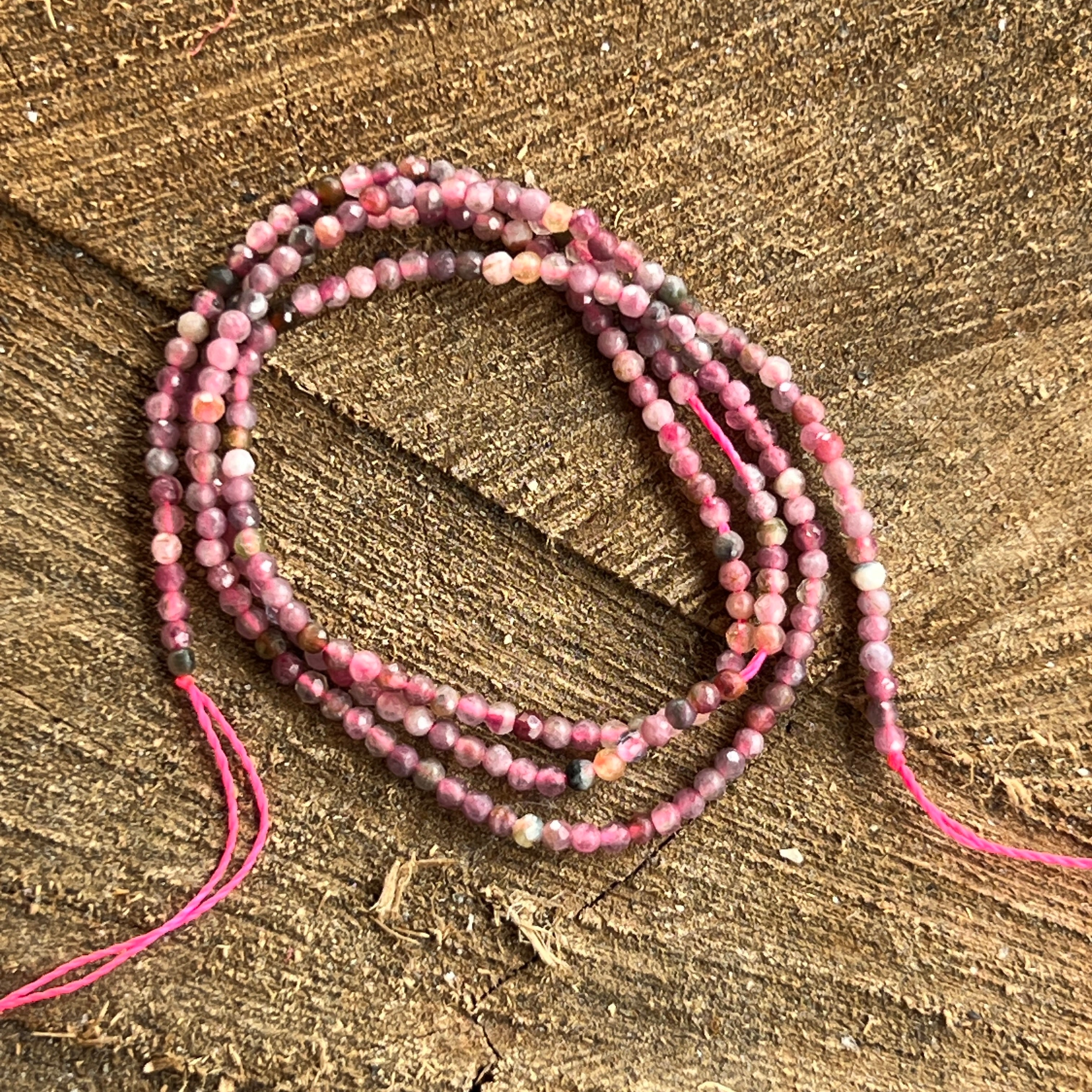 Rózsaszín turmalin nyaklánc, amelyből áll természetes FACETED gömbgyöngyök, tökéletes nyaklánchoz, karkötőhöz vagy más kézzel készített ékszerhez.