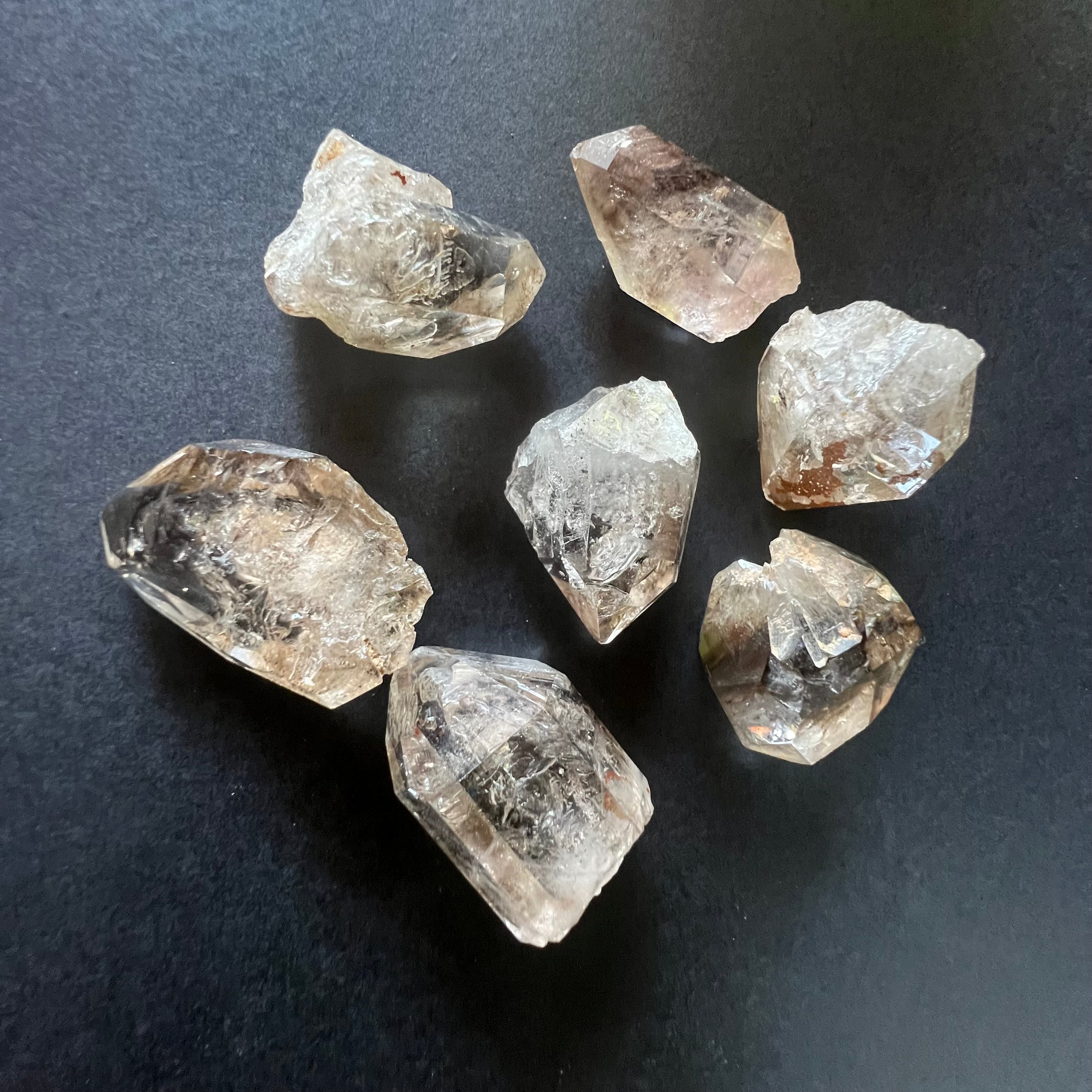 Füstkvarc, Brandberg bánya, kb. 2,5-3 cm-es méretben. Az egyik kvarcot fogja megkapni a képen látható darabok közül.