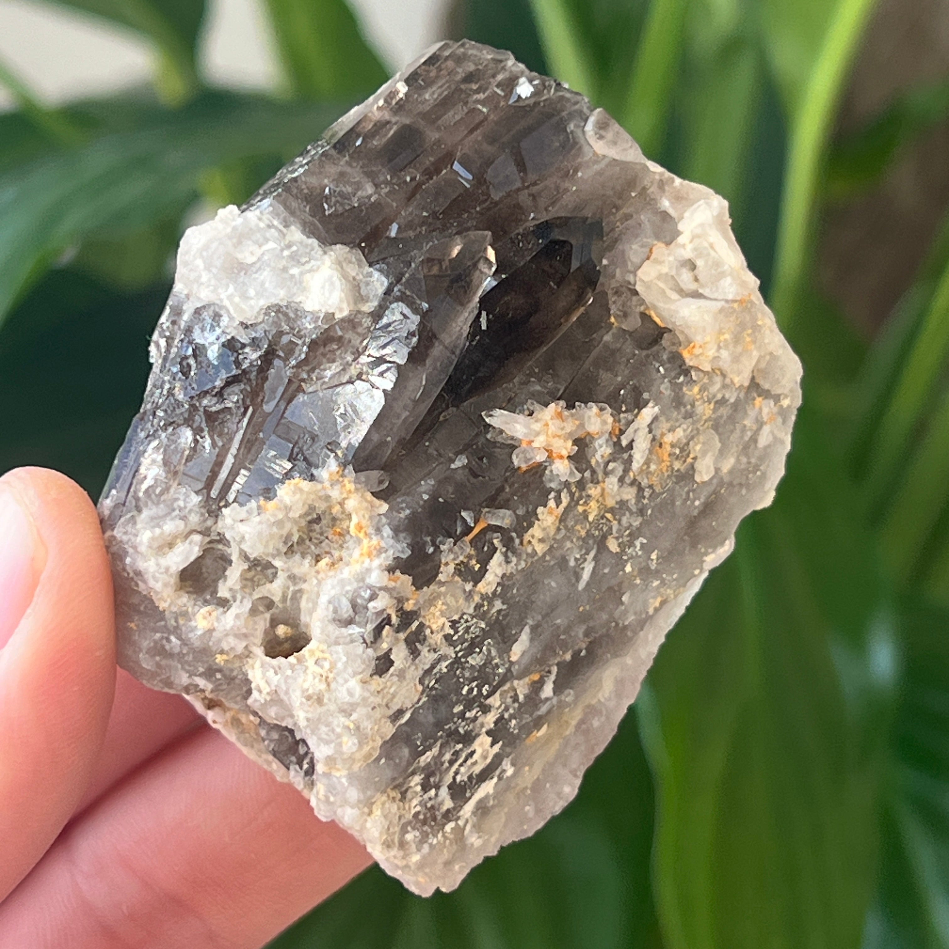 A környék füstkvarcát különösen nagyra értékelik természetes tisztasága, a barnás áttetsző tónusoktól a sötétbarnáig terjedő meleg árnyalatai, valamint a tökéletesen kifejlődött háromszög-rendszerű kristályformái miatt. Néhány kristály kettős végződéssel, szceptreszerű formákkal vagy lenyűgöző inklúziókkal rendelkezik – a hidrotermális gőztől és mozgó buborékoktól kezdve a hematit- vagy rutilnyomokig. A kristály képződése során a környező kőzetekből származó természetes sugárzás jelenléte adja ezt az autentikus füstös árnyalatot, hőkezelés vagy emberi beavatkozás nélkül.