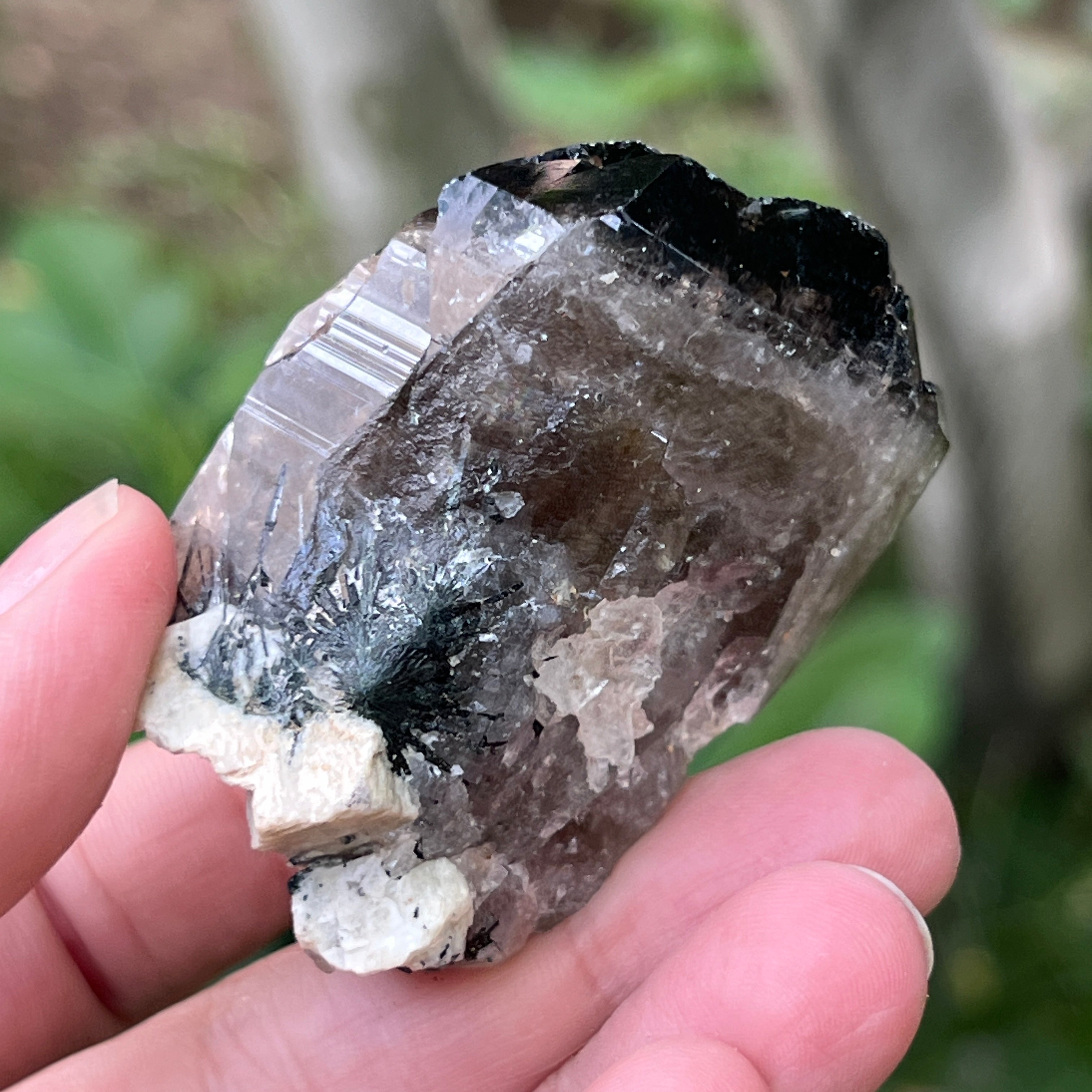 A füstölött kvarc ezen a területen különösen értékelhető természetes tisztasága, meleg áttetsző barna árnyalatai, valamint tökéletesen kidolgozott formái miatt a trigonális rendszerben. Néhány kristálynak kettős vége, jogar alakja vagy lenyűgöző kizárása van – a hidrotermális gőzöktől és mozgó buborékoktól kezdve a hematit vagy rutil nyomaiig. A kristály kialakulásakor a környező kövekből származó sugárzás természetes jelenléte autentikus füstös árnyalatot ad, hőkezelés vagy emberi beavatkozás nélkül.