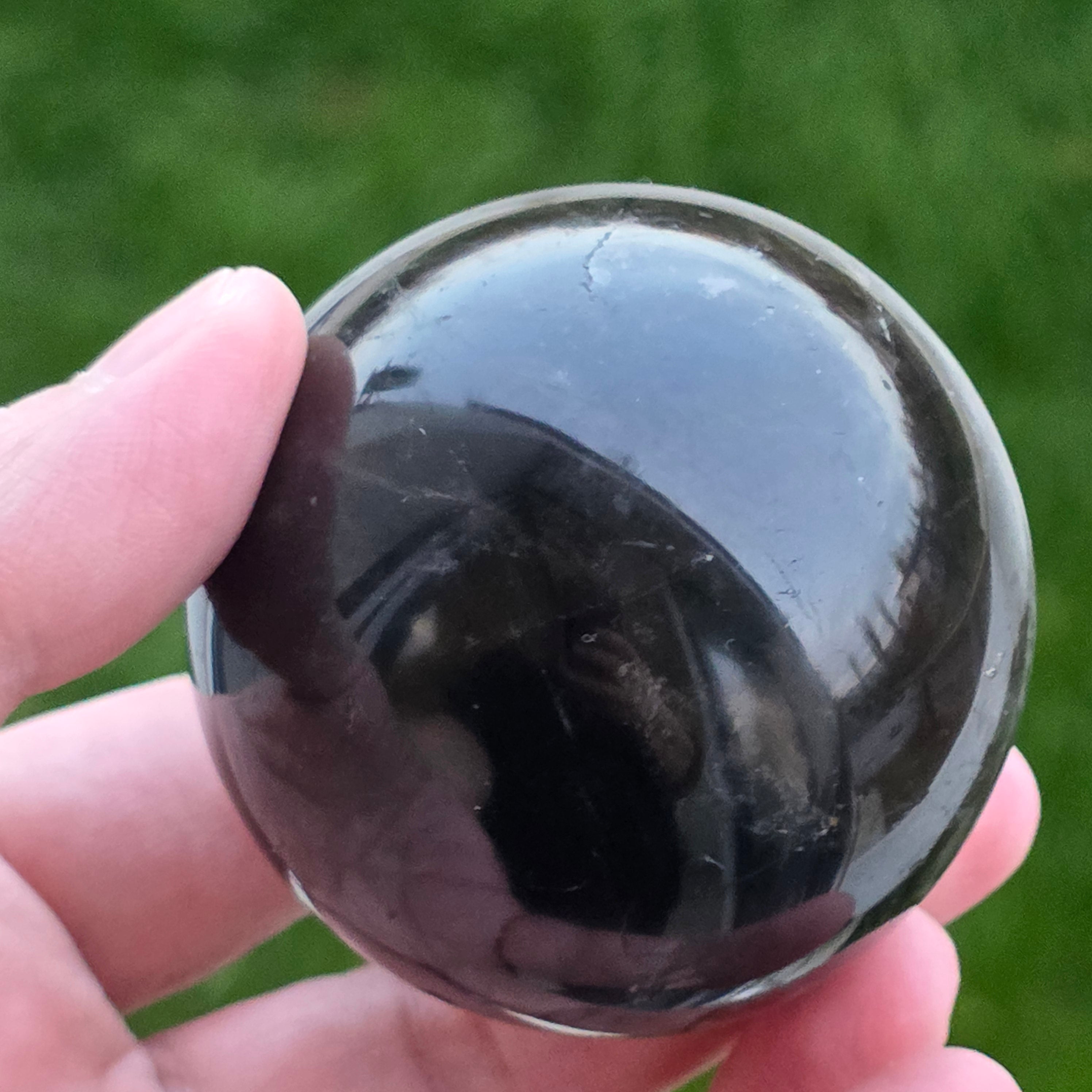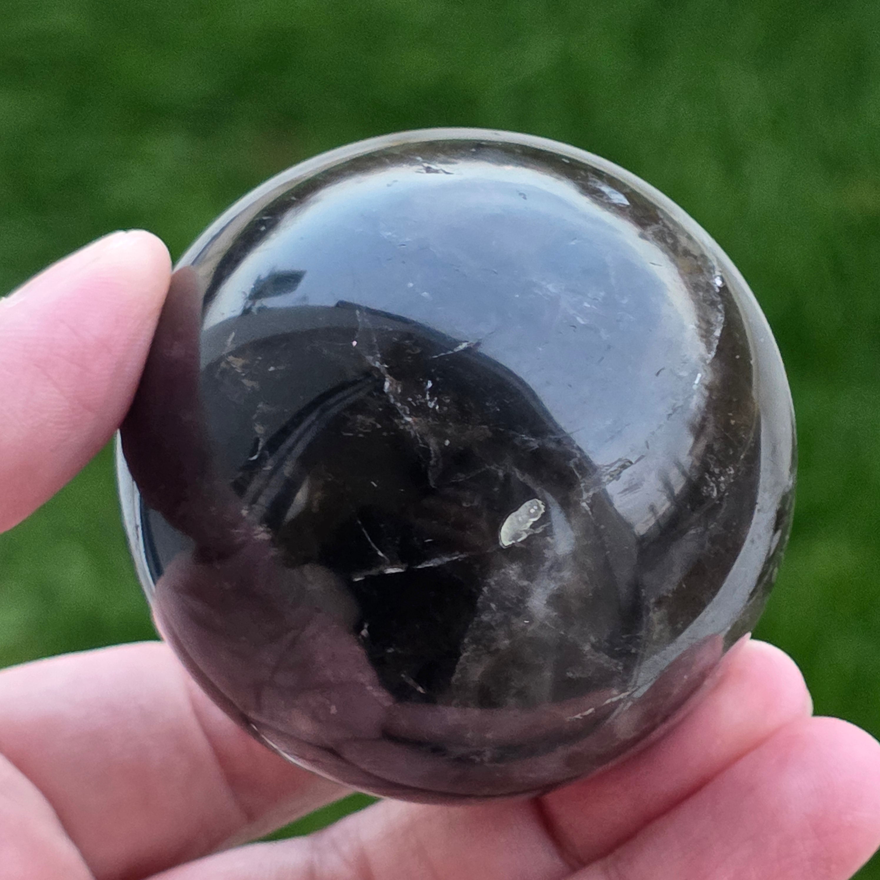 A morion kvarc gömb egy erőteljes és elegáns darab, amely mély, füsthöz vagy átlátszó obszidiánhoz hasonló árnyalatáról ismert. A morion a füstkvarc legsötétebb változata, és ebben a tökéletesen kerek formában diszkrét fényvisszaverődéseket, finom belső részleteket és valóban kifinomult vizuális jelenlétet tár fel.