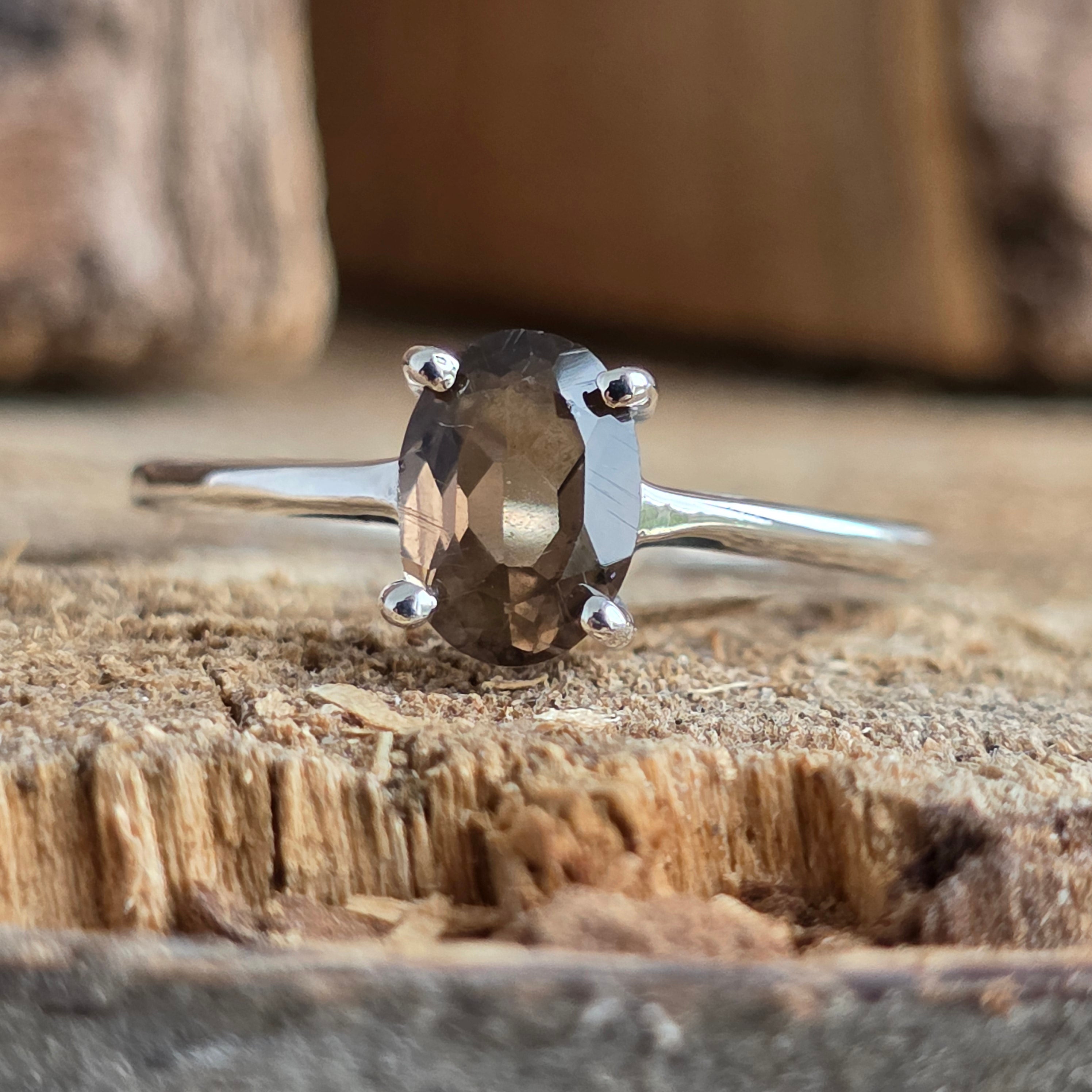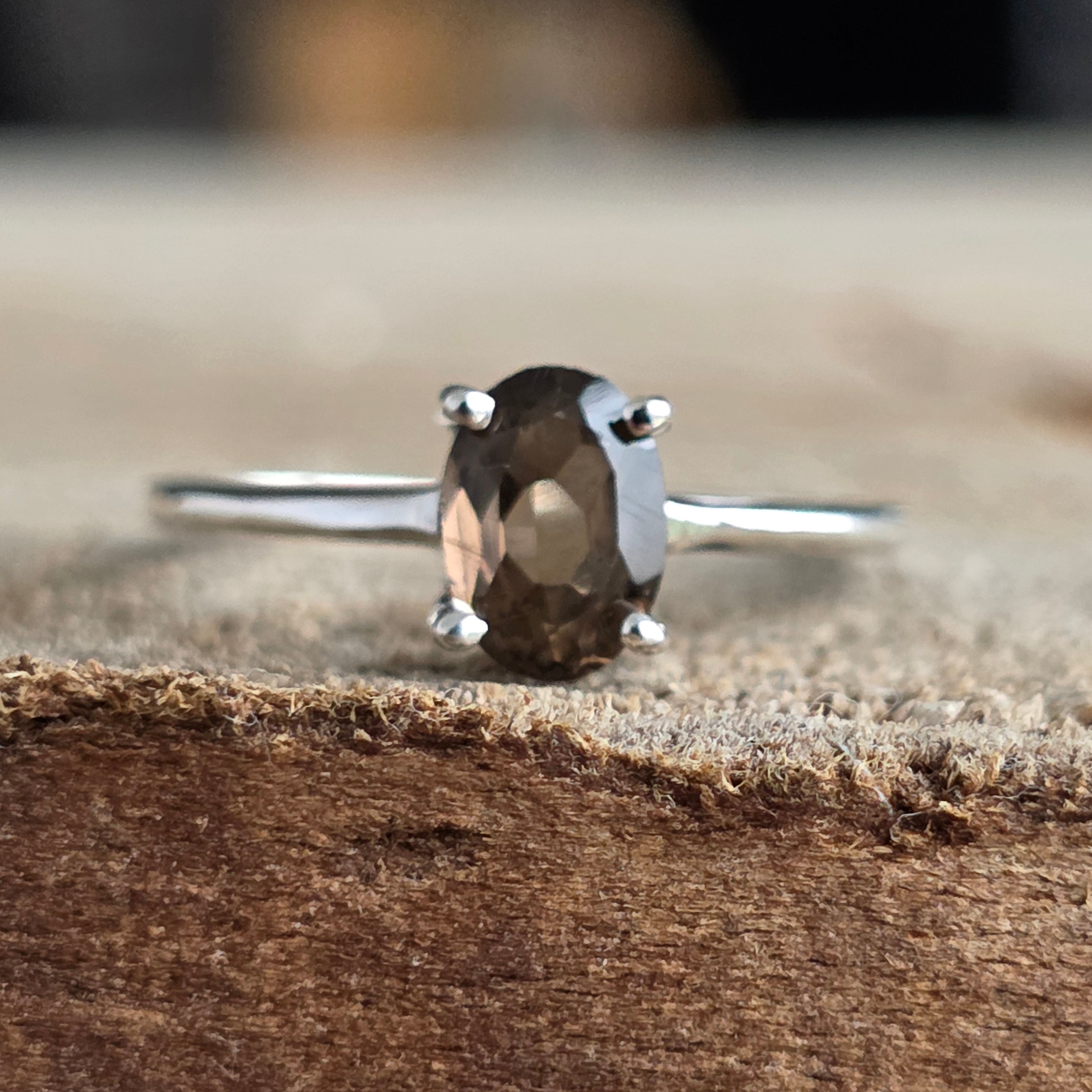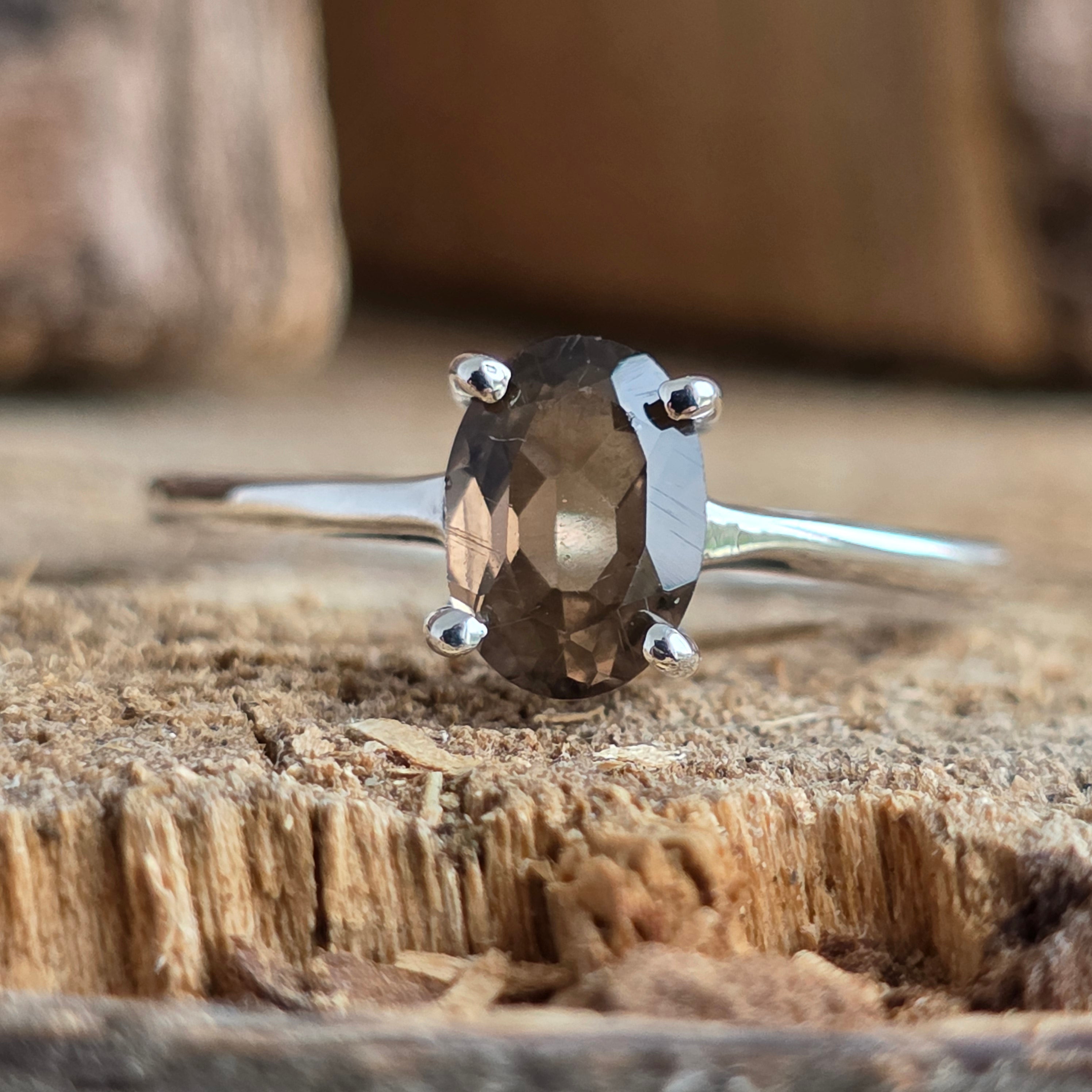 Elegáns és titokzatos, ez 925 ezüst gyűrű kiemeli az áttetsző mélységét füstös topáz, a rögzítés és a belső bölcsesség köve.