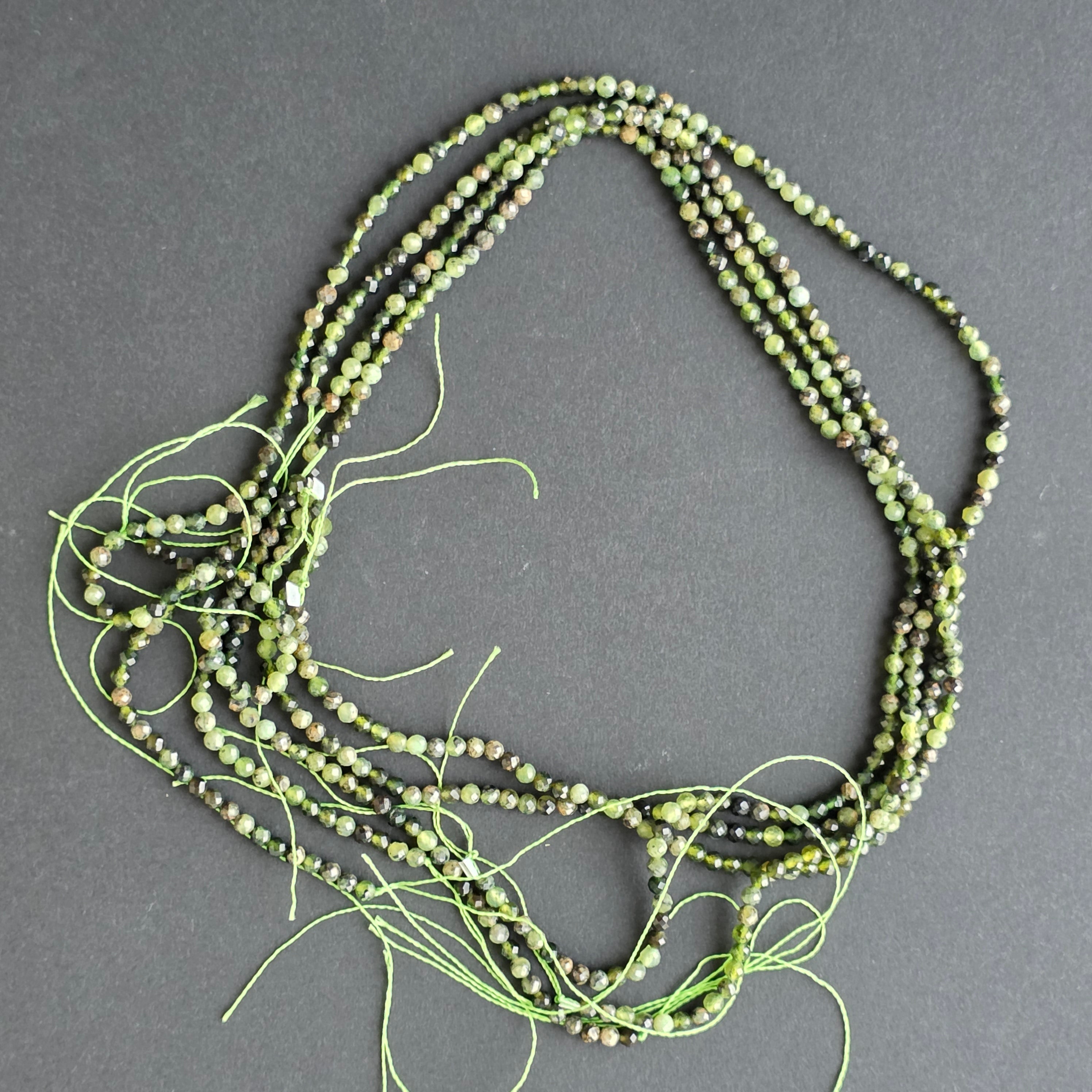 Füzér gyöngyök féldrágakövekből, csiszolt gömbök, GROZULÁR GRÁNÁT