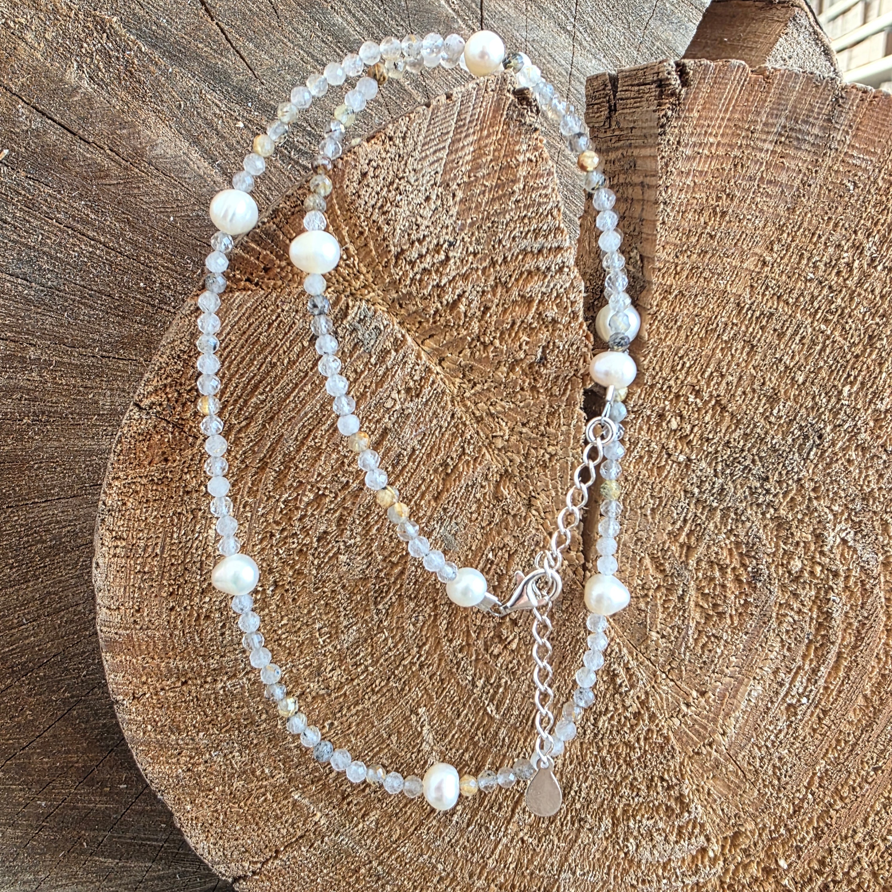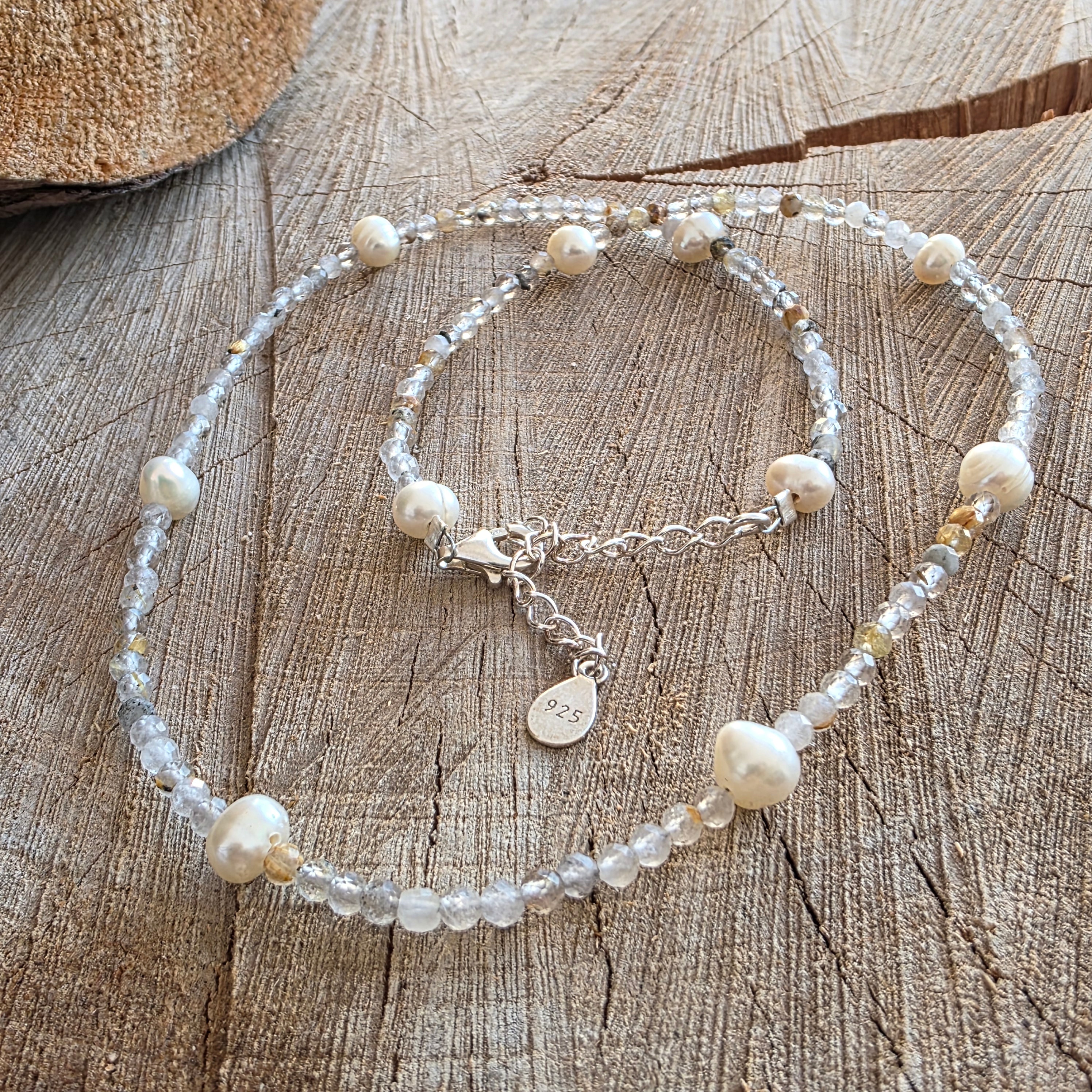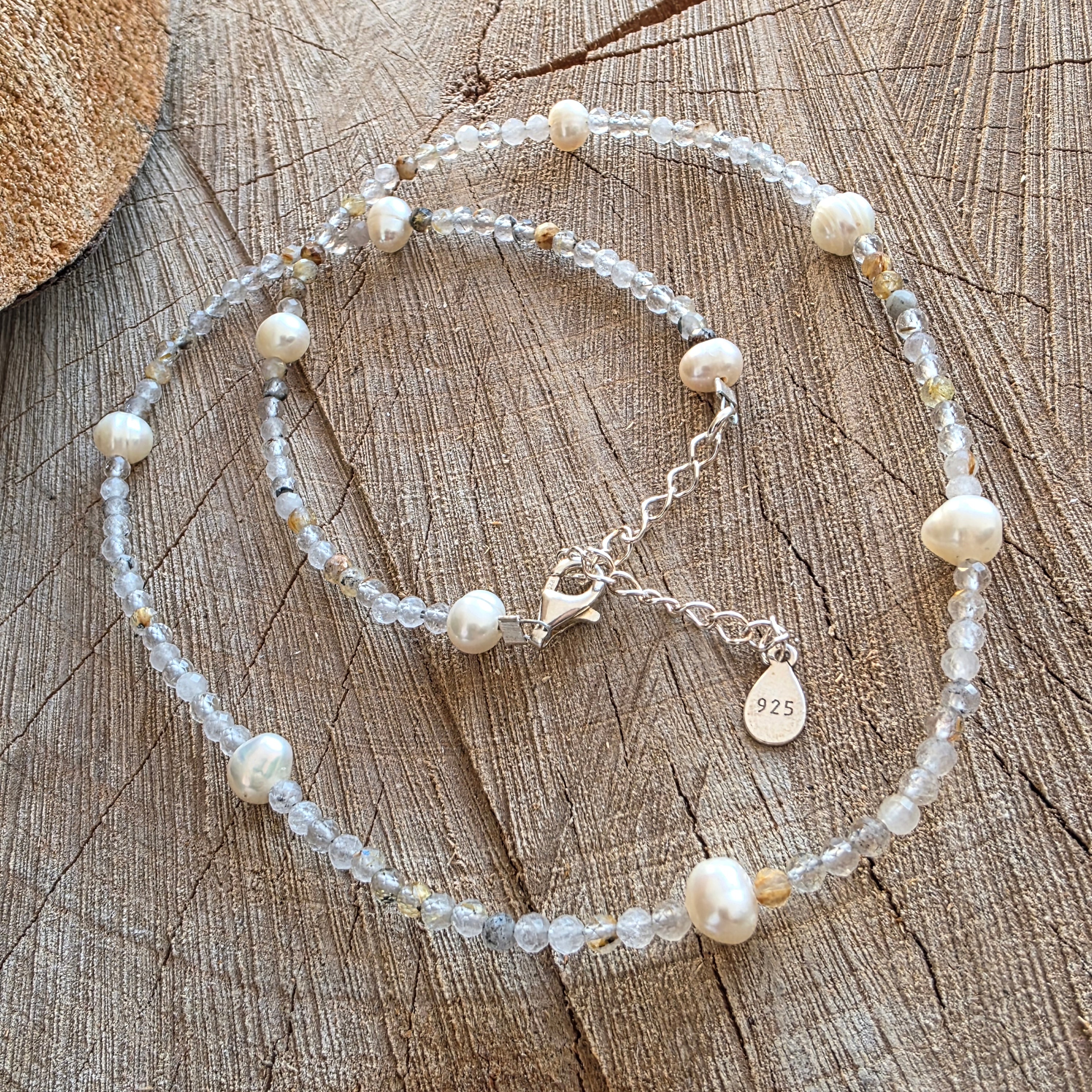 A rutilált kvarcot a belső igazsággal és a mély energetikai megtisztulással való kapcsolat kövének tekintik. A mentális tisztaságra, az érzelmi egyensúlyra és az álmok valóságba rögzítésére használják. Ezzel szemben a gyöngyök érzelmi támogatást, tudatos nőiességet és finom védelmet adnak. Együtt mesélnek el egy történetet a világosság eleganciájáról és a szelídség erejéről.