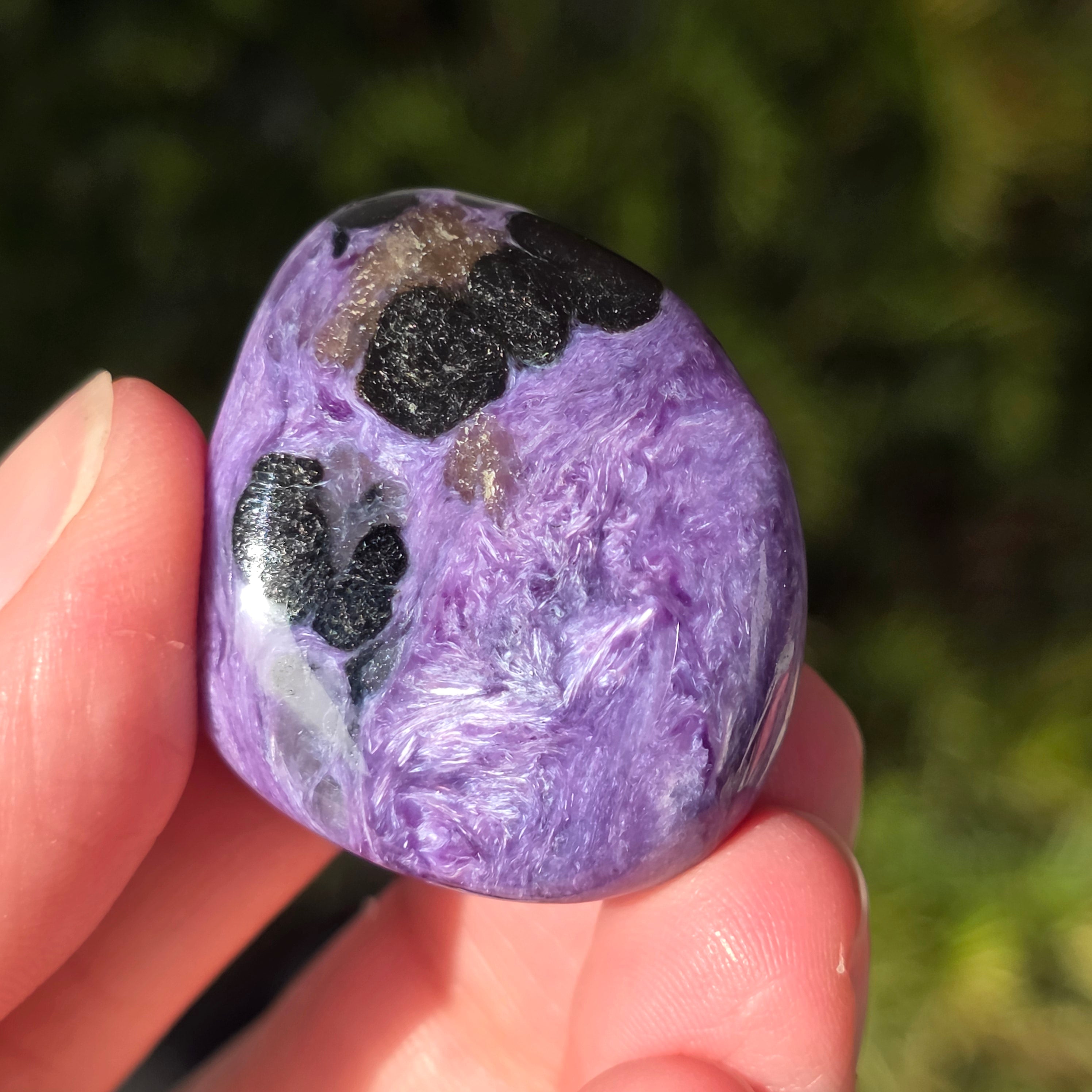 A Charoit az érzelmi és spirituális gyógyuláshoz kapcsolódik, megnyugtatja az elmét és egyensúlyba hozza az energiákat. Úgy gondolják, hogy ez a kő képes előmozdítani az önvizsgálatot és erősíti az intuíciót.