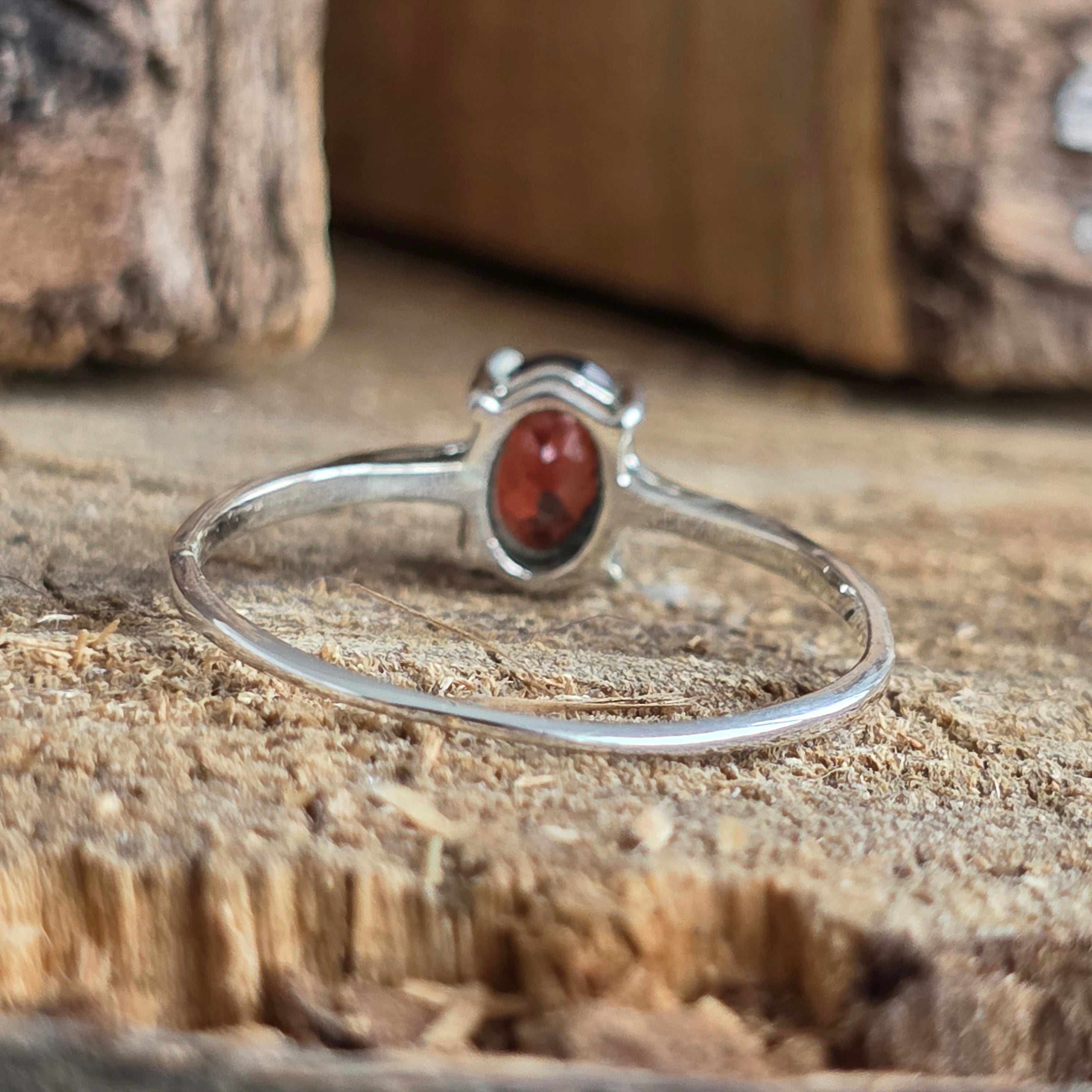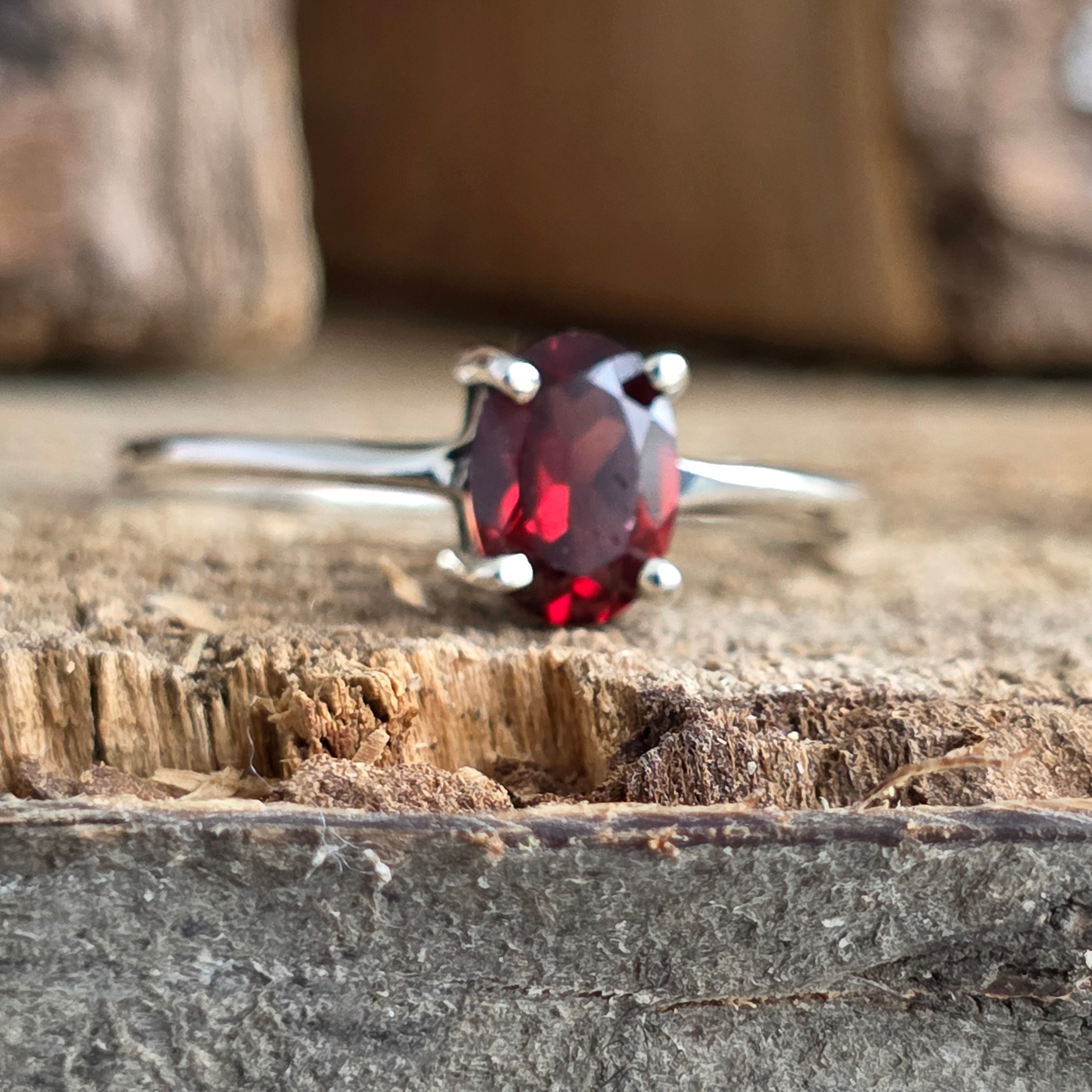 Rubin fényű és meleg energiával, ez 925 ezüst gyűrű kihozza az intenzitást természetes gránát, a szenvedély és a vitalitás köve.