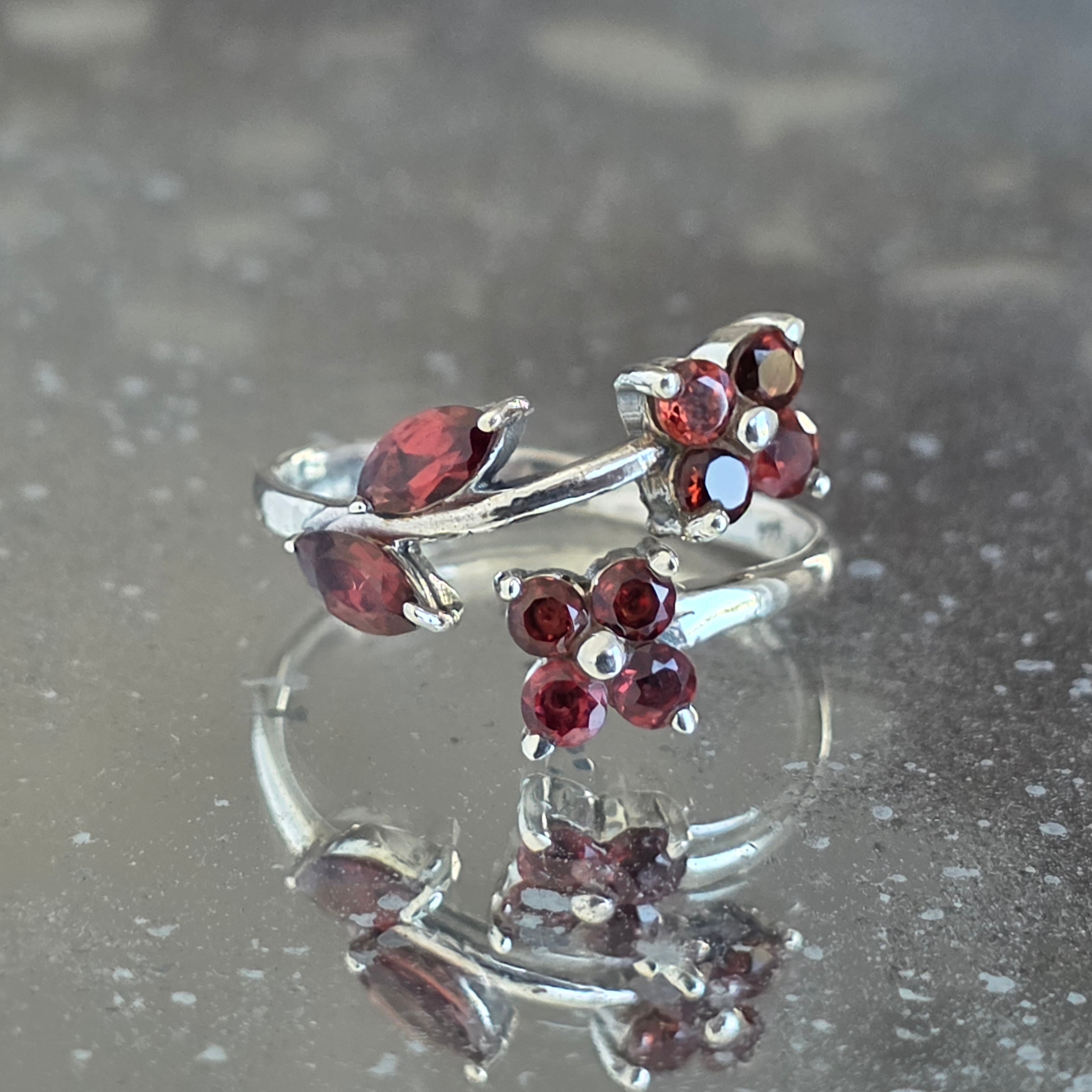 Leírás - Gránát ezüst gyűrű | Virágok 1
