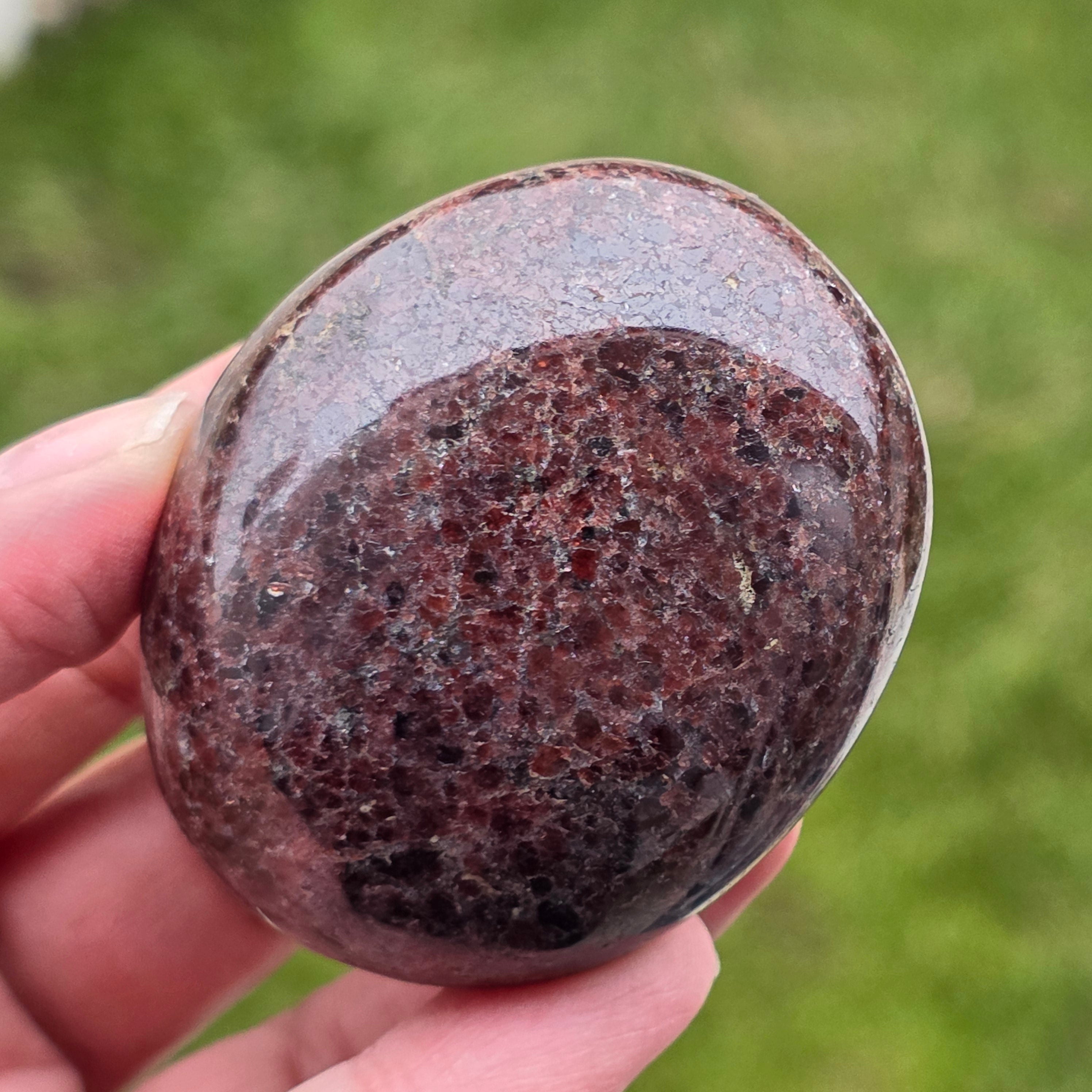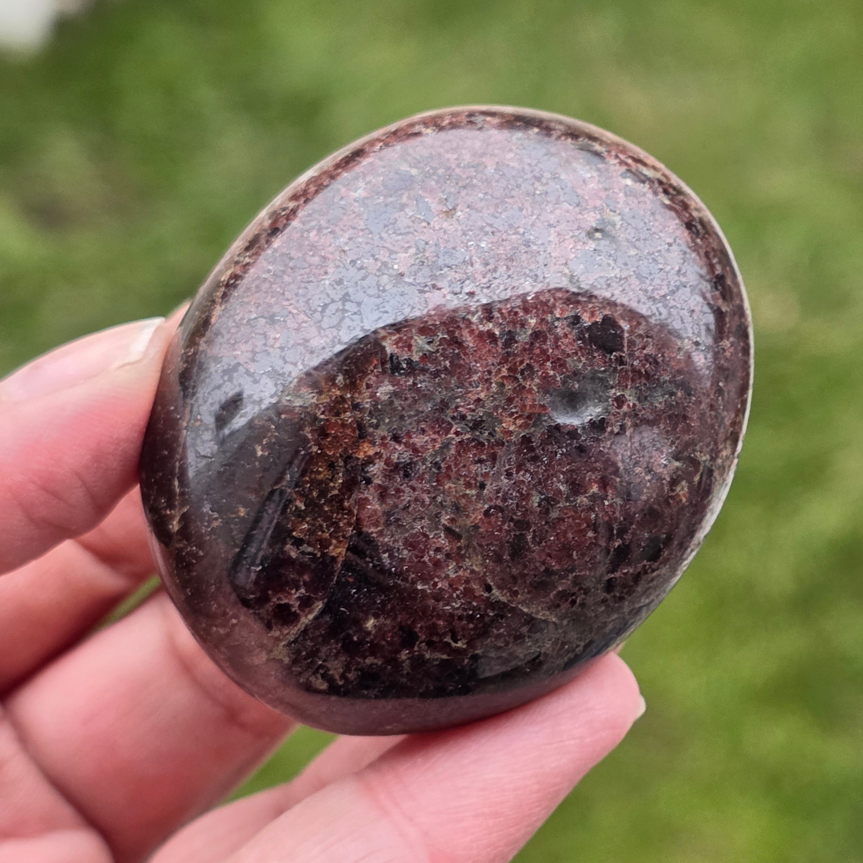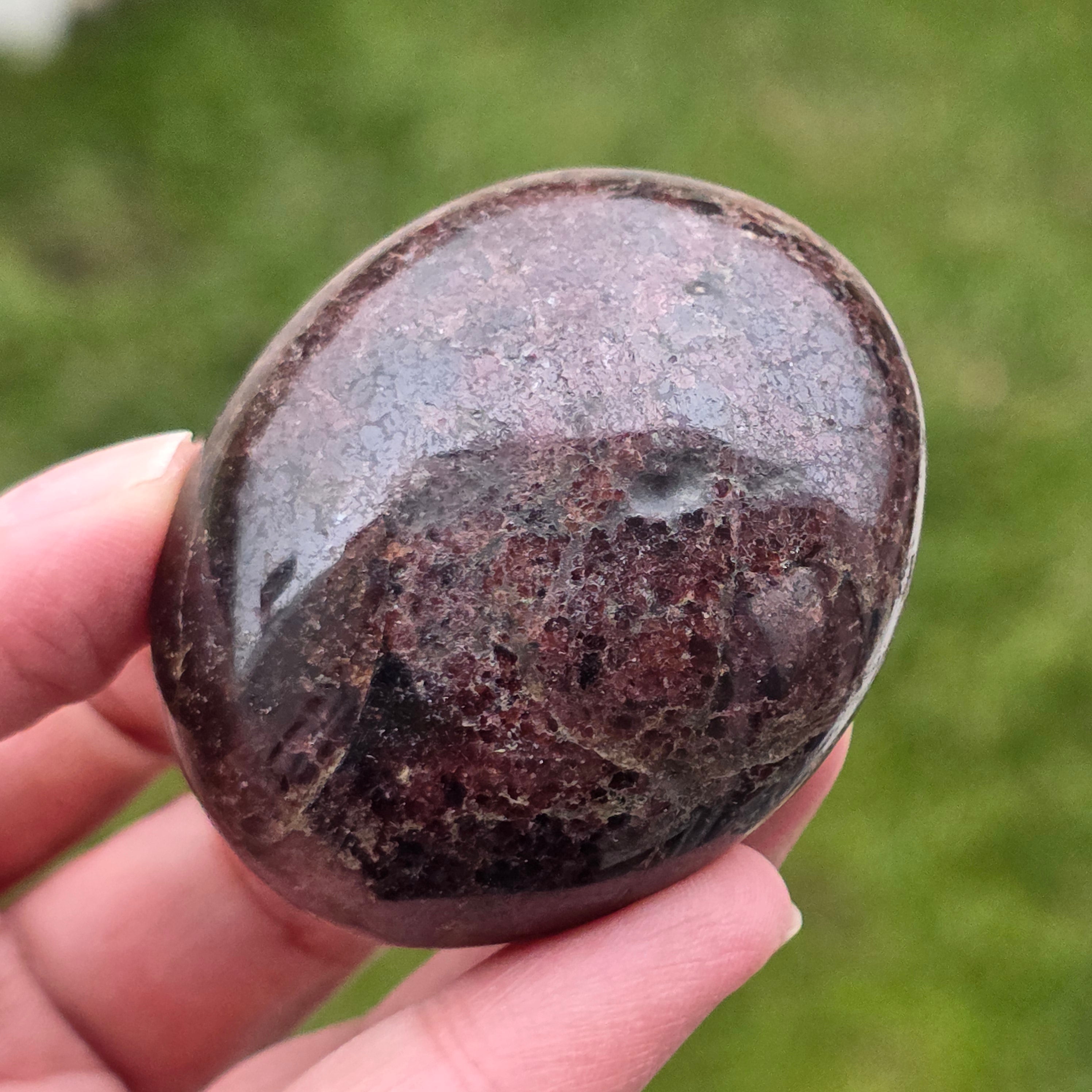 Ez a természetes gránát tenyérkő tökéletes a meditációhoz, az önvizsgálathoz, vagy egyszerűen csak, hogy a közelében tartsd azokat a pillanatokat, amikor rögzítésre és stabilitásra van szükséged. Mély energiája rezonál a gyökércsakrával, életerőt és védelmet hoz.