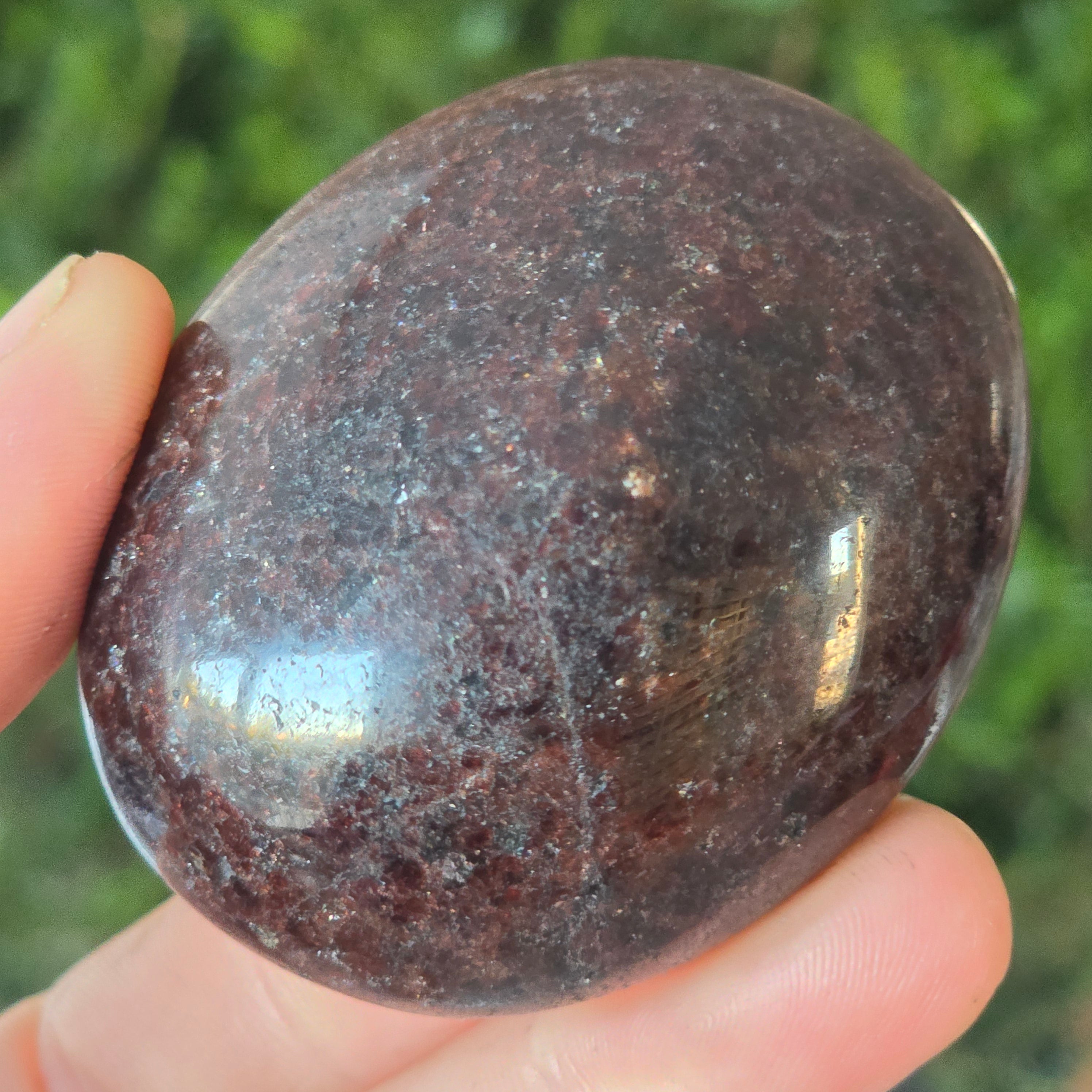 Ez a természetes gránát tenyérkő tökéletes meditációhoz, önvizsgálathoz, vagy egyszerűen ahhoz, hogy közel tartsd, amikor stabilitásra és kiegyensúlyozottságra van szükséged. Mély energiája összhangban van a gyökércsakrával, vitalitást és védelmet hoz.