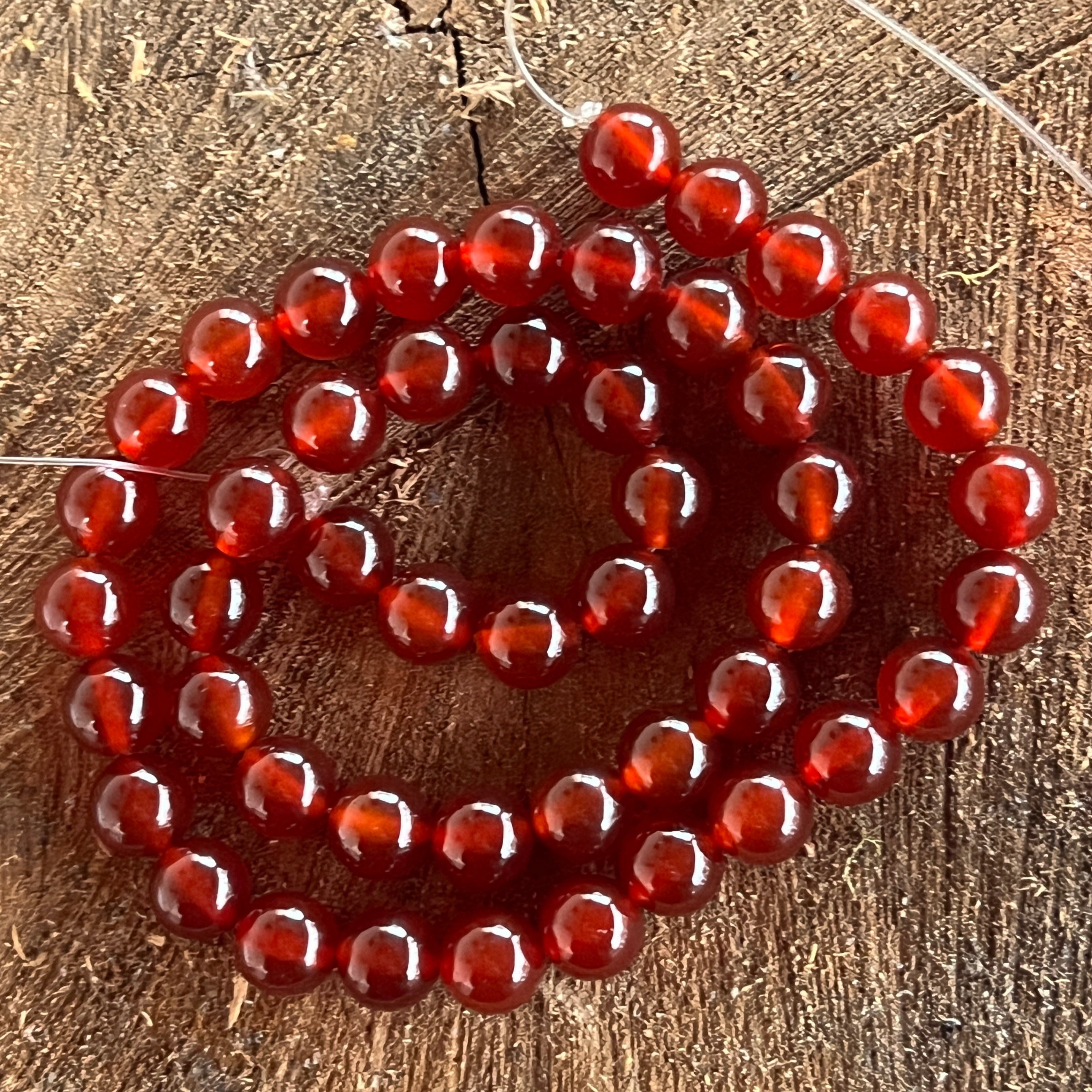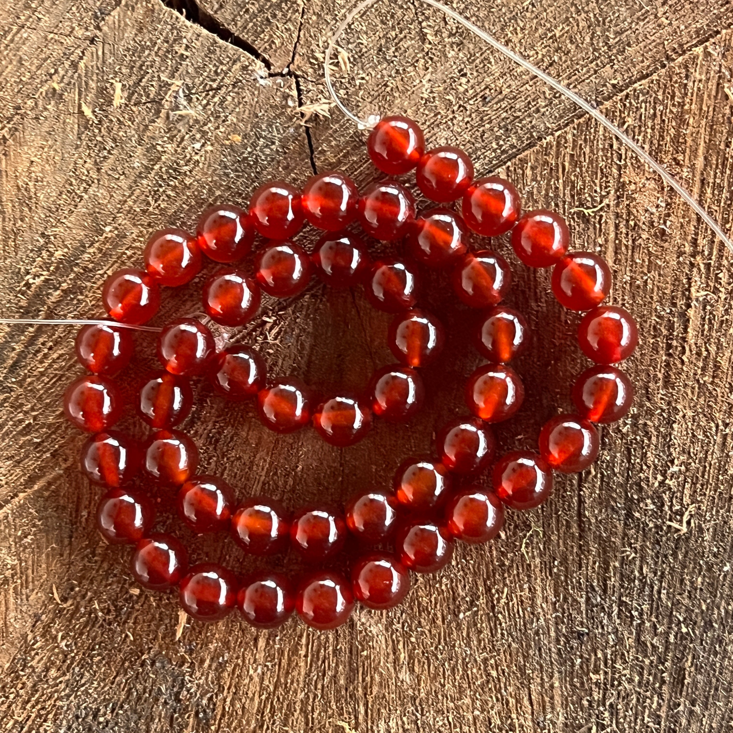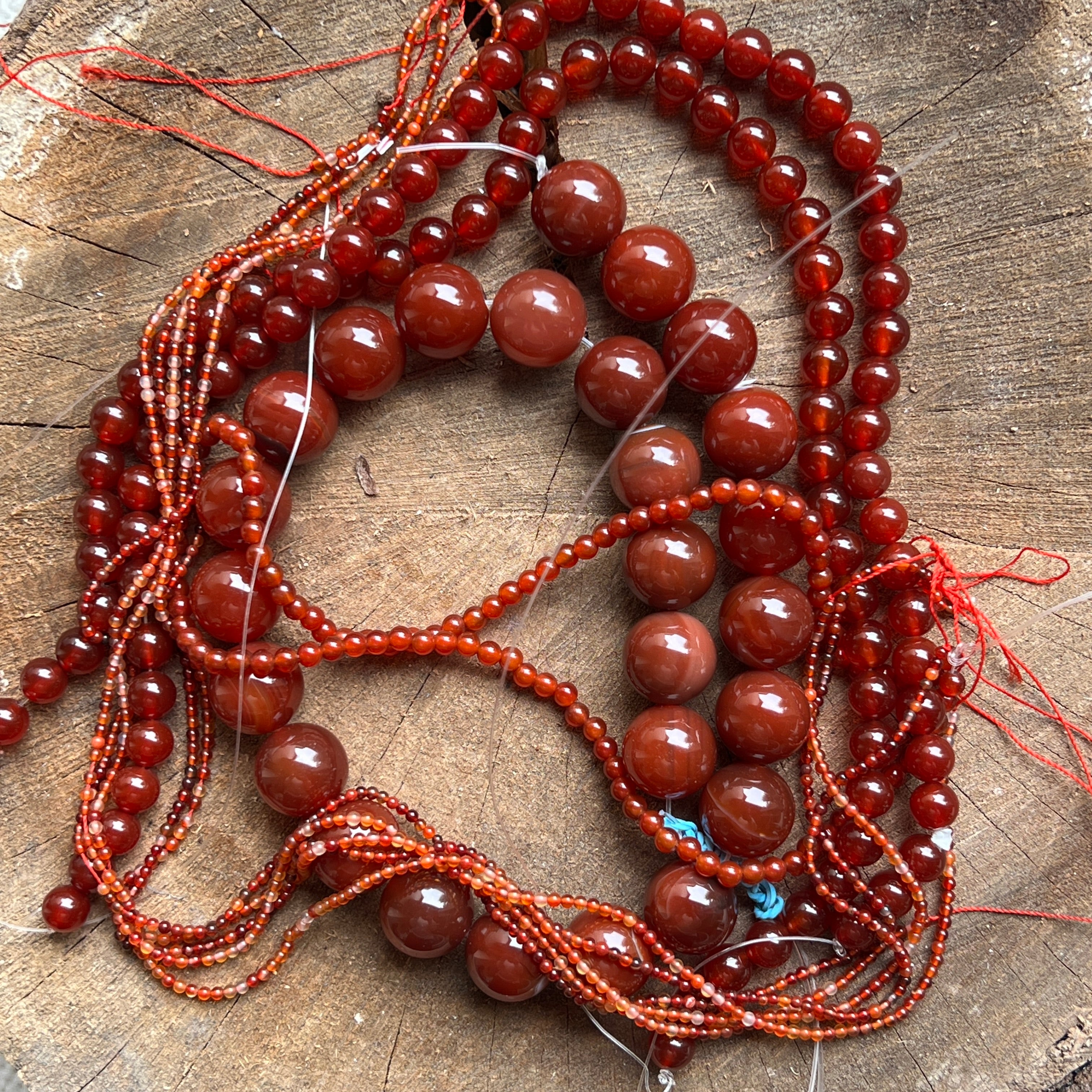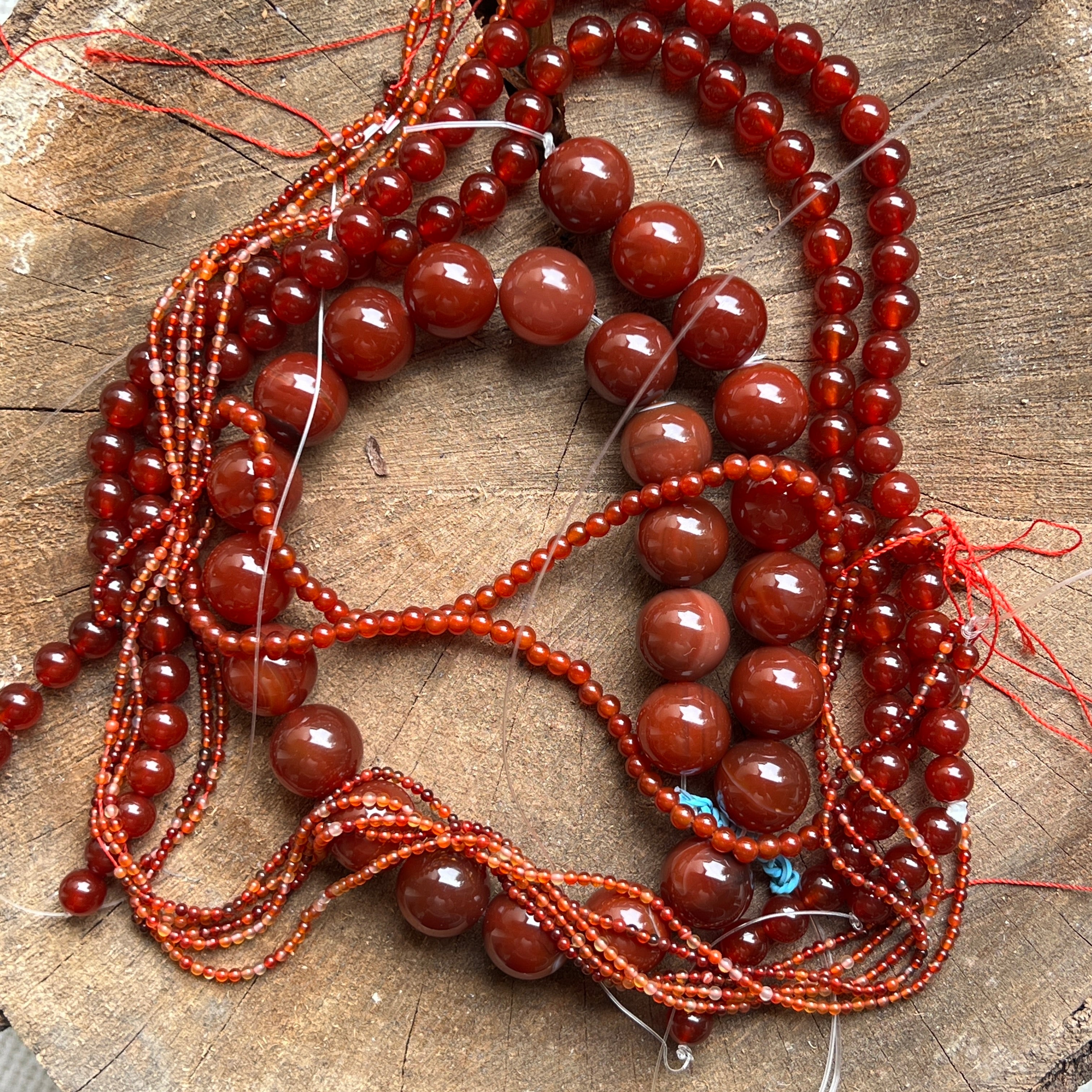 Karneol szirup, amelyből áll természetes gömb alakú gyöngyök, tökéletes nyaklánchoz, karkötőhöz vagy más kézzel készített ékszerhez.