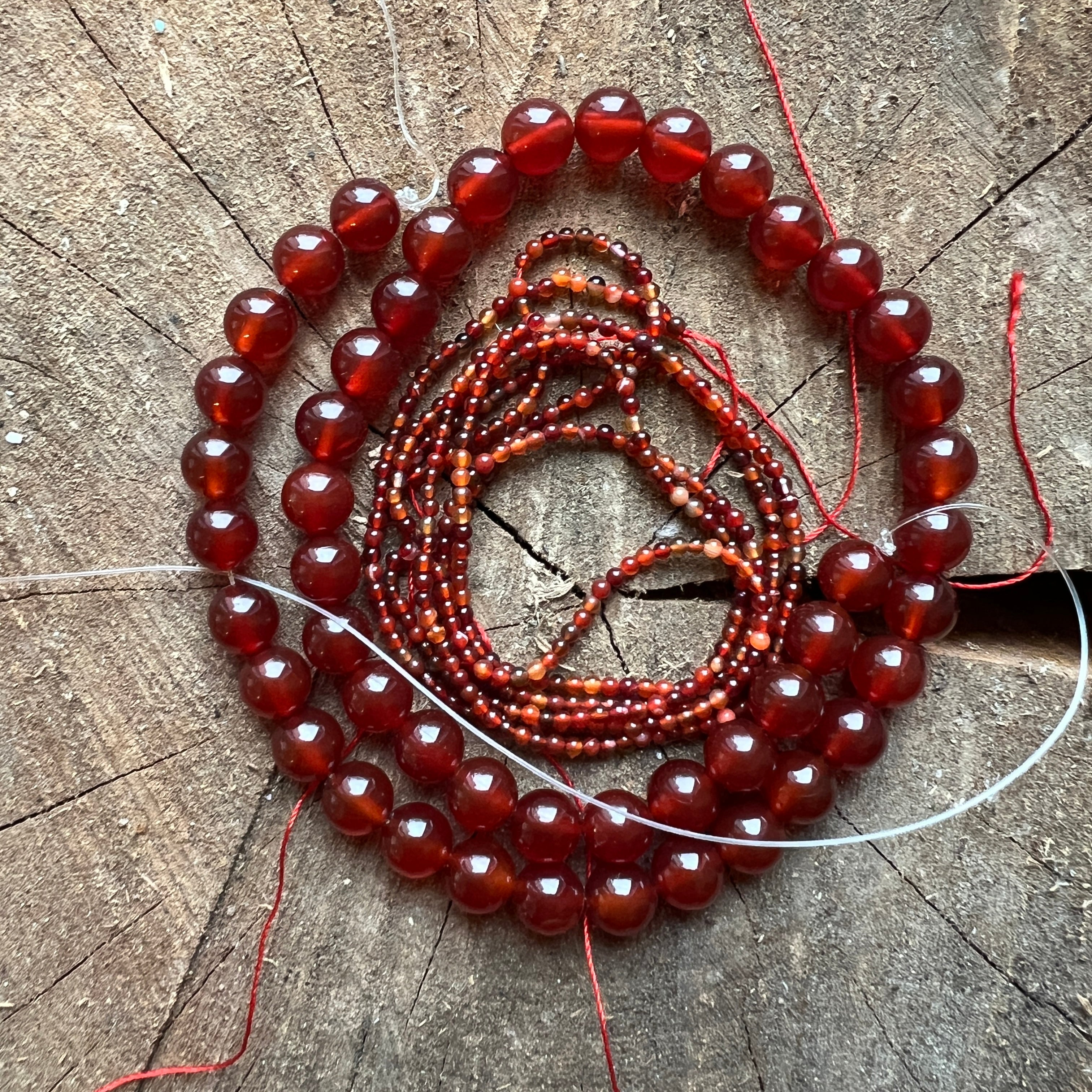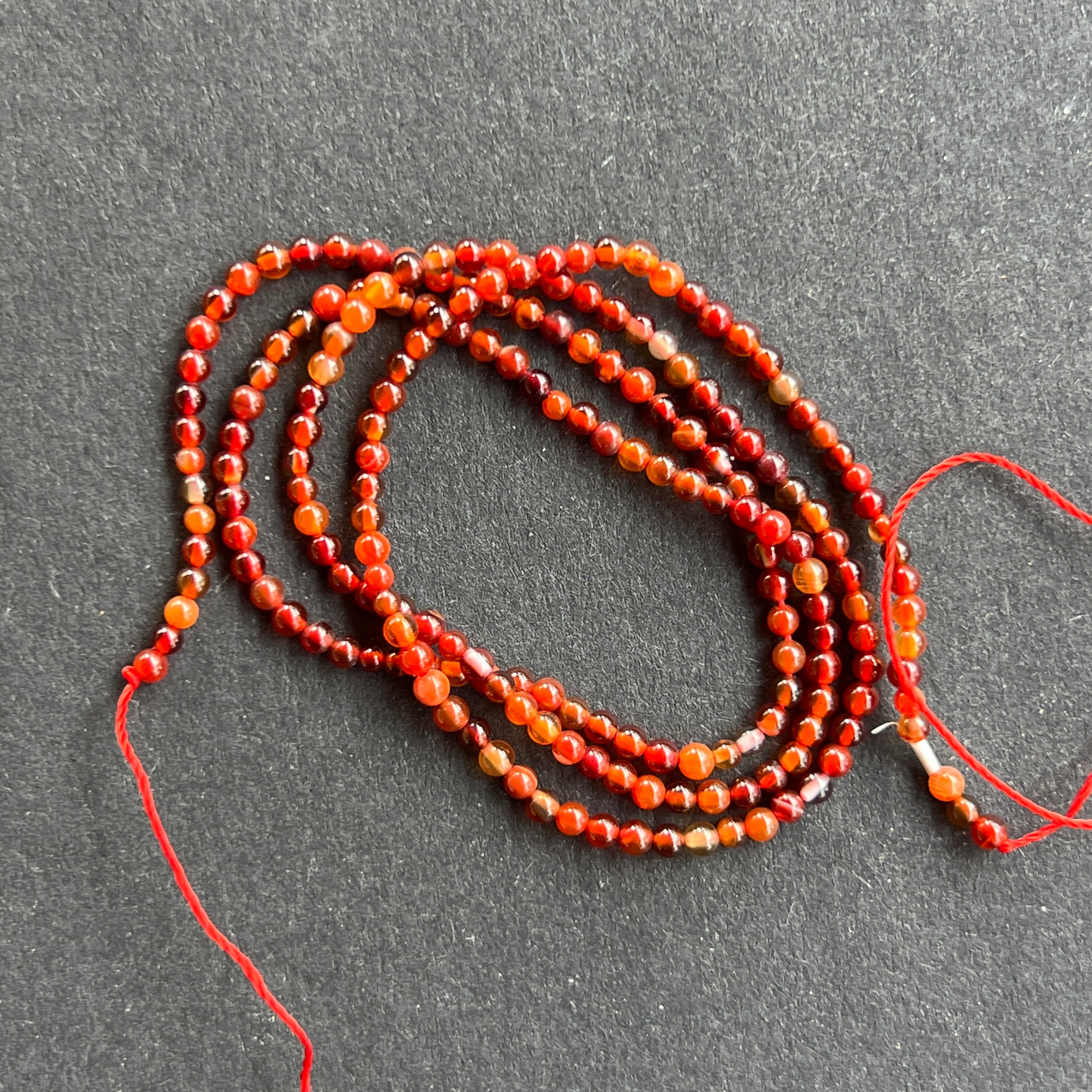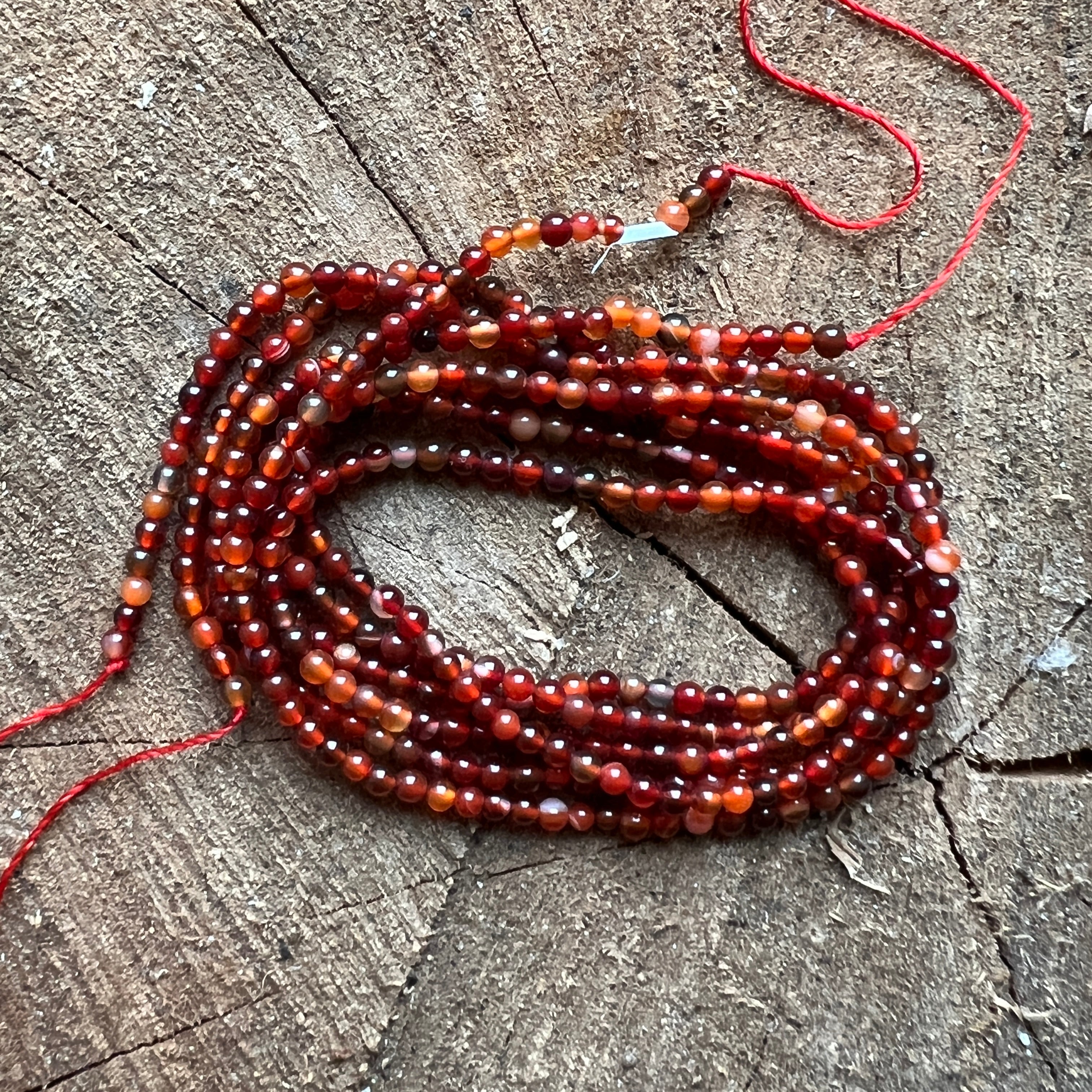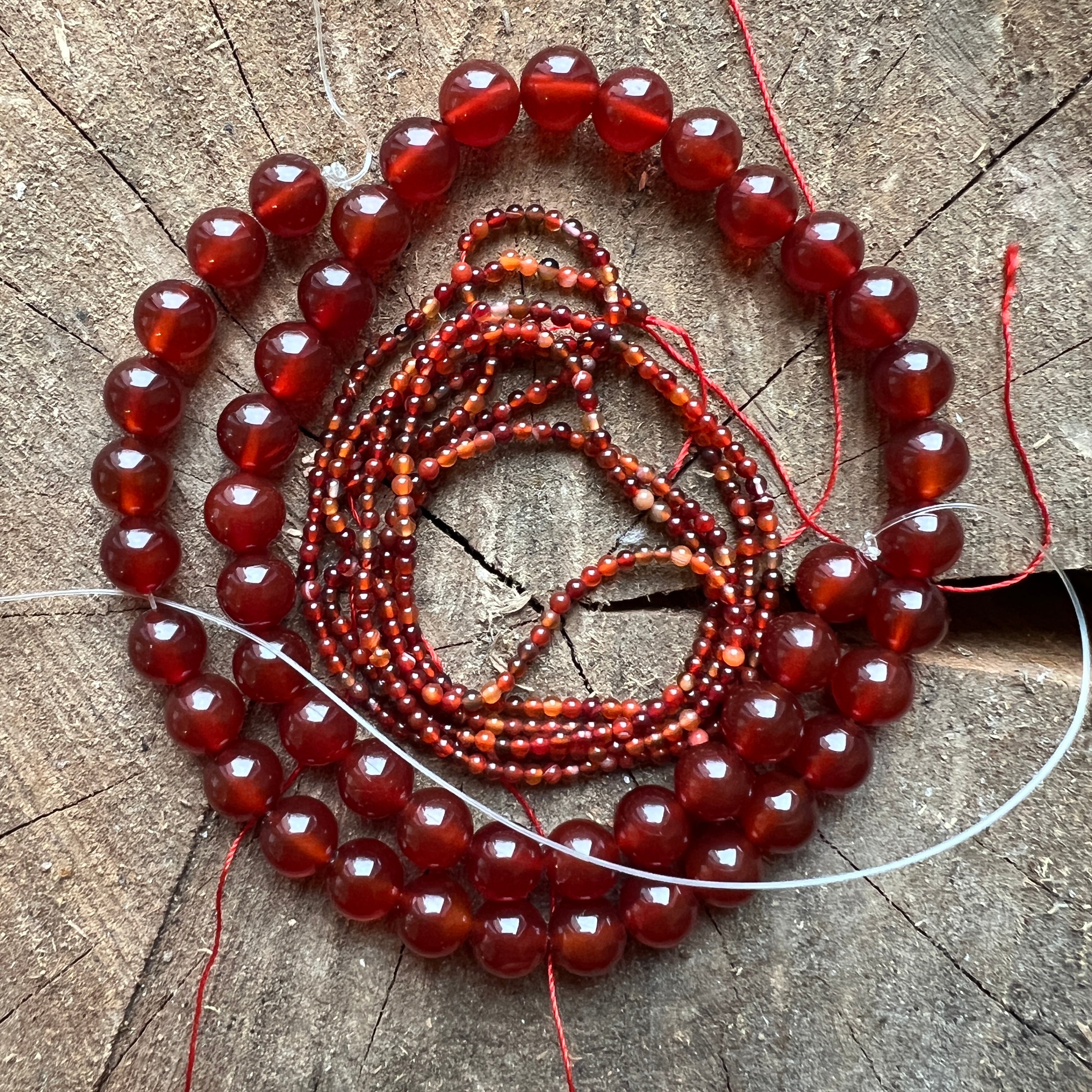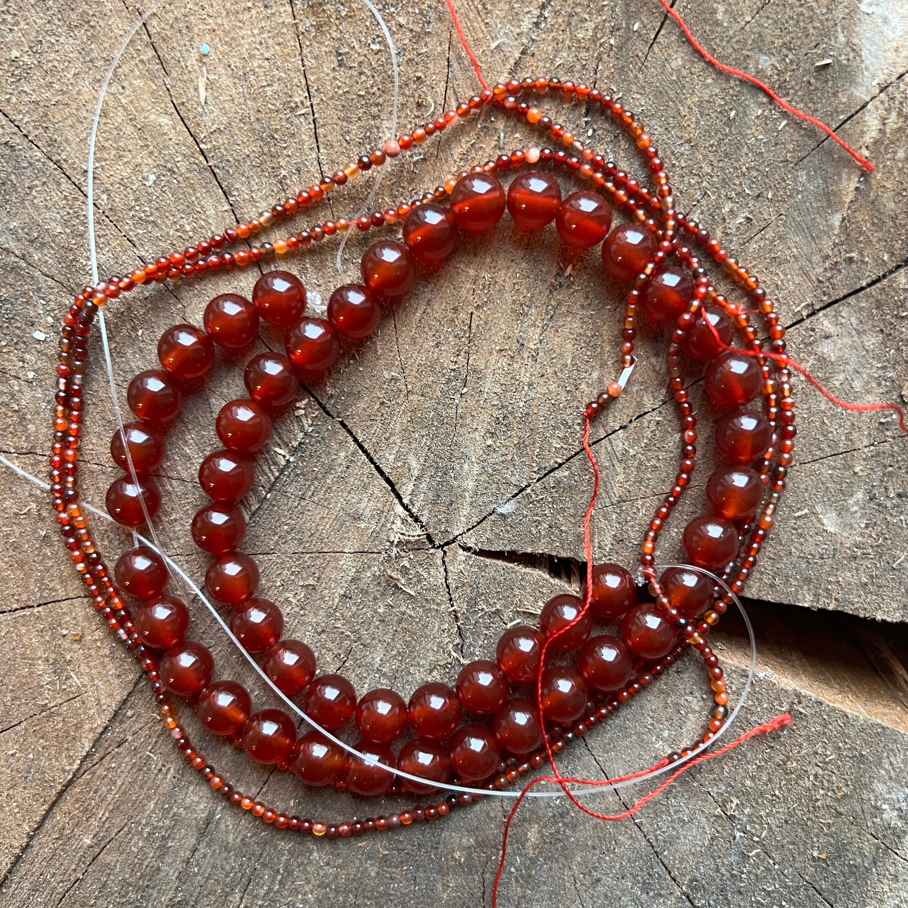 Karneol szirup, amelyből áll természetes gömb alakú gyöngyök, tökéletes nyaklánchoz, karkötőhöz vagy más kézzel készített ékszerhez.