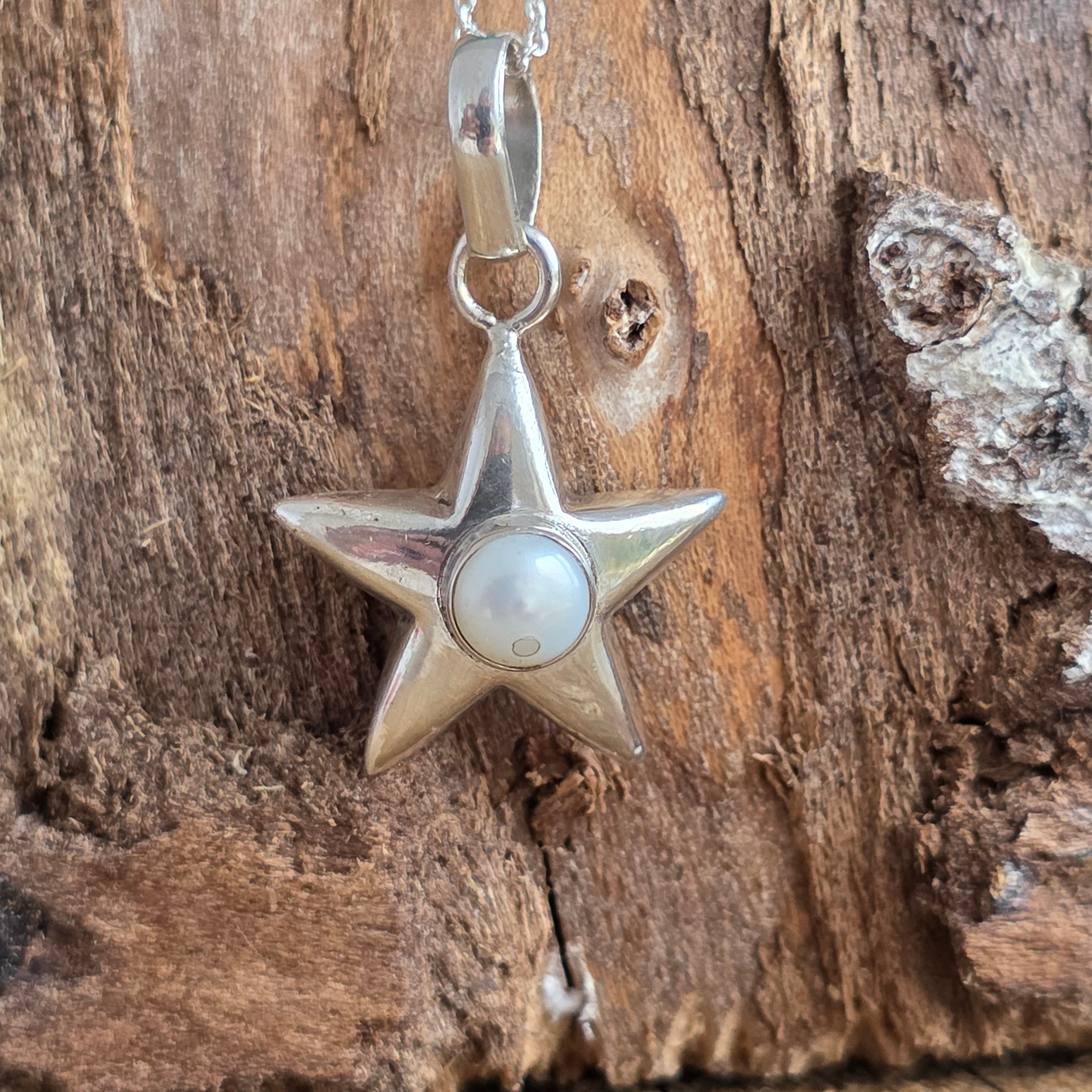 Egy gyönyörű medál tőle 925 ezüst, amely középpontjában hordozza a természetes gyöngy finom csillogással és fehér, halvány rózsaszín és gyöngyszürke gyöngyszemekkel.