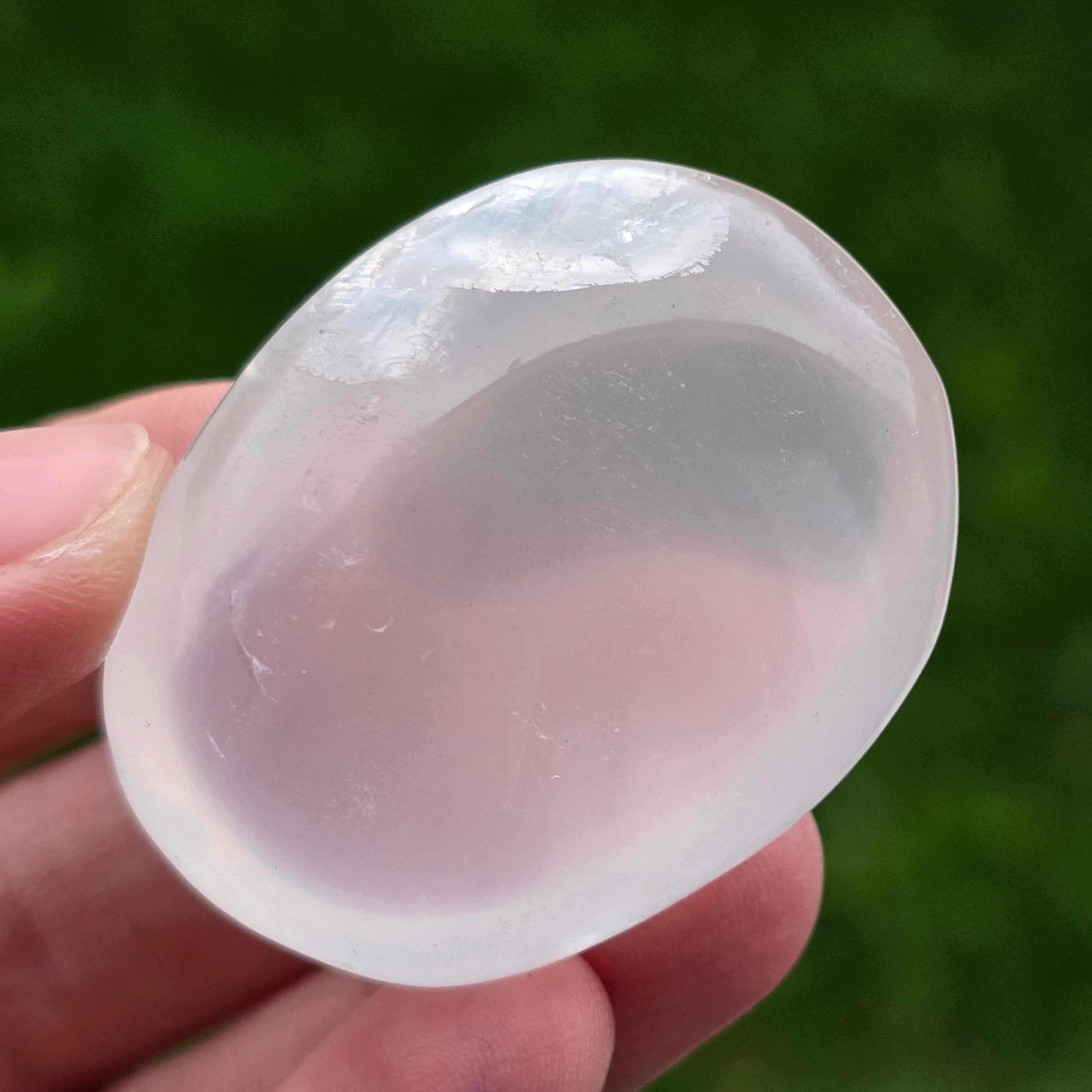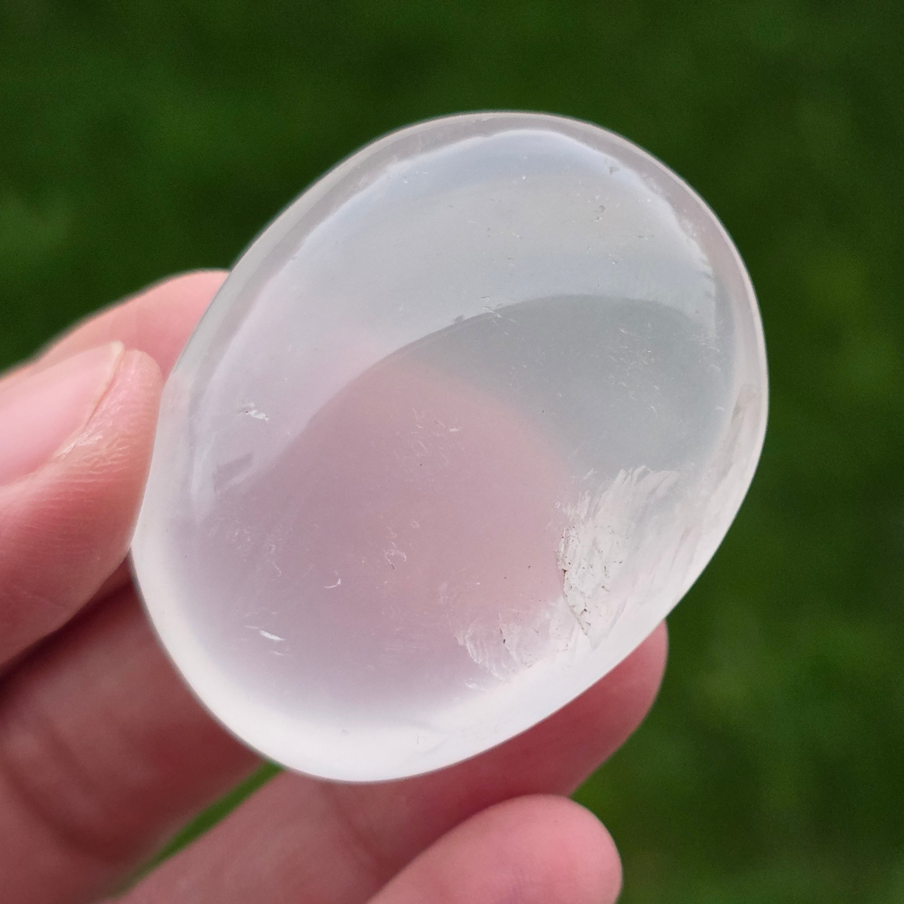 Gyöngyházfényű heliotrop kvarc tenyérkő modell 10p