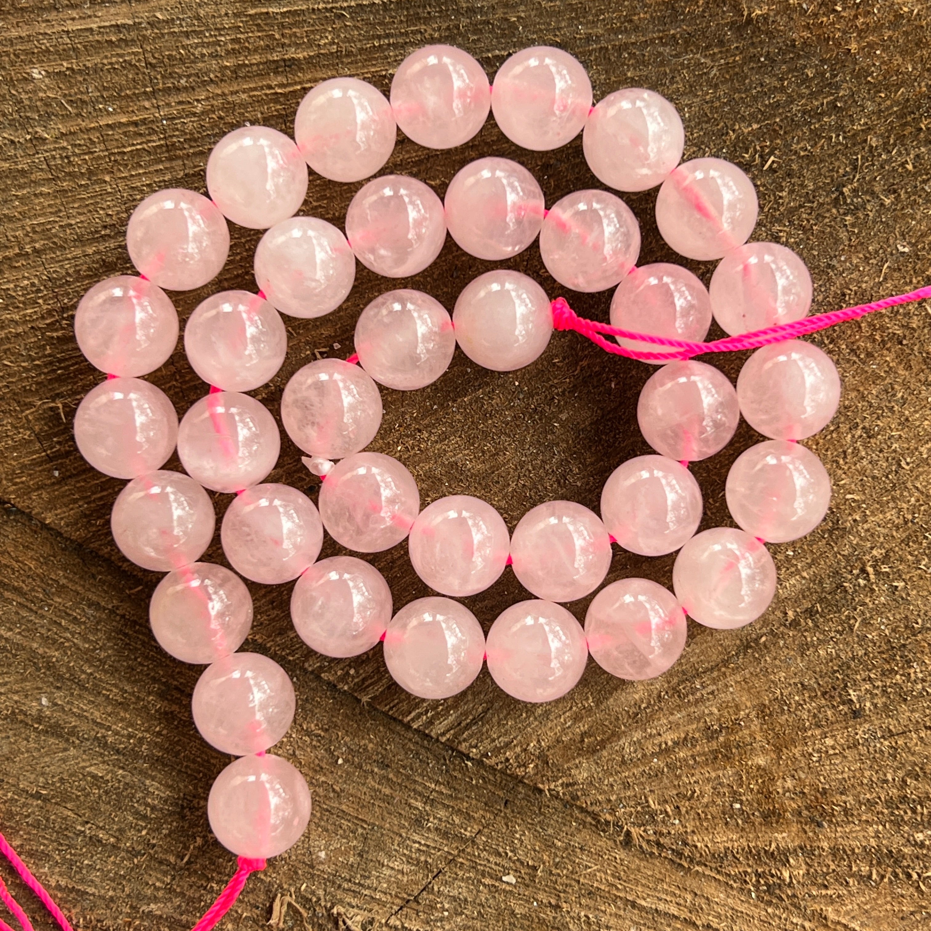 Rózsakvarc gömbökből készült nyaklánc, amelyből áll természetes gömb alakú gyöngyök, tökéletes nyaklánchoz, karkötőhöz vagy más kézzel készített ékszerhez.