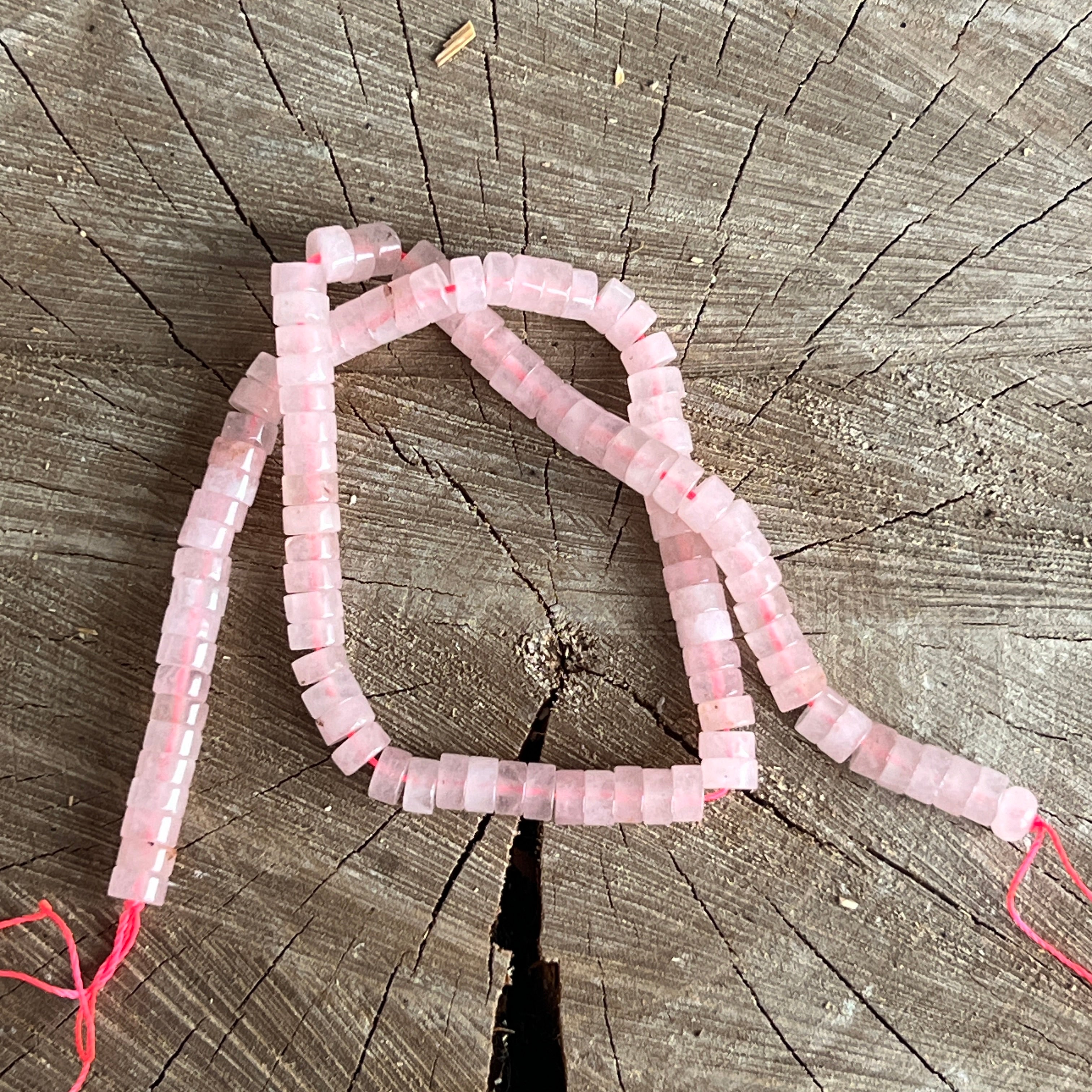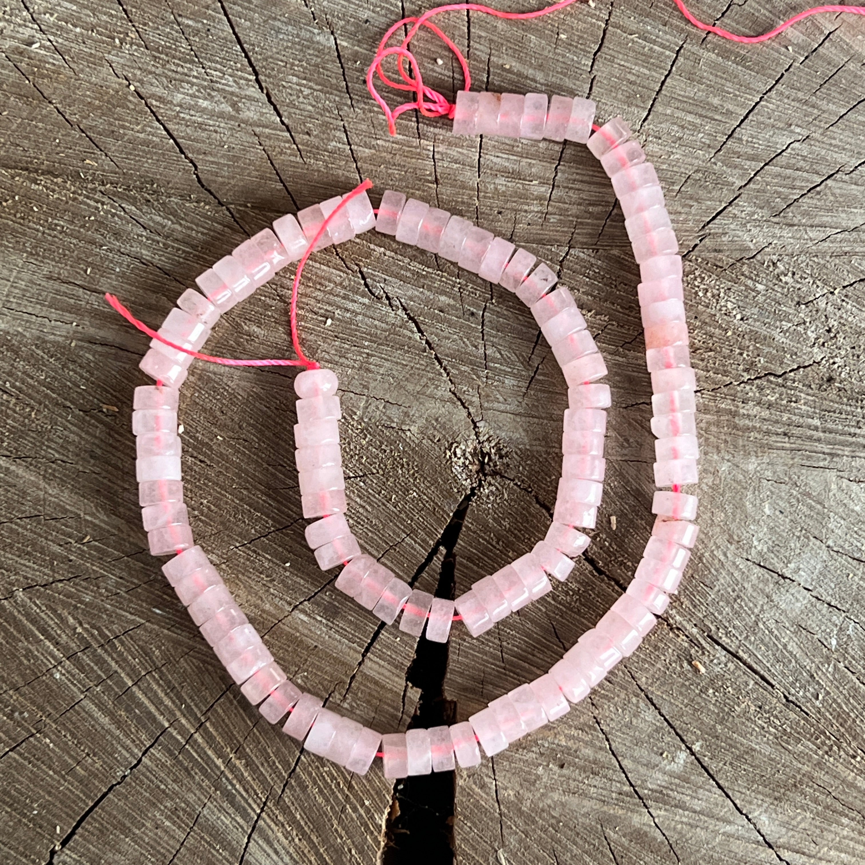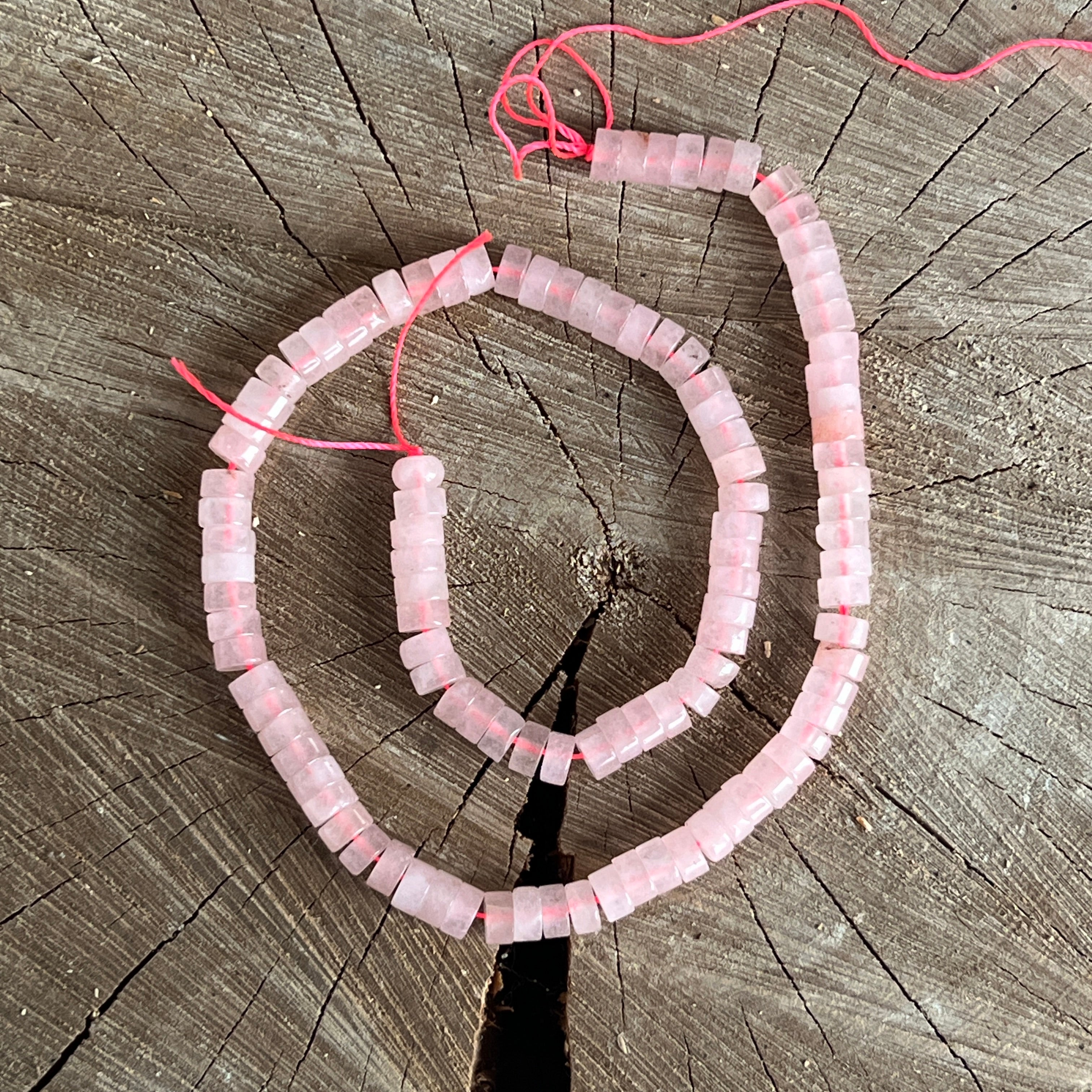 Rózsakvarc korongok füzére, lemezekből áll természetes, tökéletes nyaklánchoz, karkötőhöz vagy más kézzel készített ékszerhez.