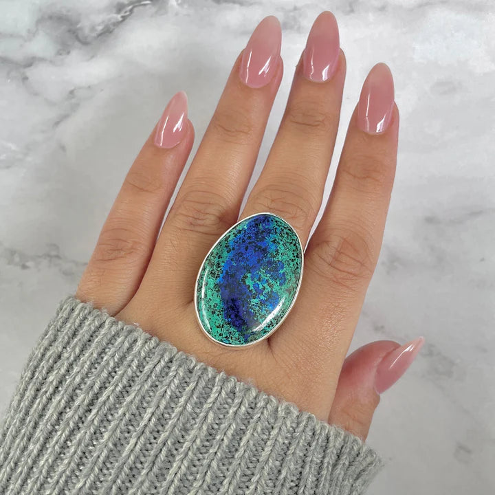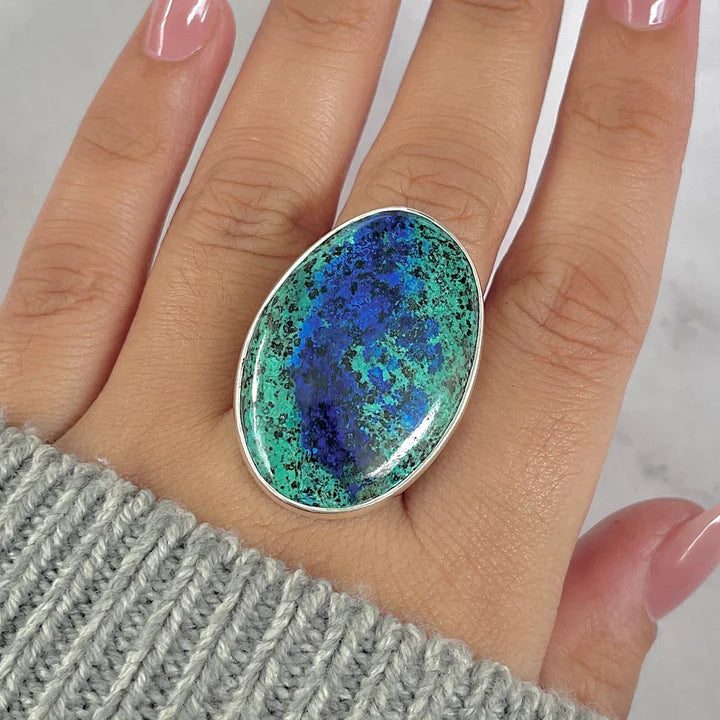 Válassza most az ezüst gyűrűt természetes azurit-malachittal, és vigye magával az azurit mélysége és a malachit regeneráló energiája közötti harmóniát. Egyedülálló ékszer látványos színkontraszttal, amely egyensúlyt, tisztaságot és belső erőt inspirál. 💙💚
