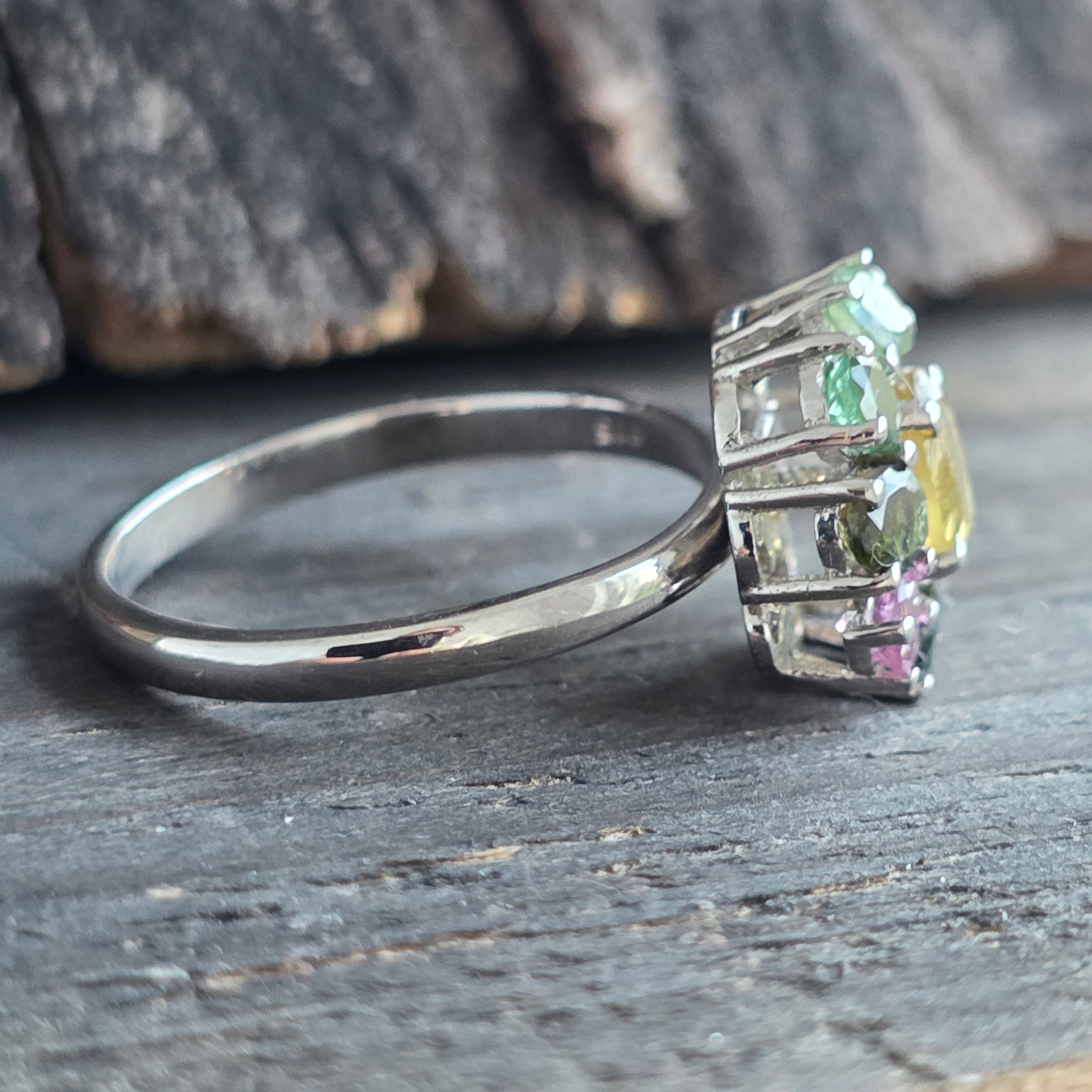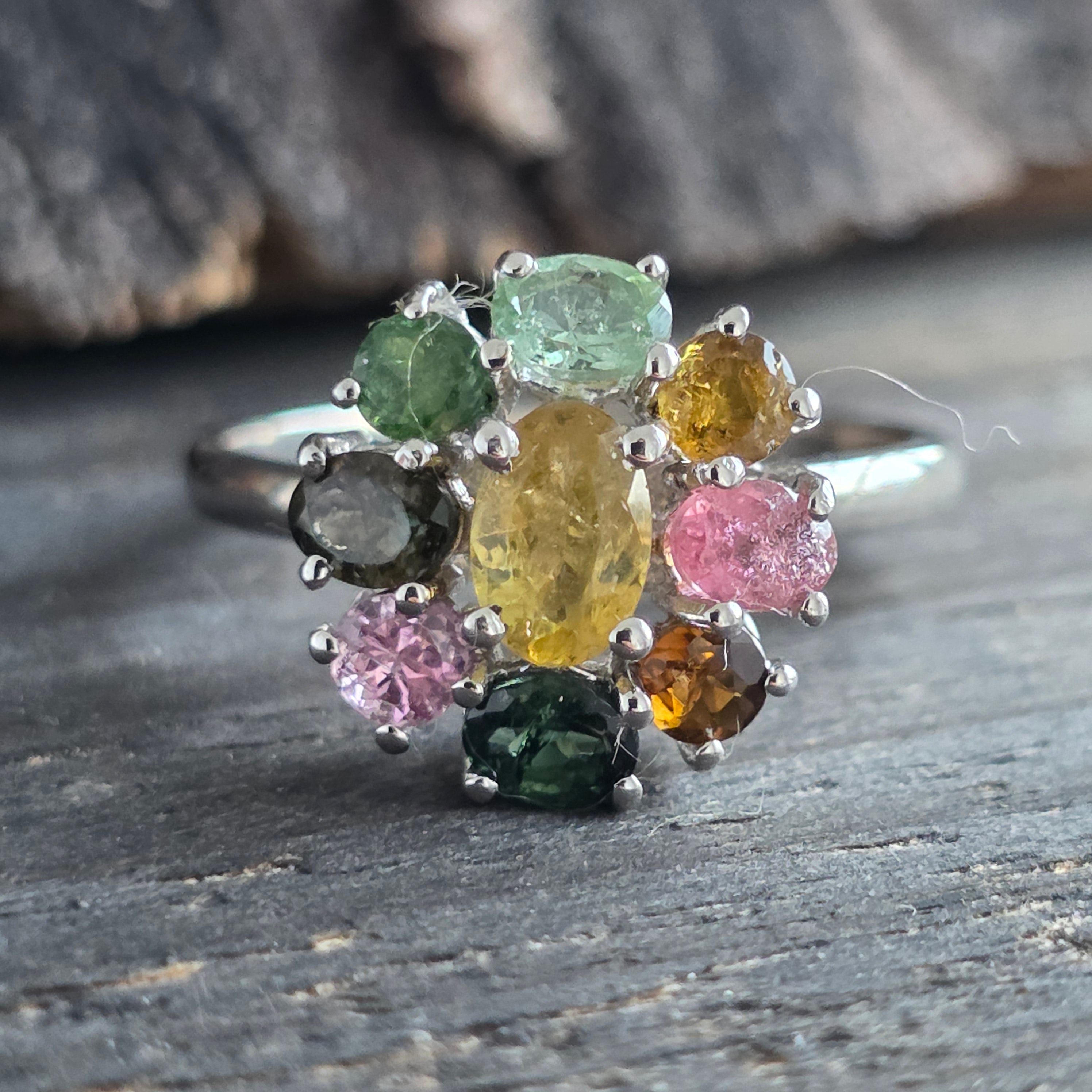 Gyűrűs ezüst turmalin keverék | VIRÁG 1