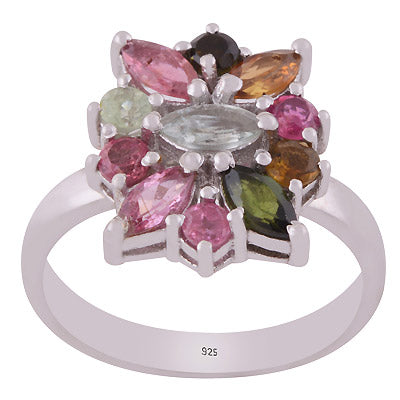 Gyűrűs ezüst turmalin keverék | VIRÁG 2