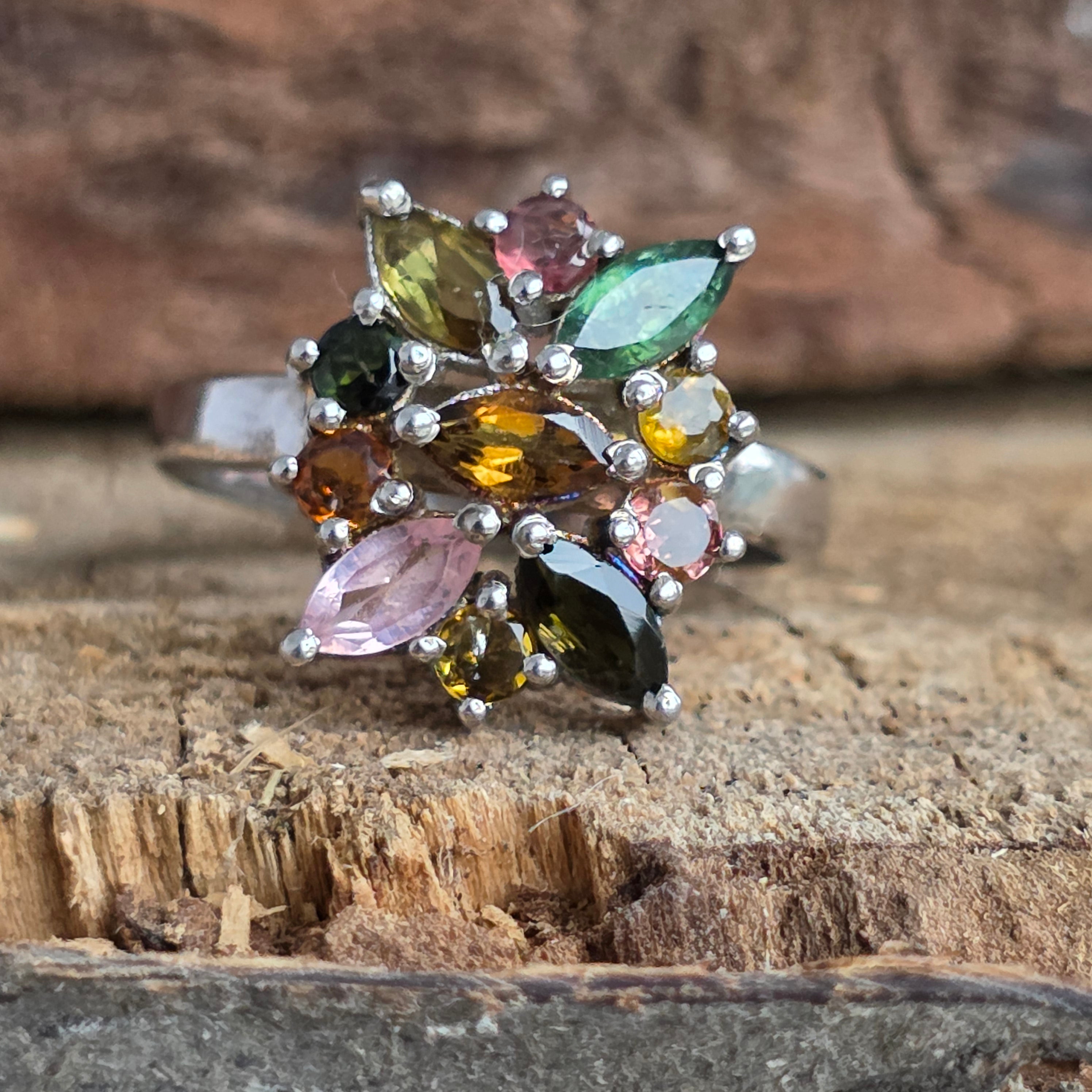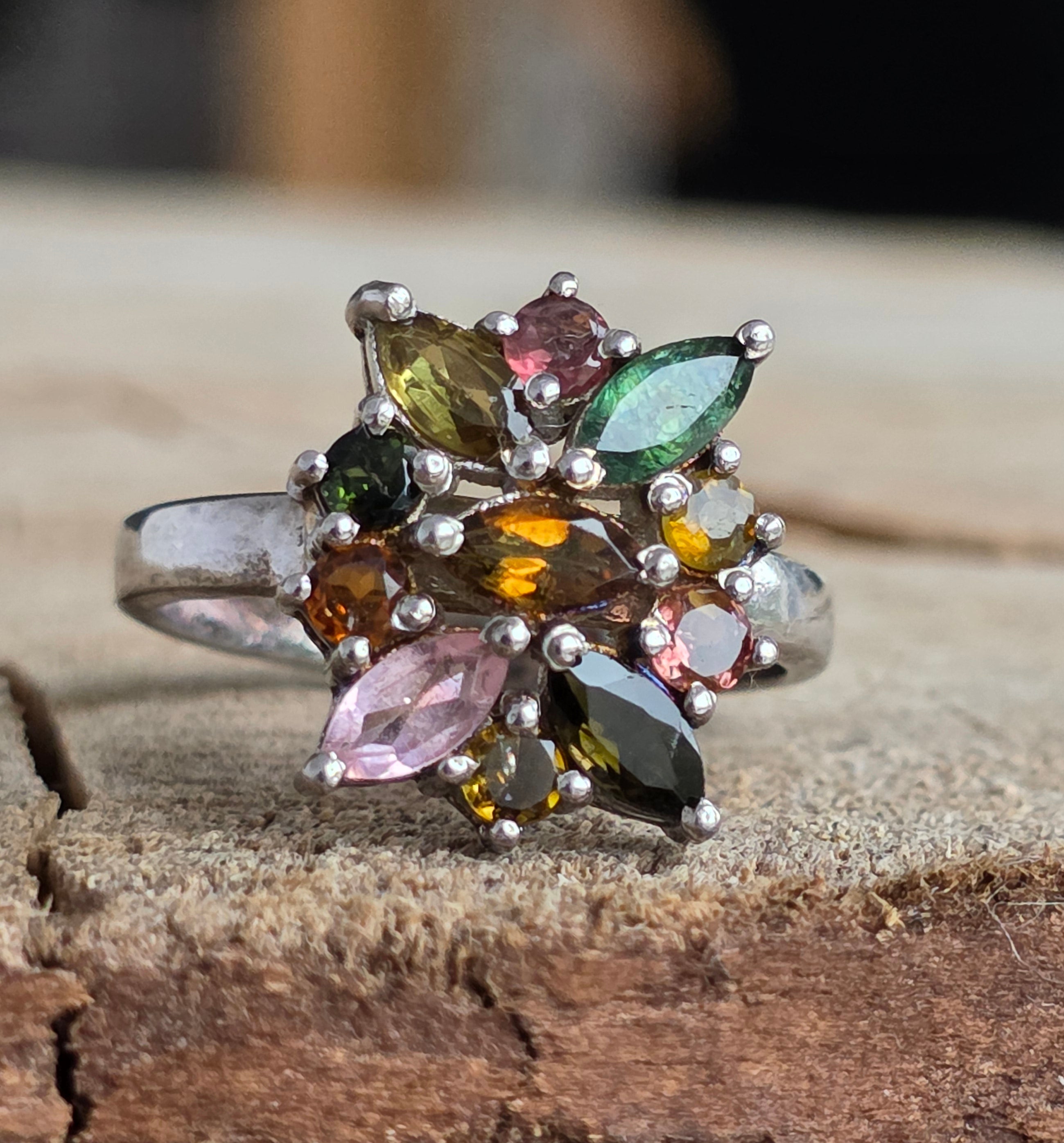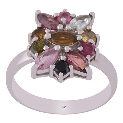 Gyűrűs ezüst turmalin keverék | VIRÁG 3