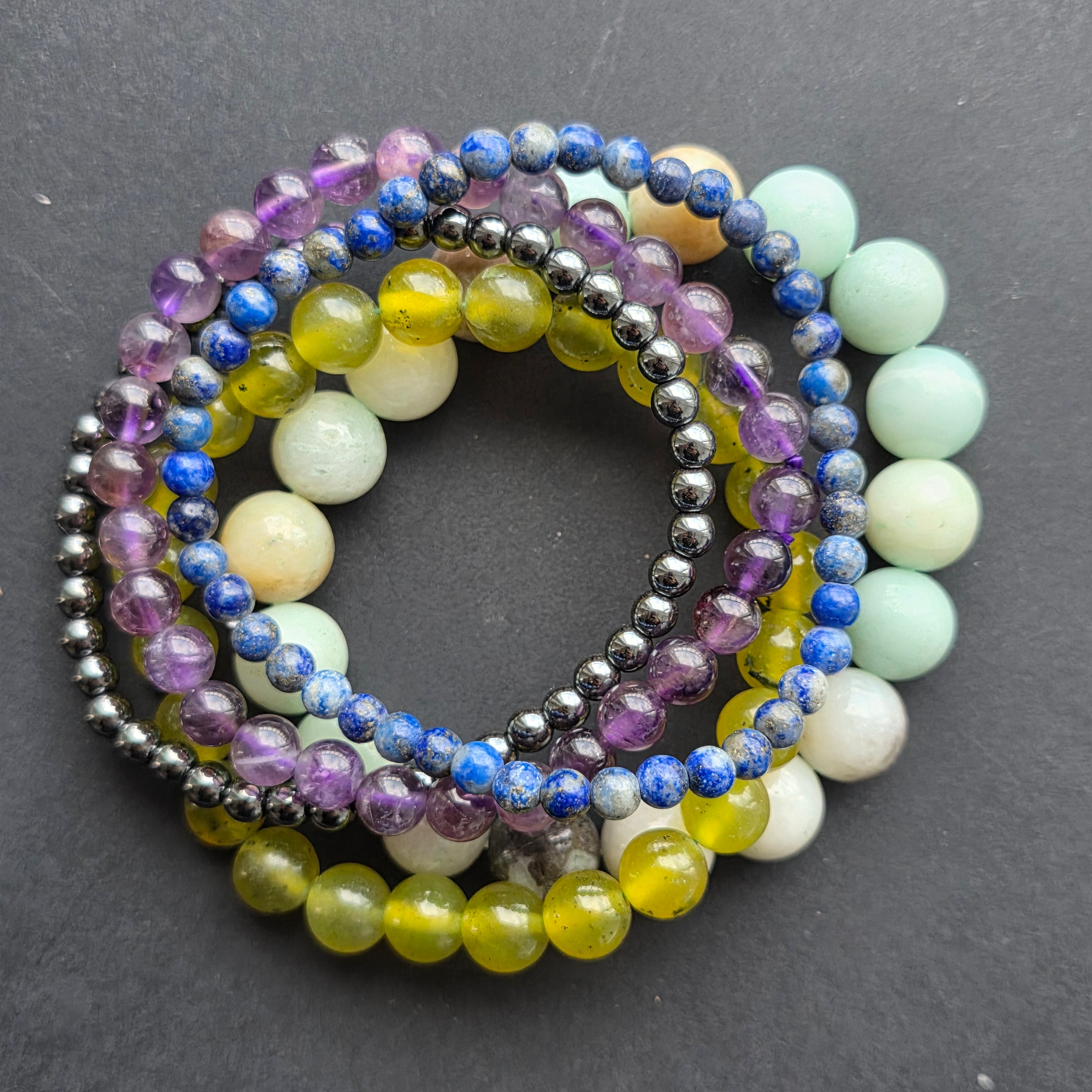 Ez a szett a Halak nő számára készült — intuitív, művészi és mélyen kapcsolódik a belső világához. Érzelmen, képzeleten és finom rezgéseken keresztül él, az egyik legempatikusabb és legkapcsolódottabb jegy. A szettben választott kövek támogatják a tisztánlátást, a nyugalmat és az elmélyülést, finom egyensúlyt teremtve az ábrándozás és a valóság között.