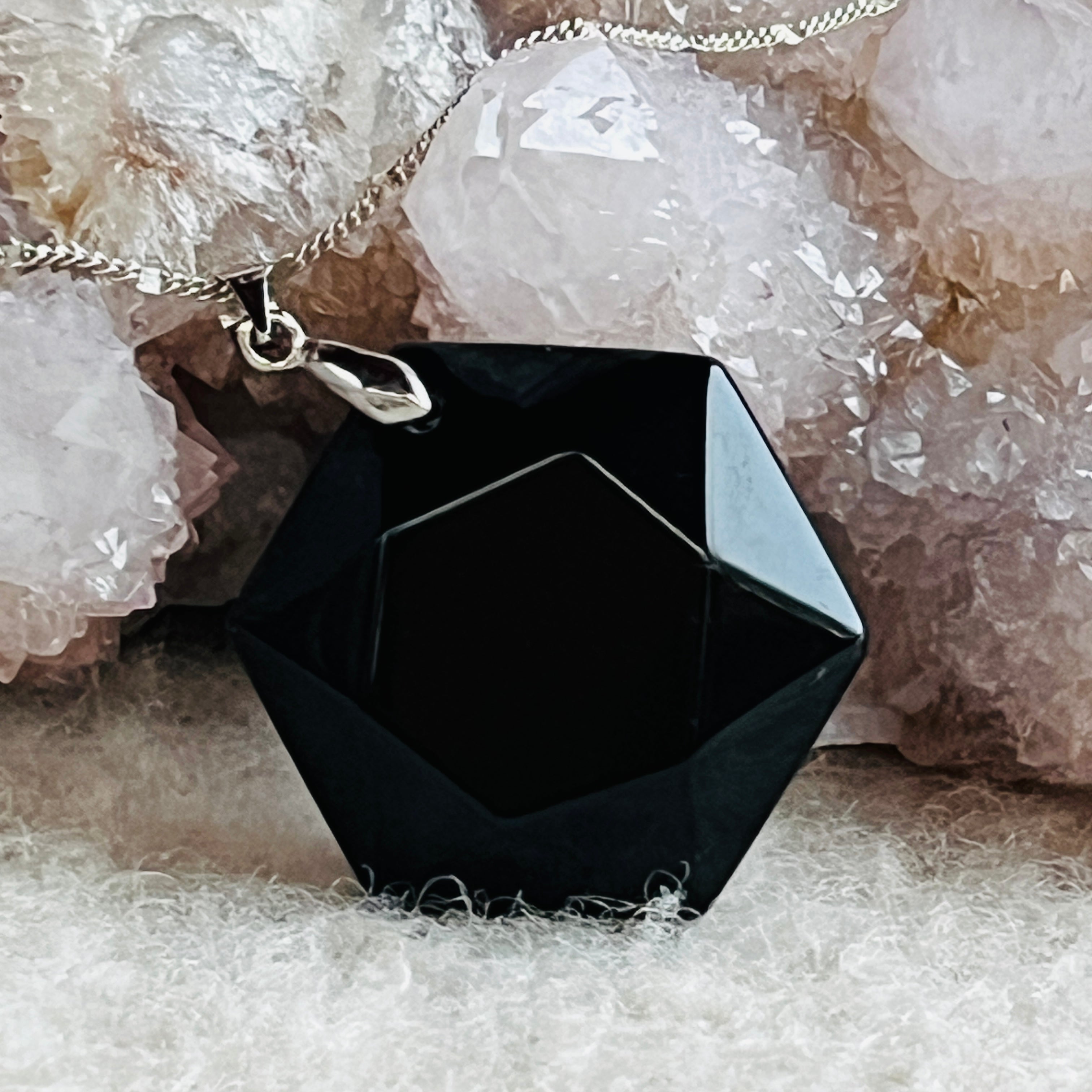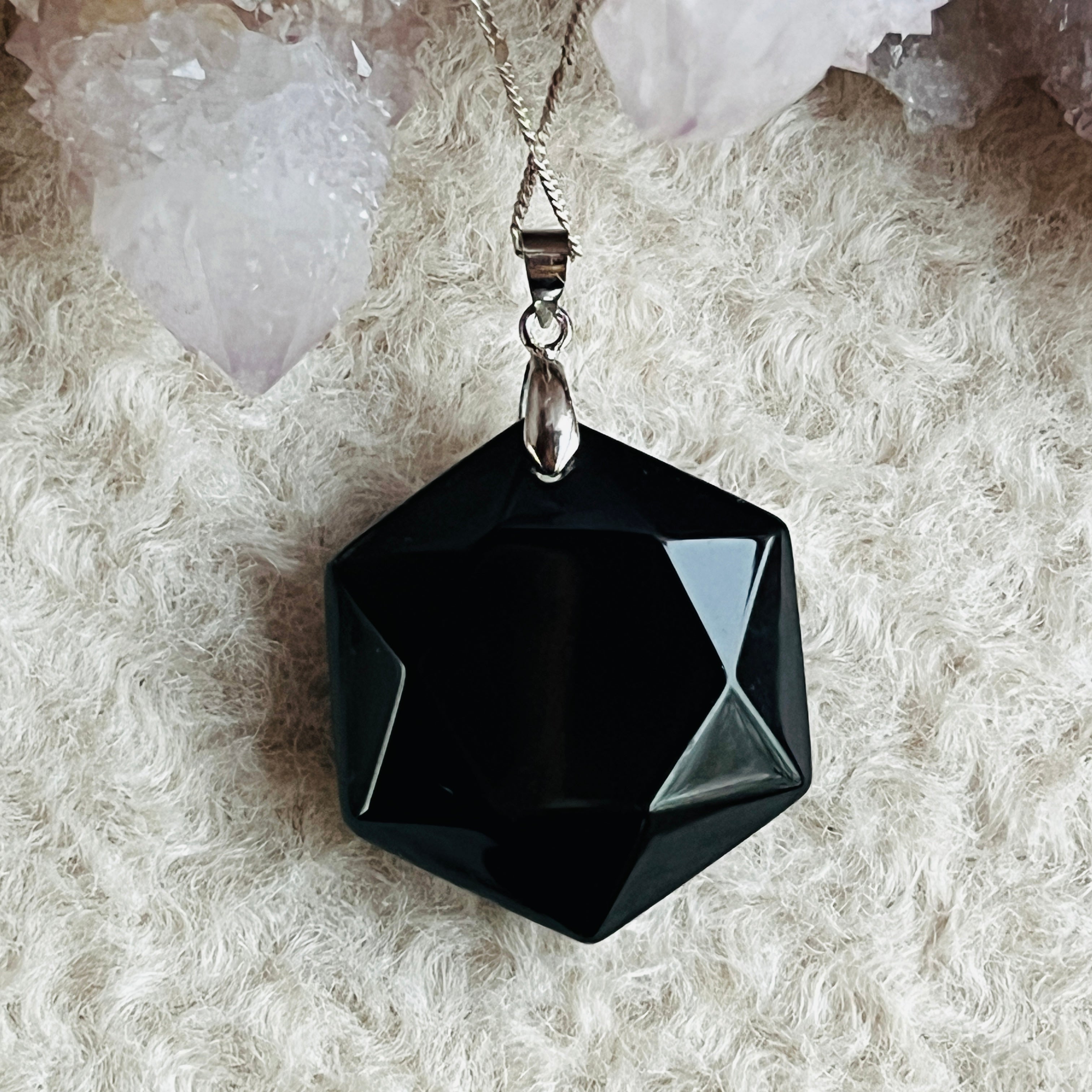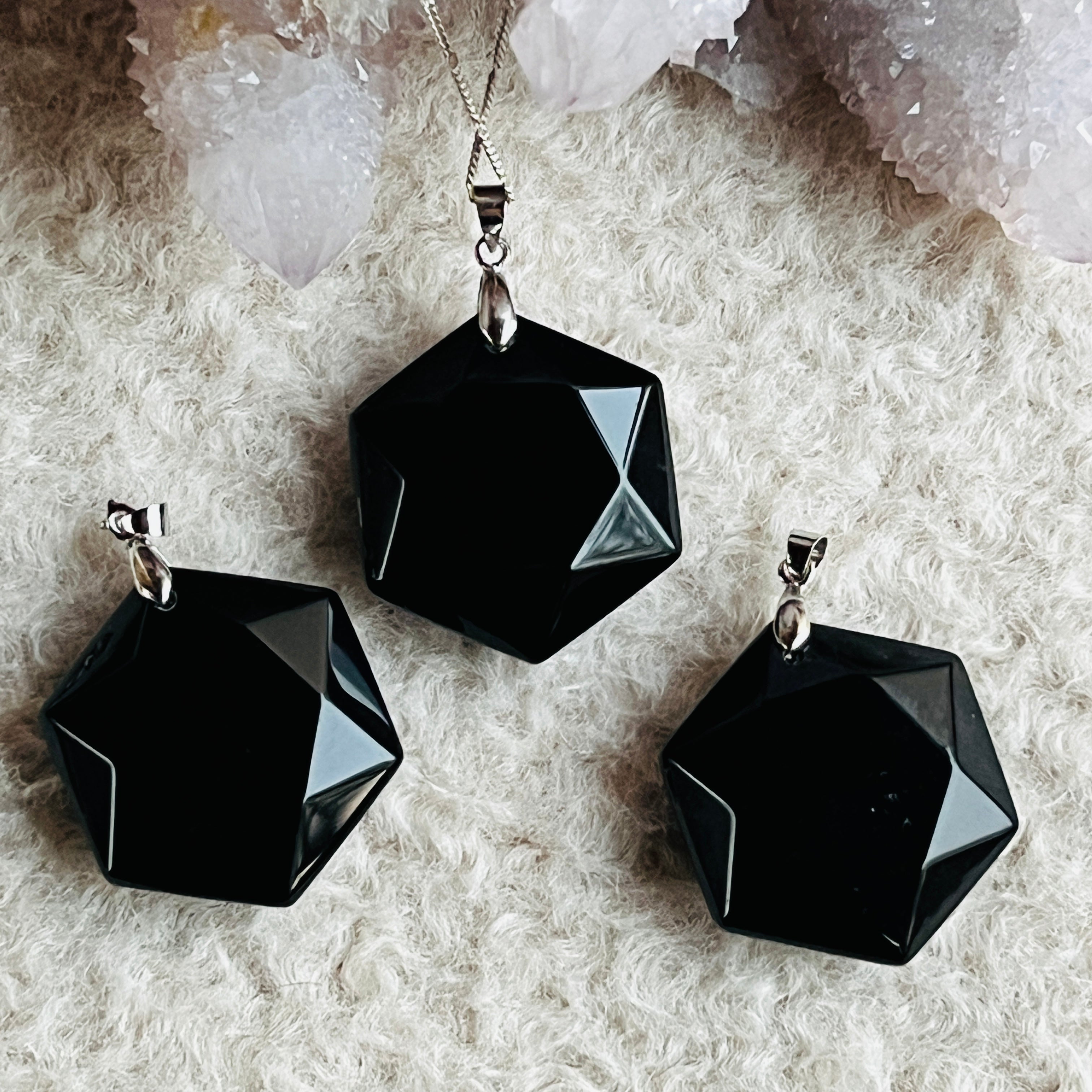 Hatszögletű obszidián medál