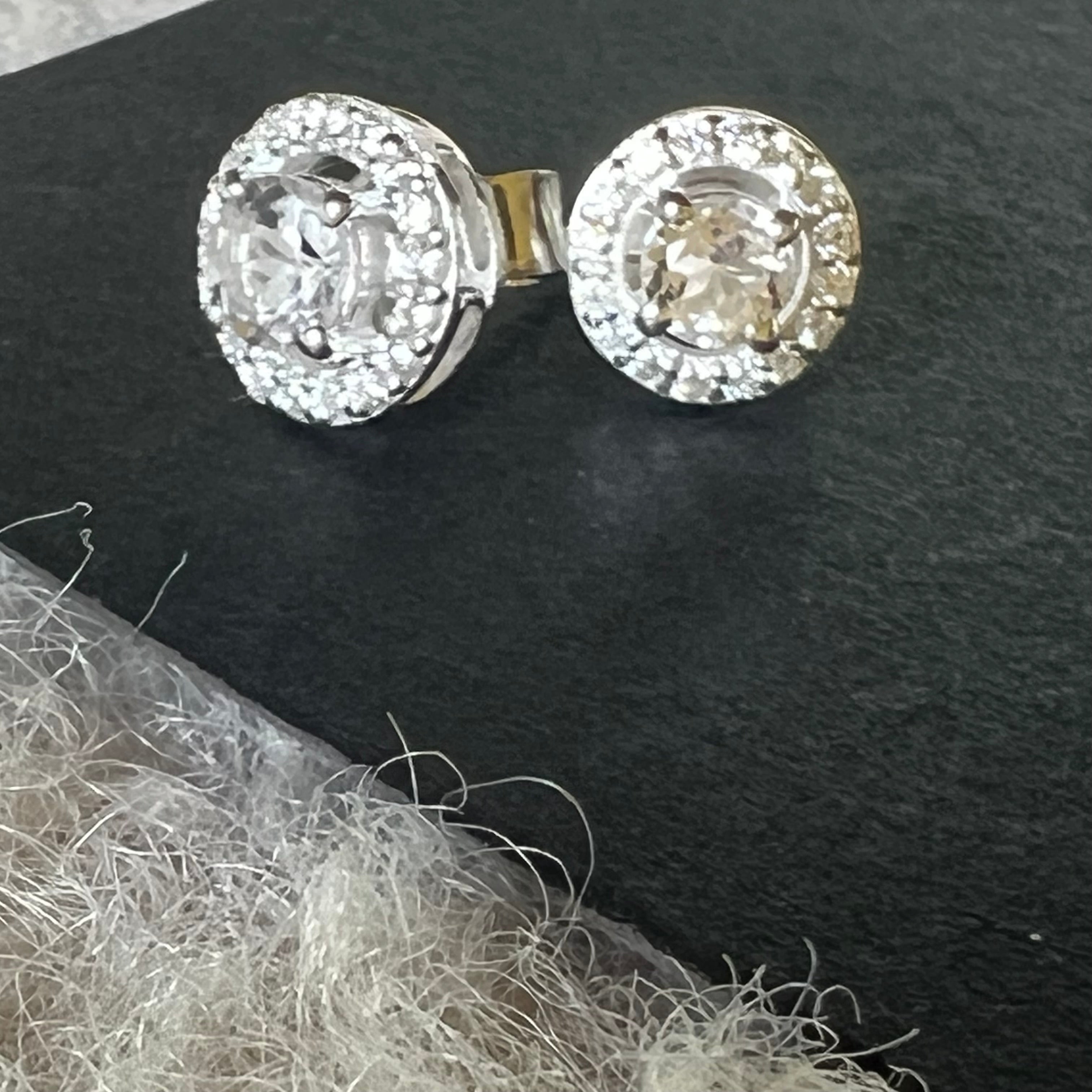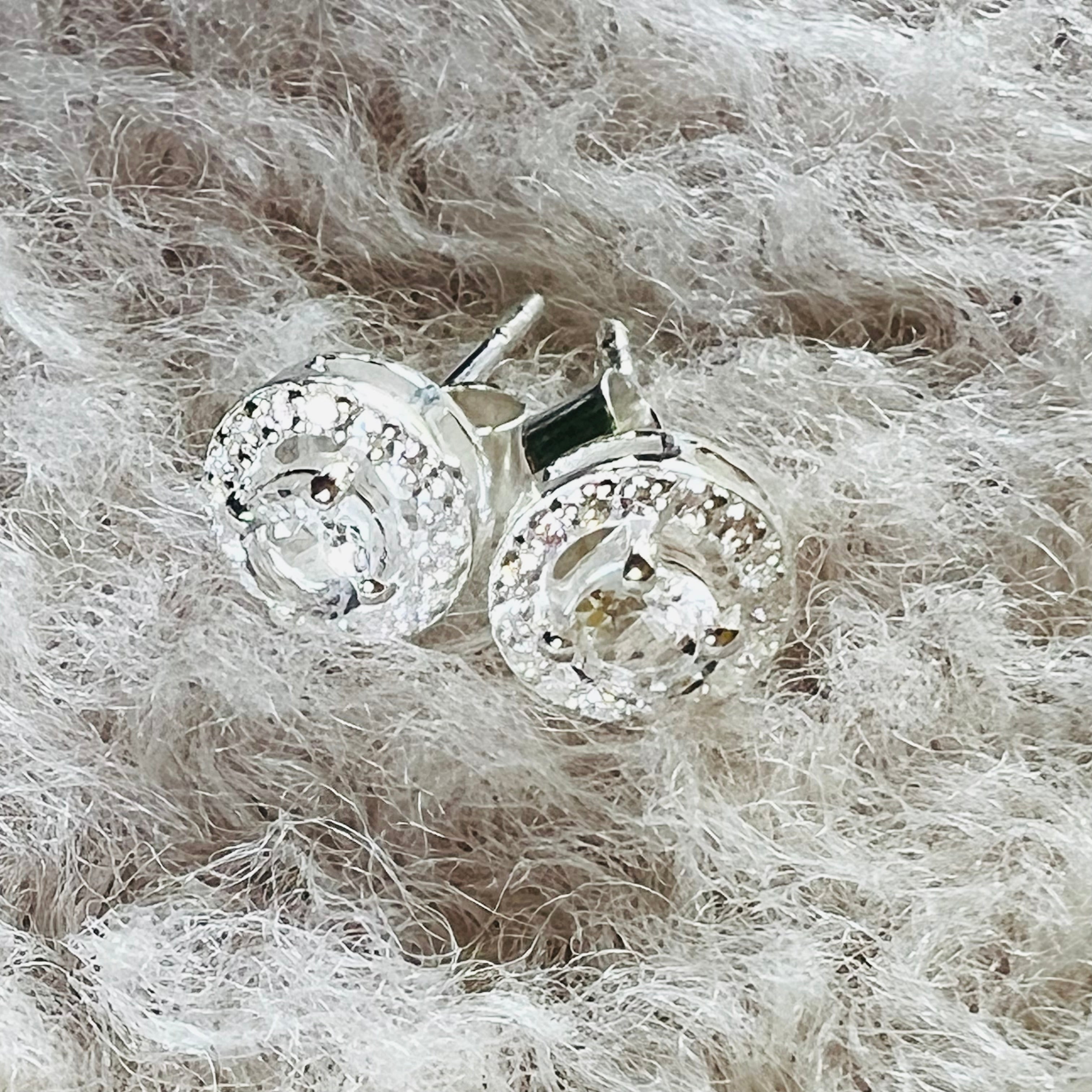 Hegyikristály és fehér topáz fülbevaló, 7 mm