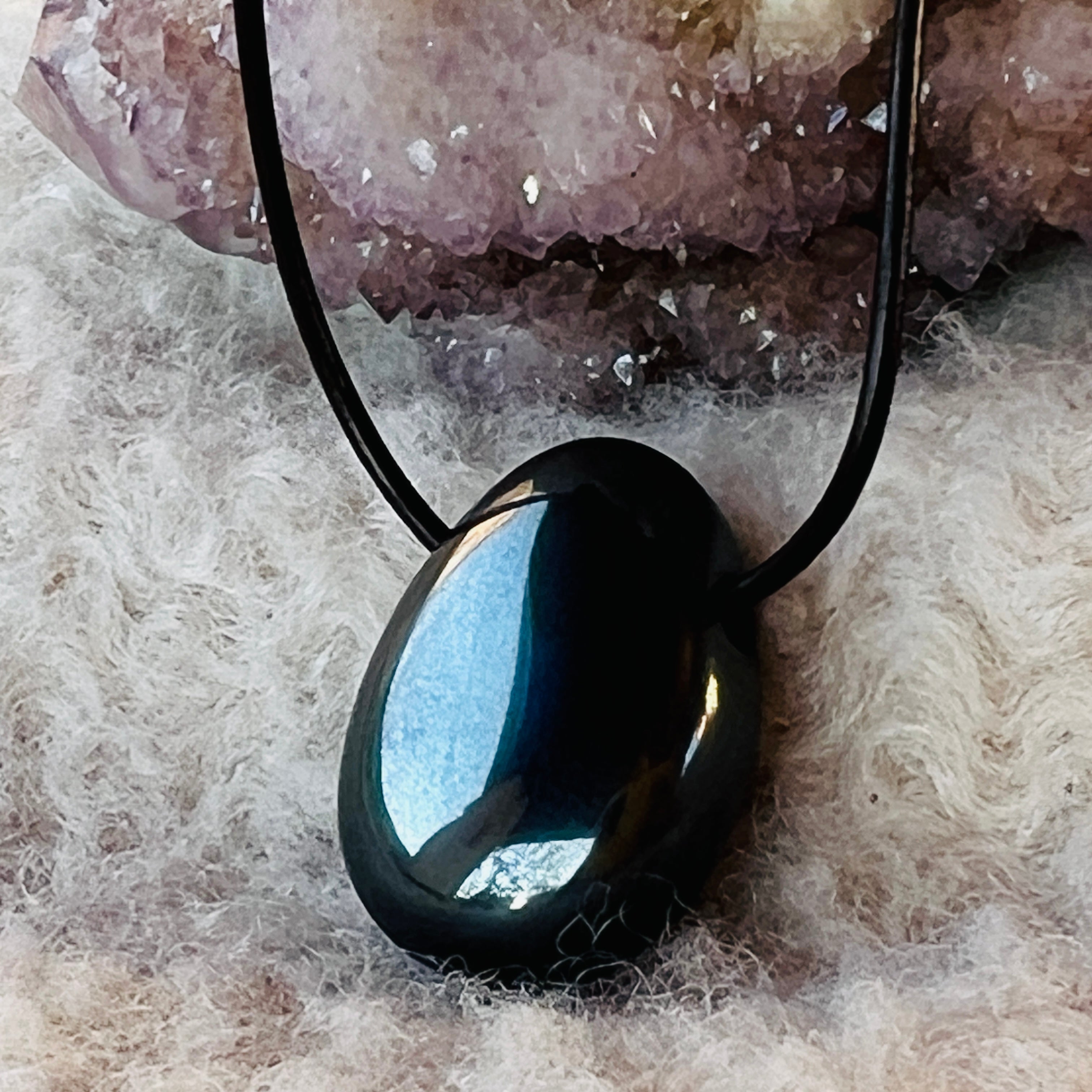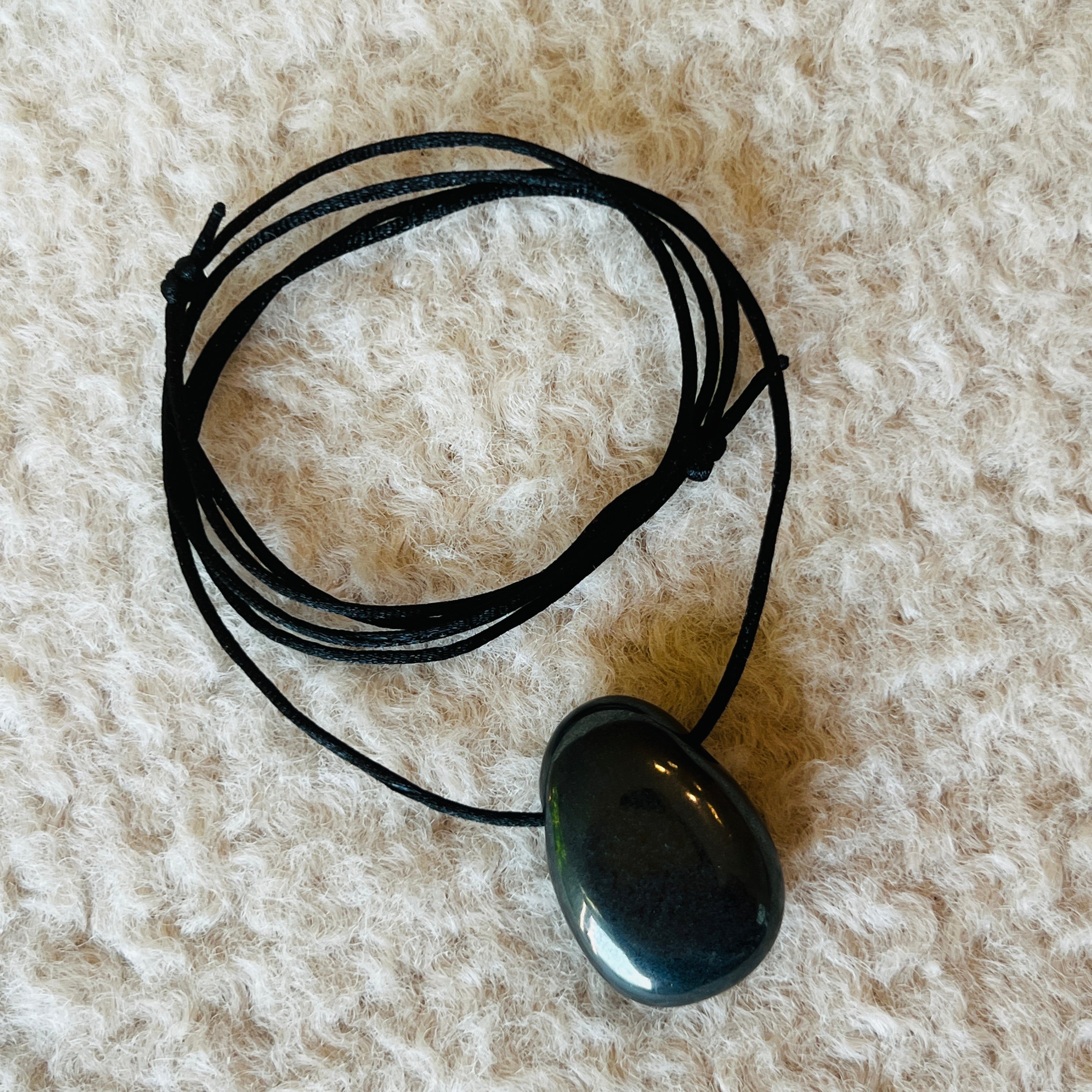 Viseld a hematit medálos nyakláncot, hogy ruházatodhoz a védelem és a belső erő szimbólumát add hozzá ⚫✨.