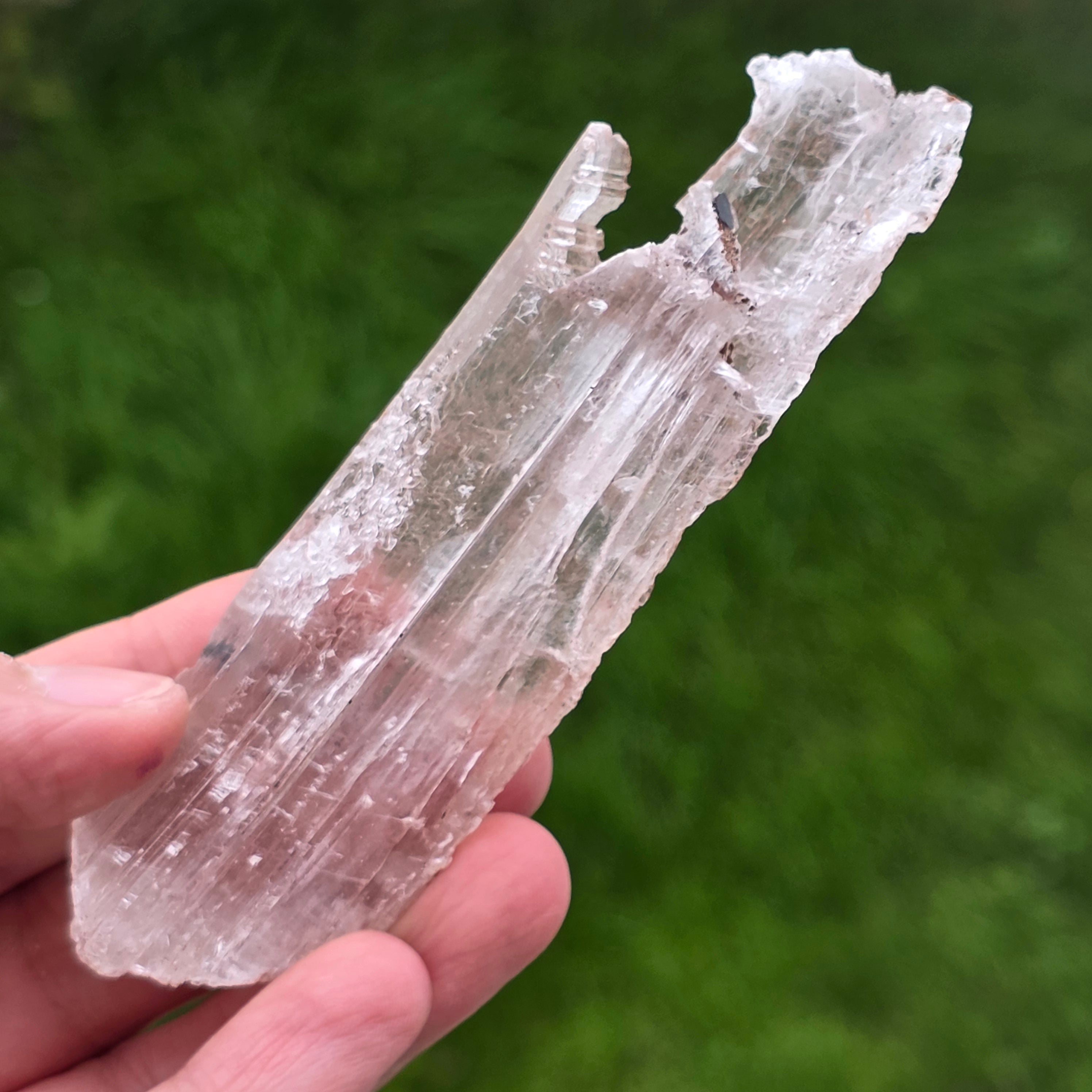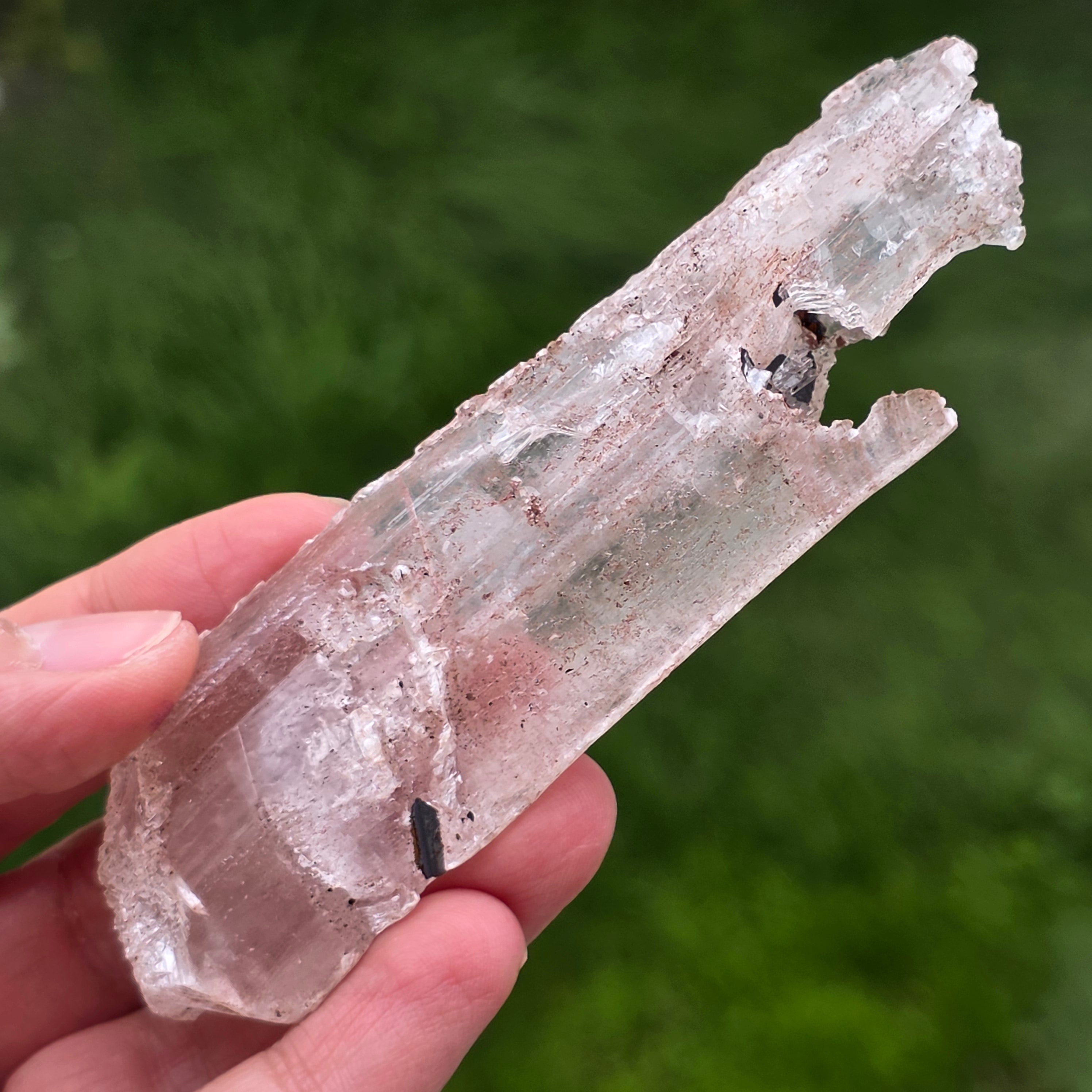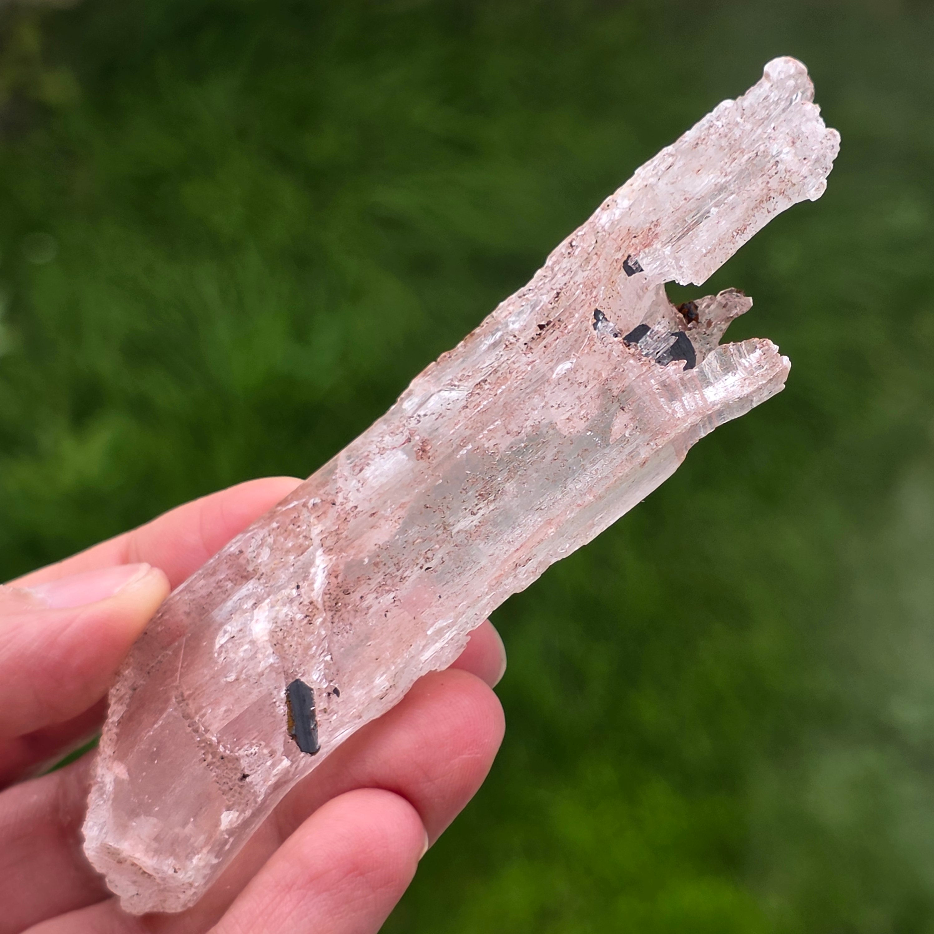 A szelenit megjelenhet hosszúkás kristályok vagy áttetsző lemezekformájában, selymes csillogással és finom textúrával, míg a hematit inkluziok, filmrétegek vagy természetes bevonatokformájában található, kiemelve a kristály szerkezetét és vizuális mélységet adva neki.