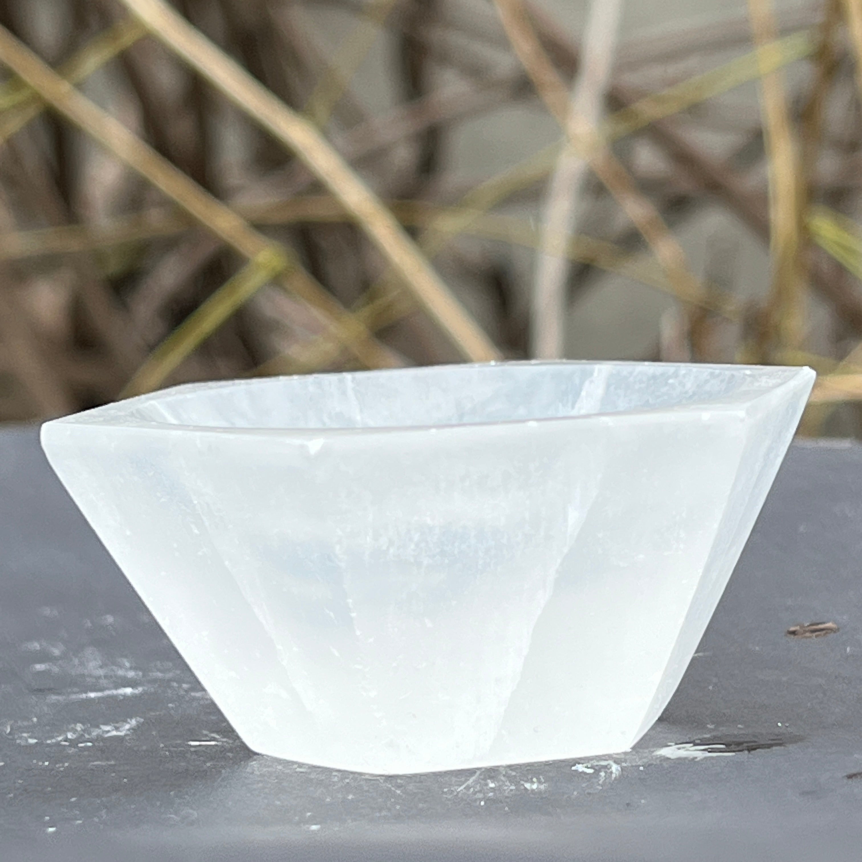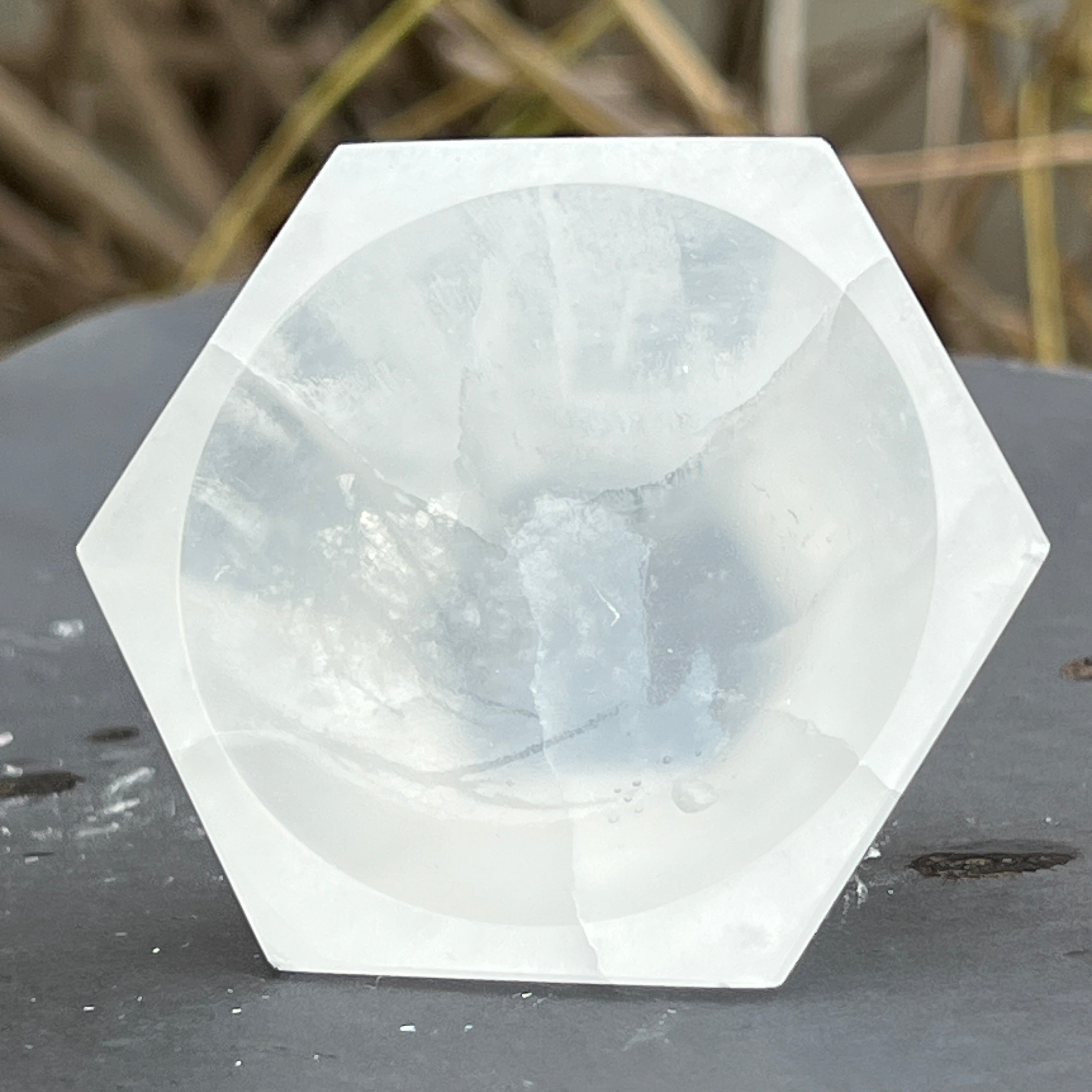 Hexagon selenit tál, méretük 6 és 10 cm között. Kérjük, válassza ki a kívánt méretet.
