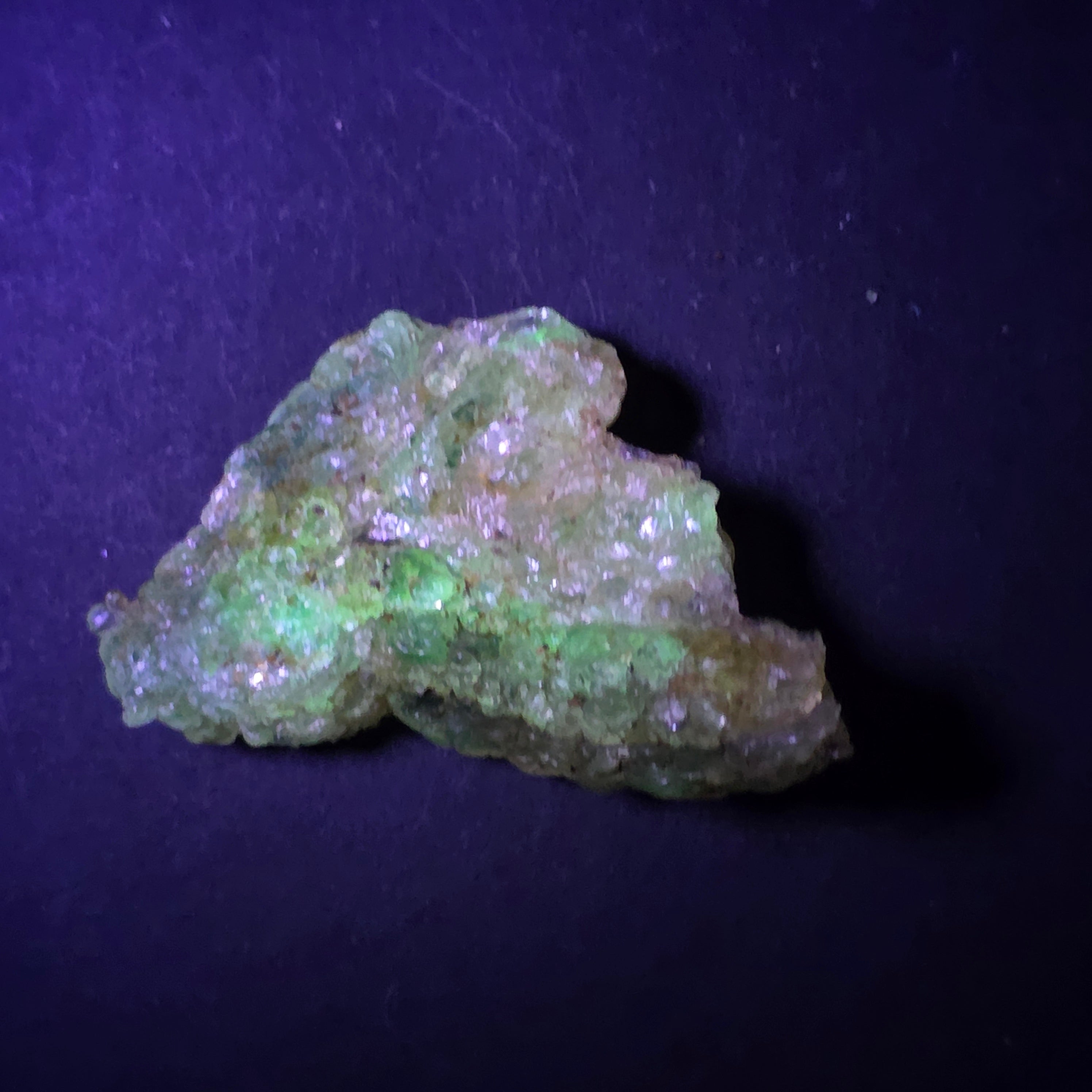 Természetes fényben a hialit opál színtelen vagy fehéresen áttetsző, visszafogott és elegáns megjelenésű. UV fény alatt azonban az ásvány teljesen átalakul, és neon zöld fénytbocsát ki, erőset és egyenleteset, ez a hatás pedig rendkívül vonzóvá teszi a gyűjtők számára. Ez a fluoreszcencia a természetes urán nyomoknak köszönhető a szerkezetében, amelyek nagyon kis mennyiségben és stabil formában vannak jelen.