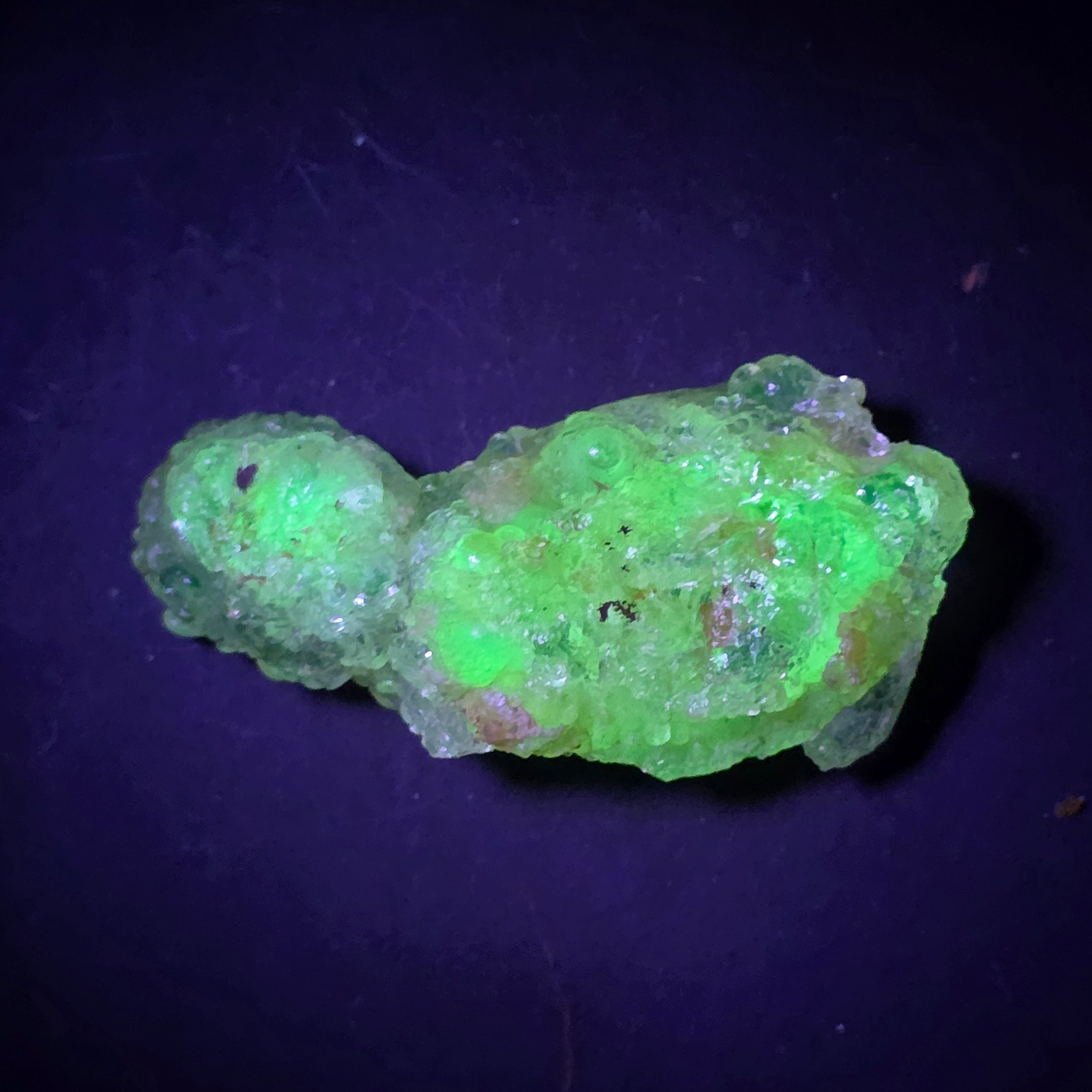 Természetes fényben a hialit opál színtelen vagy fehéresen áttetsző, visszafogott és elegáns megjelenésű. UV-fény alatt azonban az ásvány teljesen átalakul, és neon zöld fényt áraszt, erősen és egyenletesen, ami rendkívül keresetté teszi a gyűjtők körében. Ez a fluoreszcencia a szerkezetében természetesen jelen lévő, nagyon kis mennyiségű és stabil uránnyomoknak köszönhető.