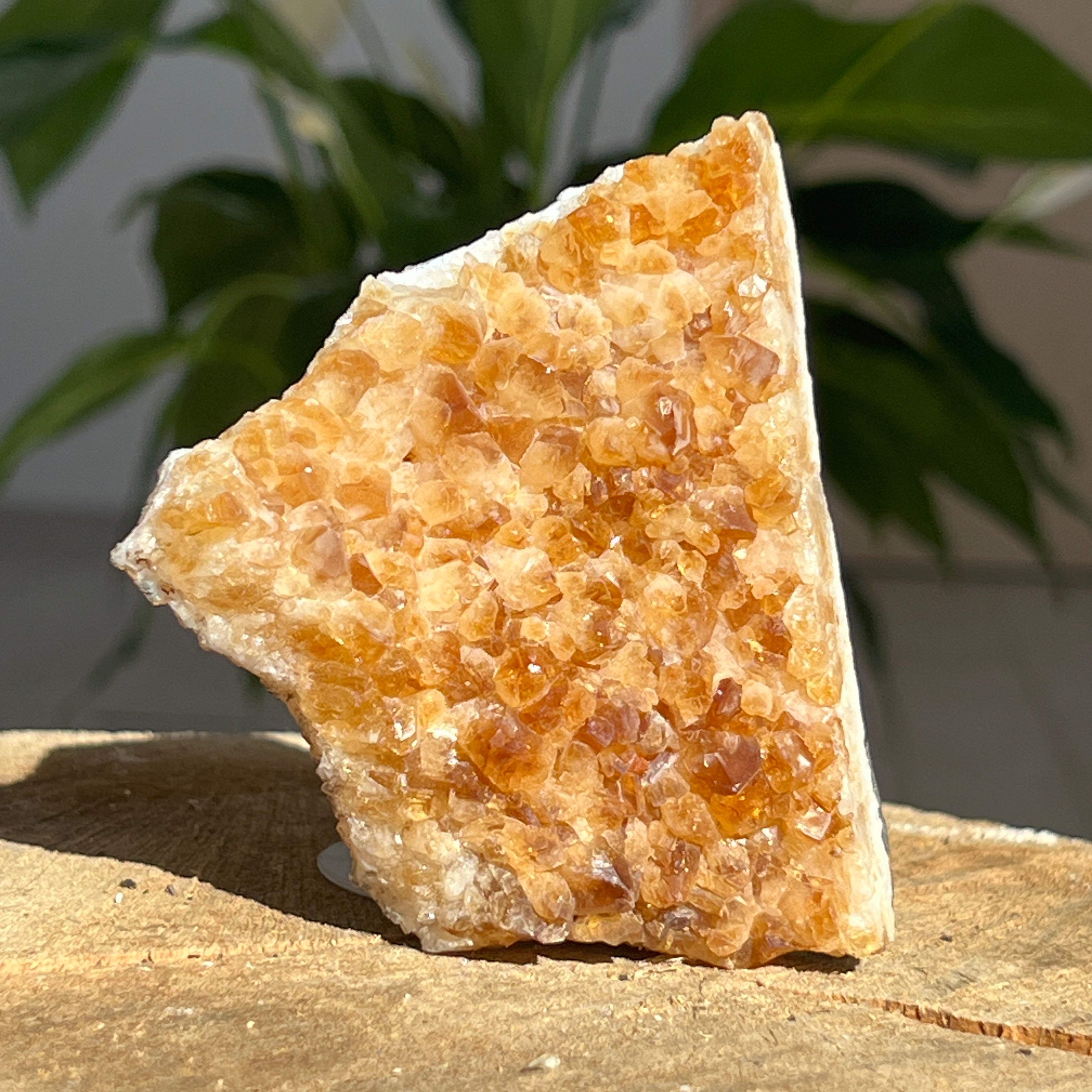 A kristályterápiábana citrint a bőség és az optimizmus kövének tartják. Még hőkezelt formában is fényes rezgése érezhető támogatásként a szellemi tisztánlátás, az öröm és a szándékok megvalósítása terén. Egy ekkora és ilyen intenzitású klaszter igazi fényponttá válik egy térben, harmóniát és jólétet vonzva.