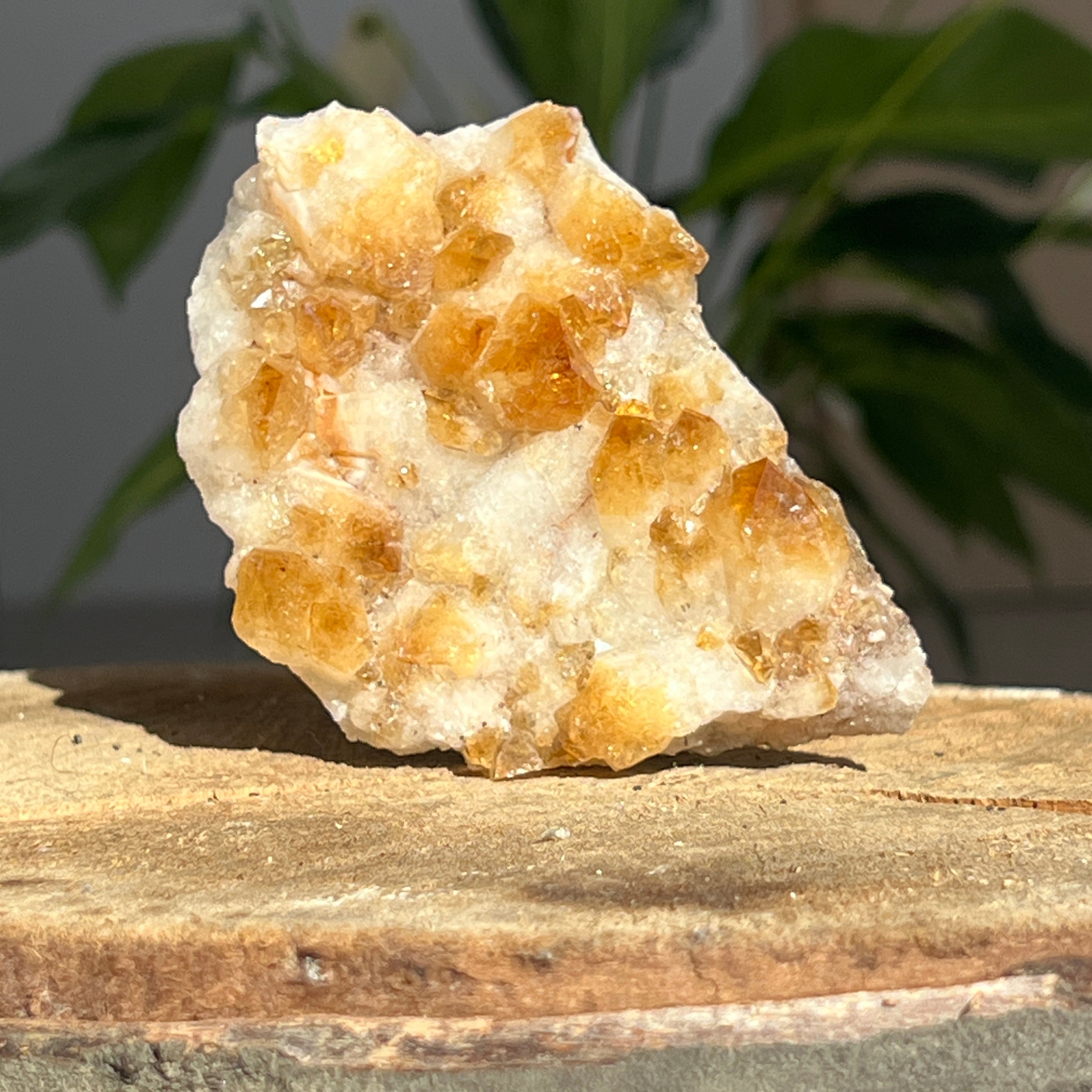 A kristályterápiábana citrint a bőség és az optimizmus kövének tartják. Még hőkezelt formában is fényes rezgése érezhető támogatásként a szellemi tisztánlátás, az öröm és a szándékok megvalósítása terén. Egy ekkora és ilyen intenzitású klaszter igazi fényponttá válik egy térben, harmóniát és jólétet vonzva.