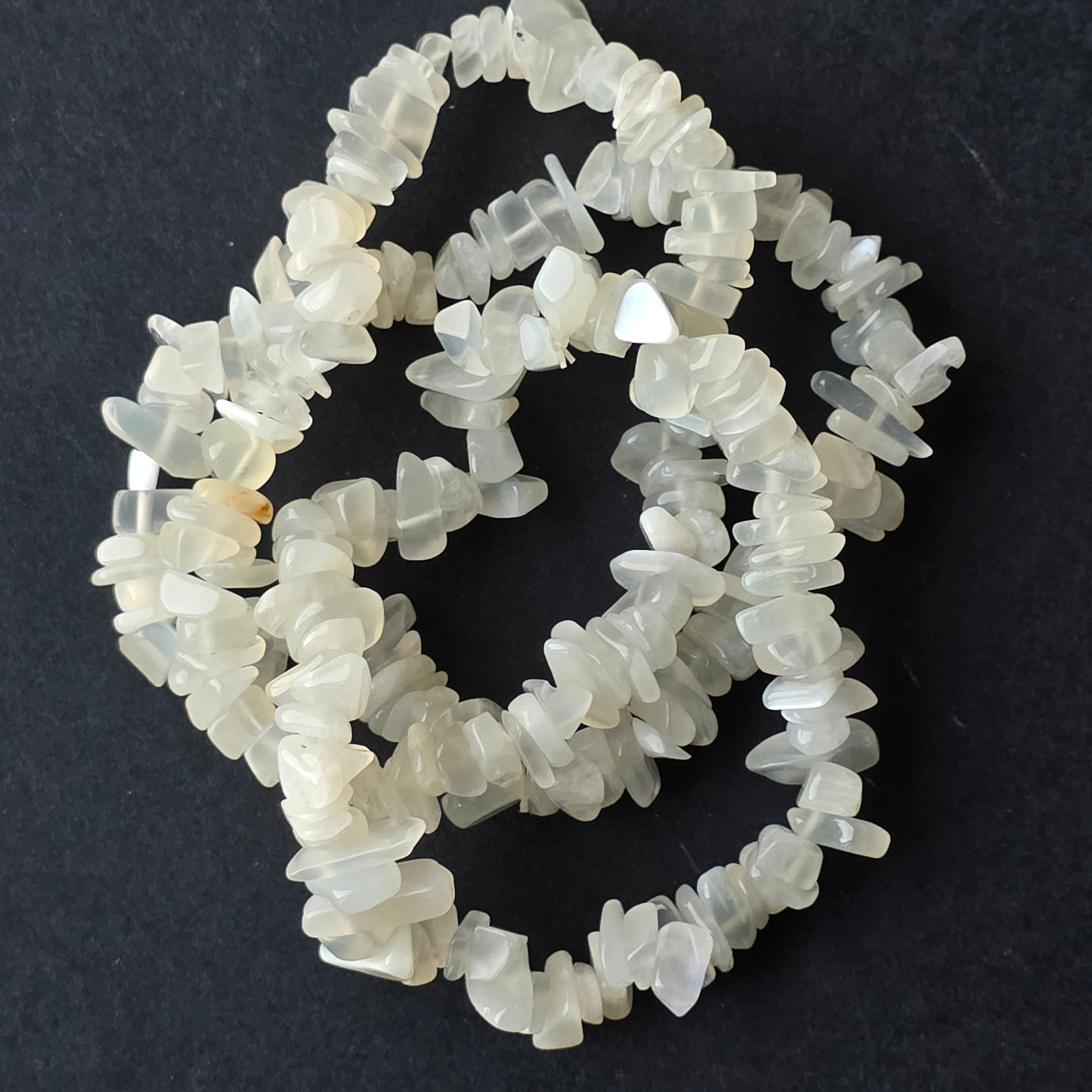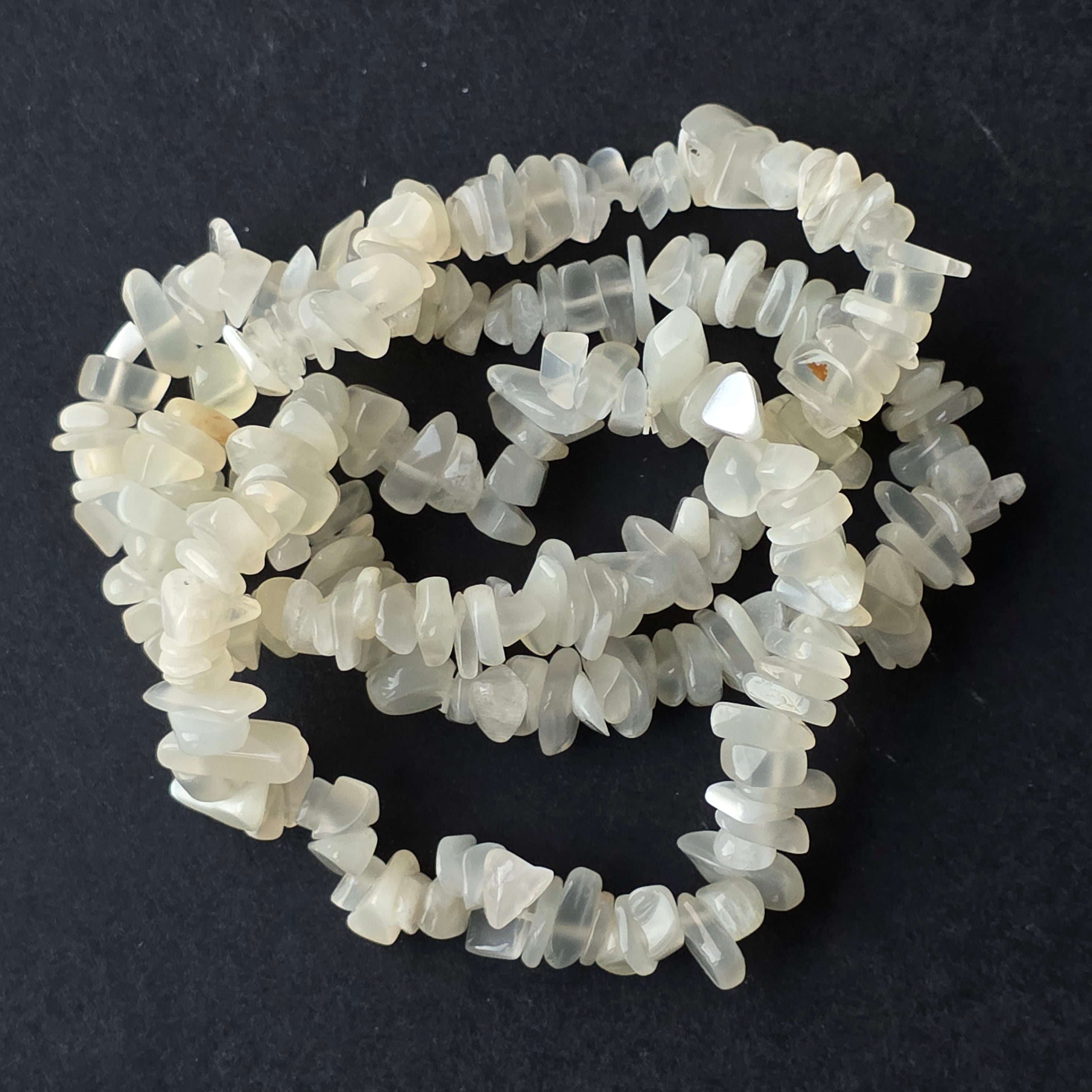 • Kő: természetes holdkő (szabálytalan, kézzel csiszolt chips) – az intuícióval, érzelmi harmóniával és a nyugodt nőiességgel társítva