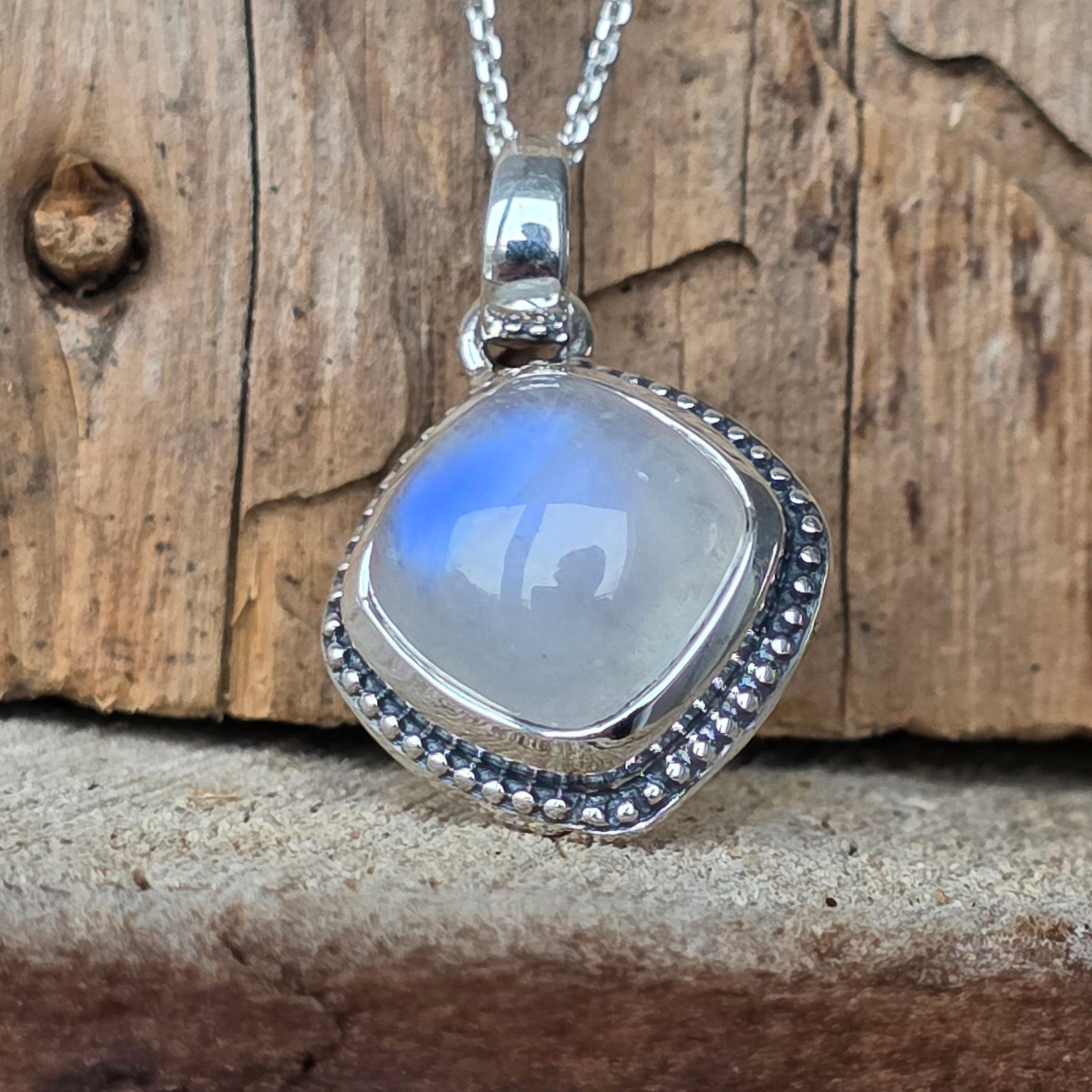 Egy különleges medál, amely egyesíti a holdkő természetes szépségét az ezüst eleganciájával – a menny és a föld harmóniájának szimbóluma.