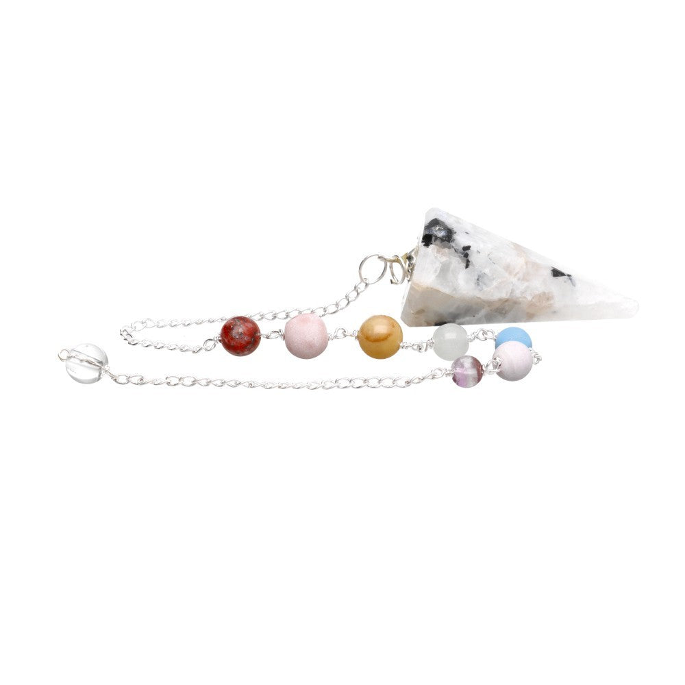 Holdkő inga 7 csakra zsinórral és kvarcgolyóval