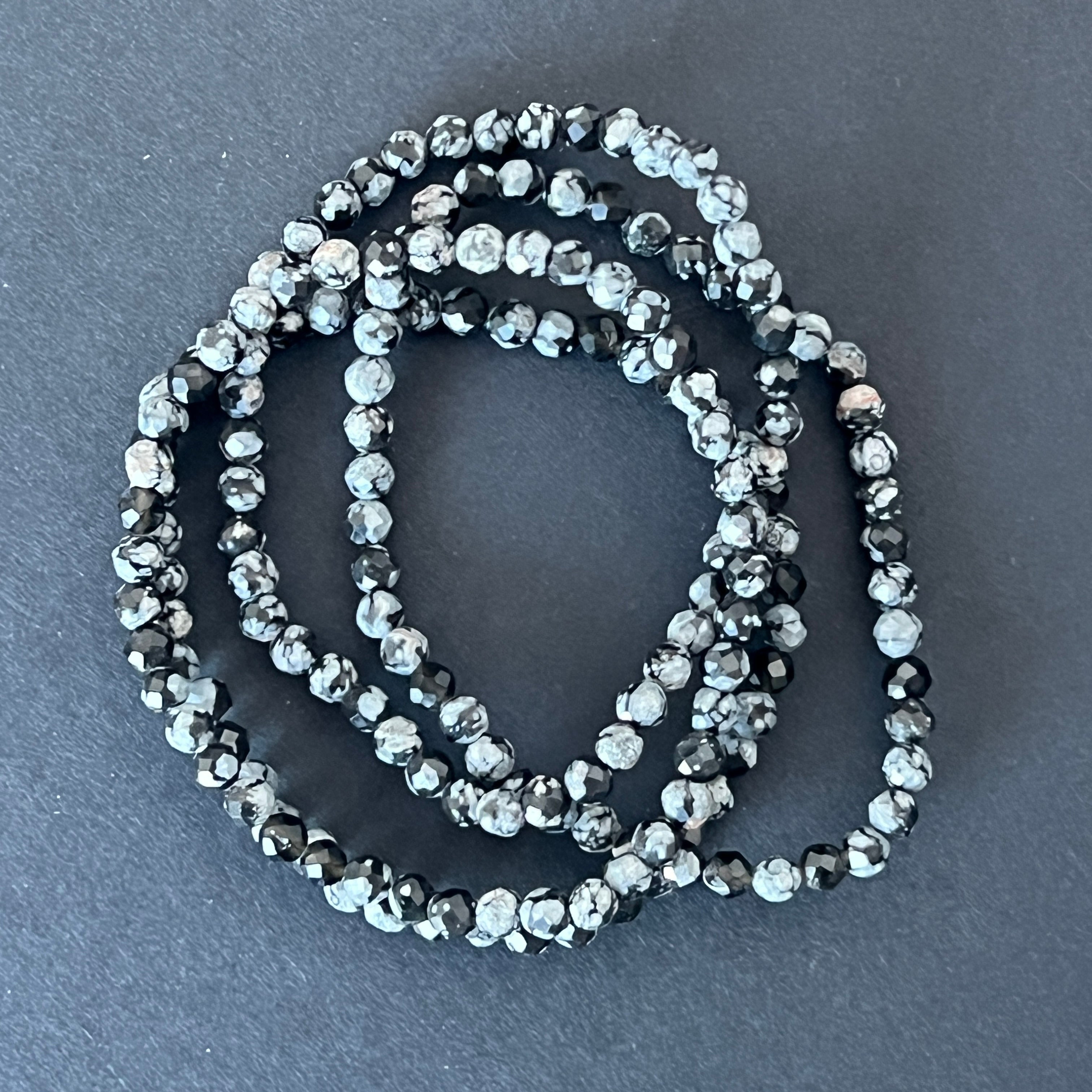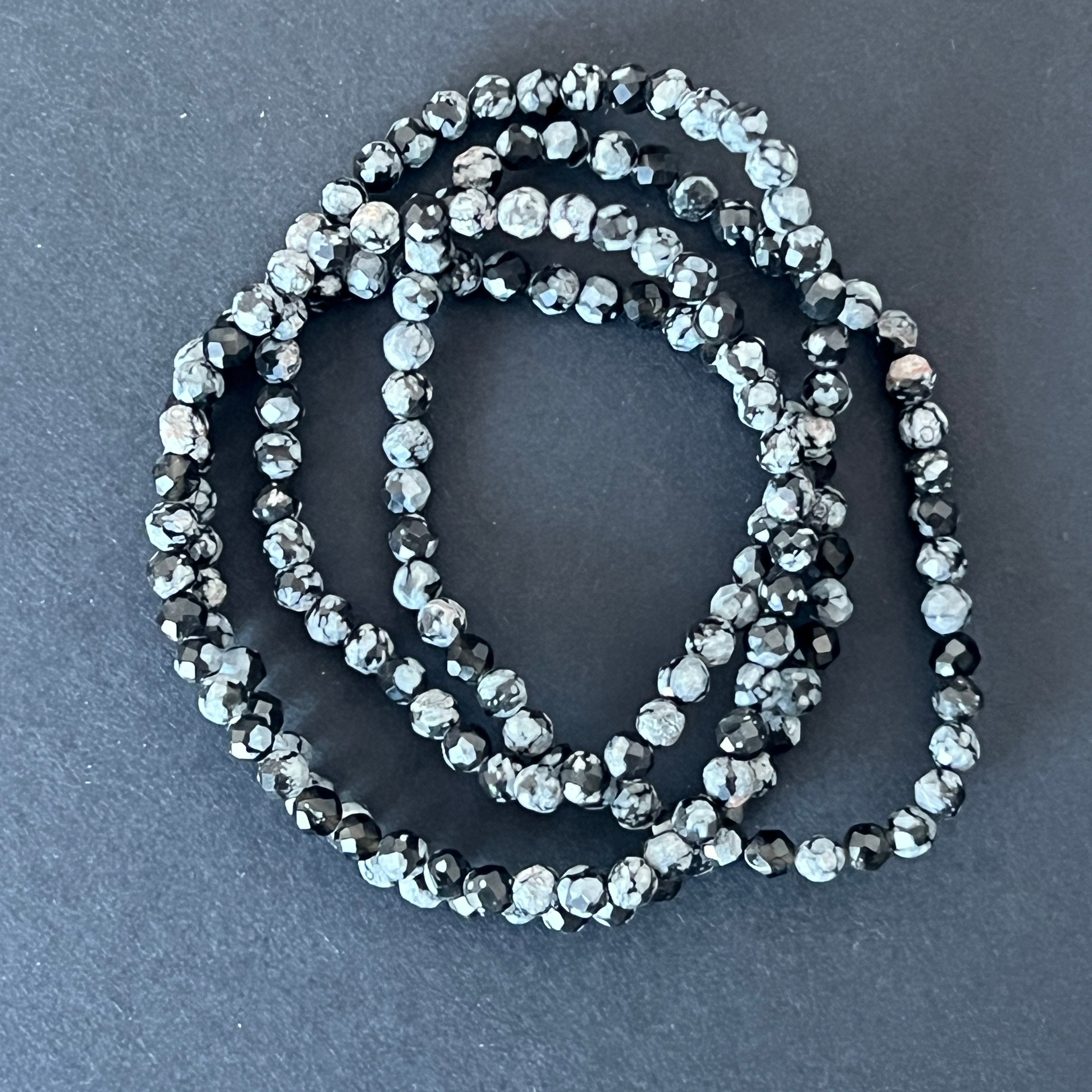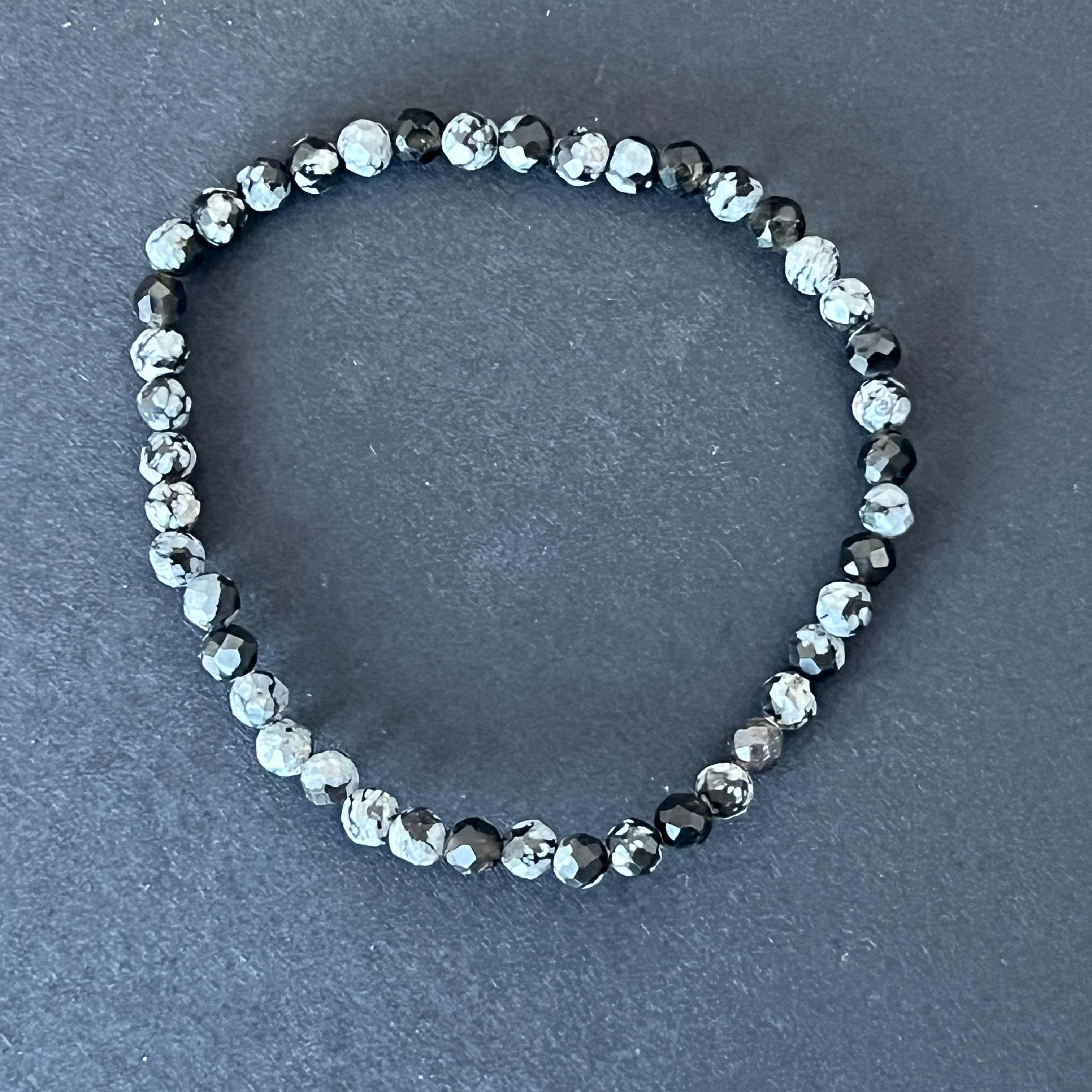 Hópehely obszidián fazettált karkötő 4,5 mm-es gyöngyökkel