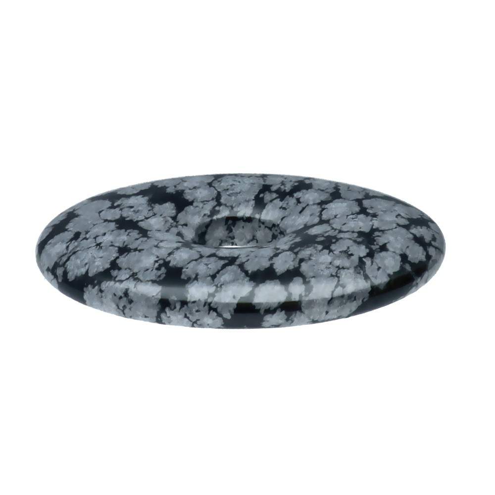 A hópehely obszidián L donuts medál a mélyfeketét finom fehér foltokkal ötvözi, akárcsak a kőre hullott hópelyhek.