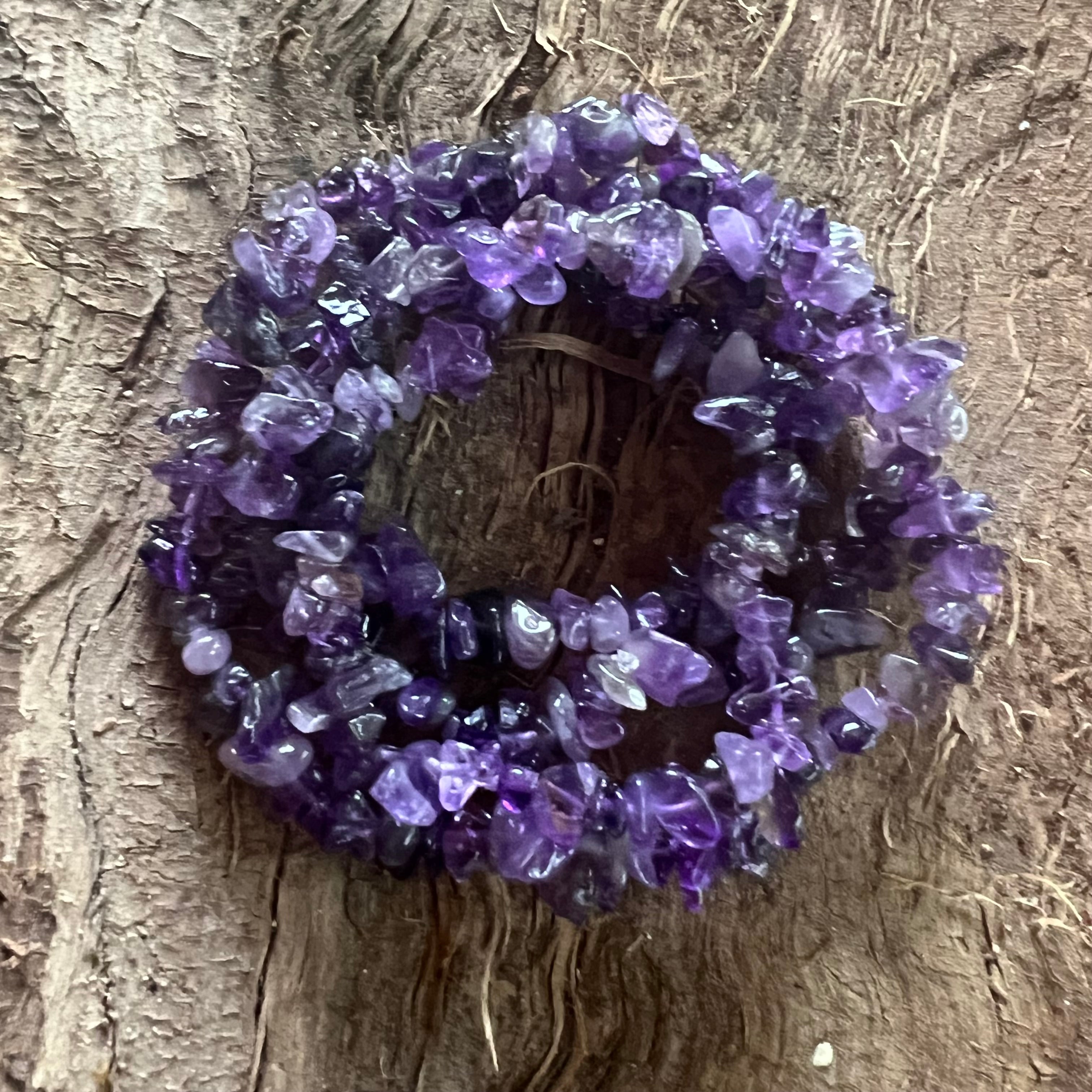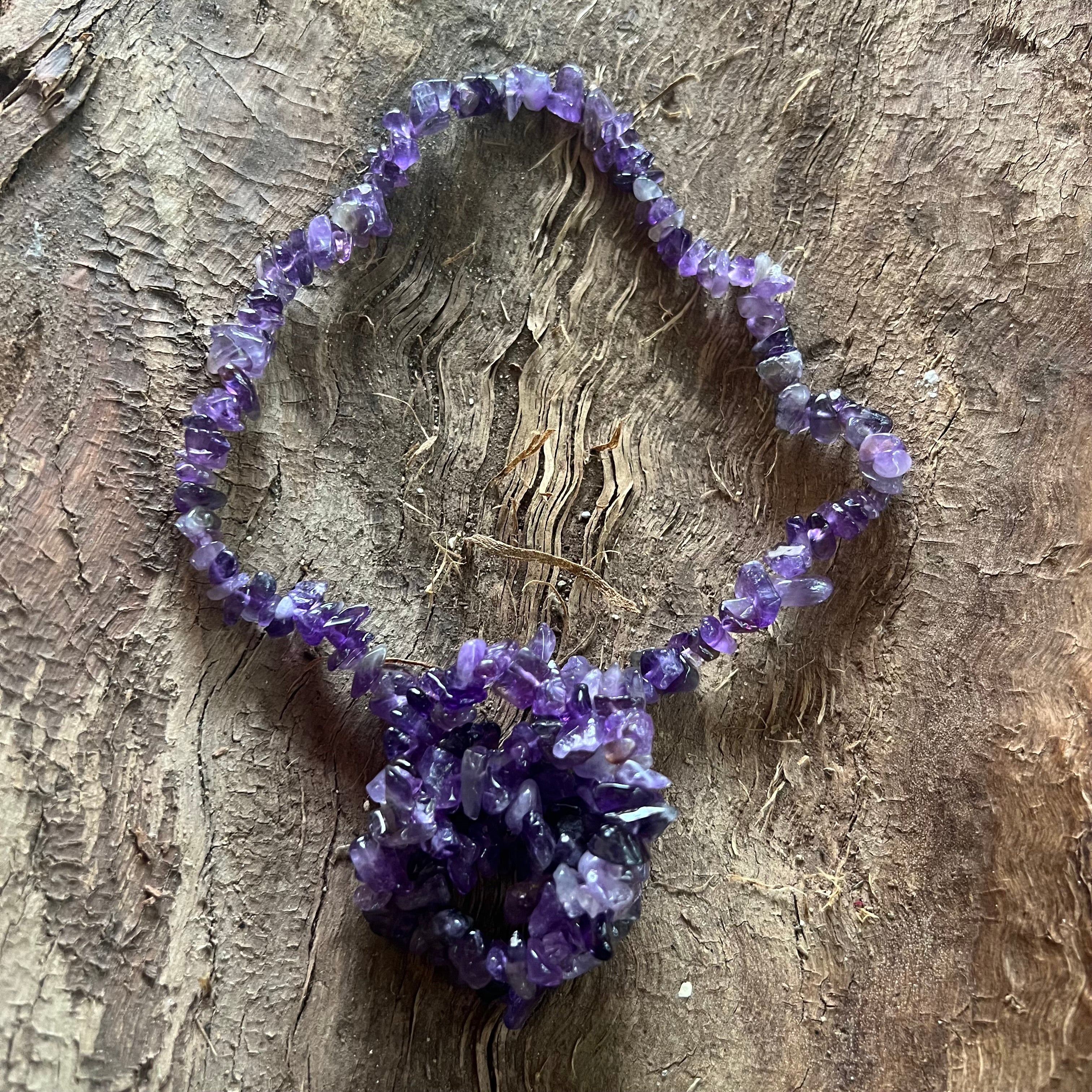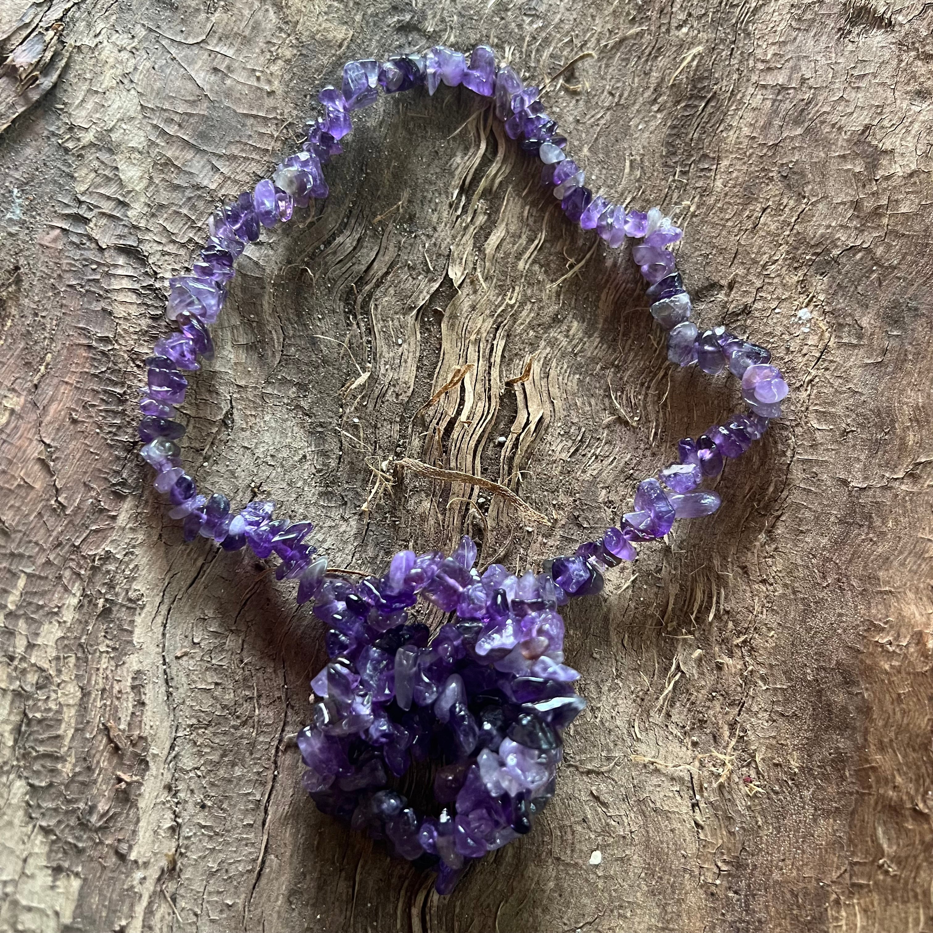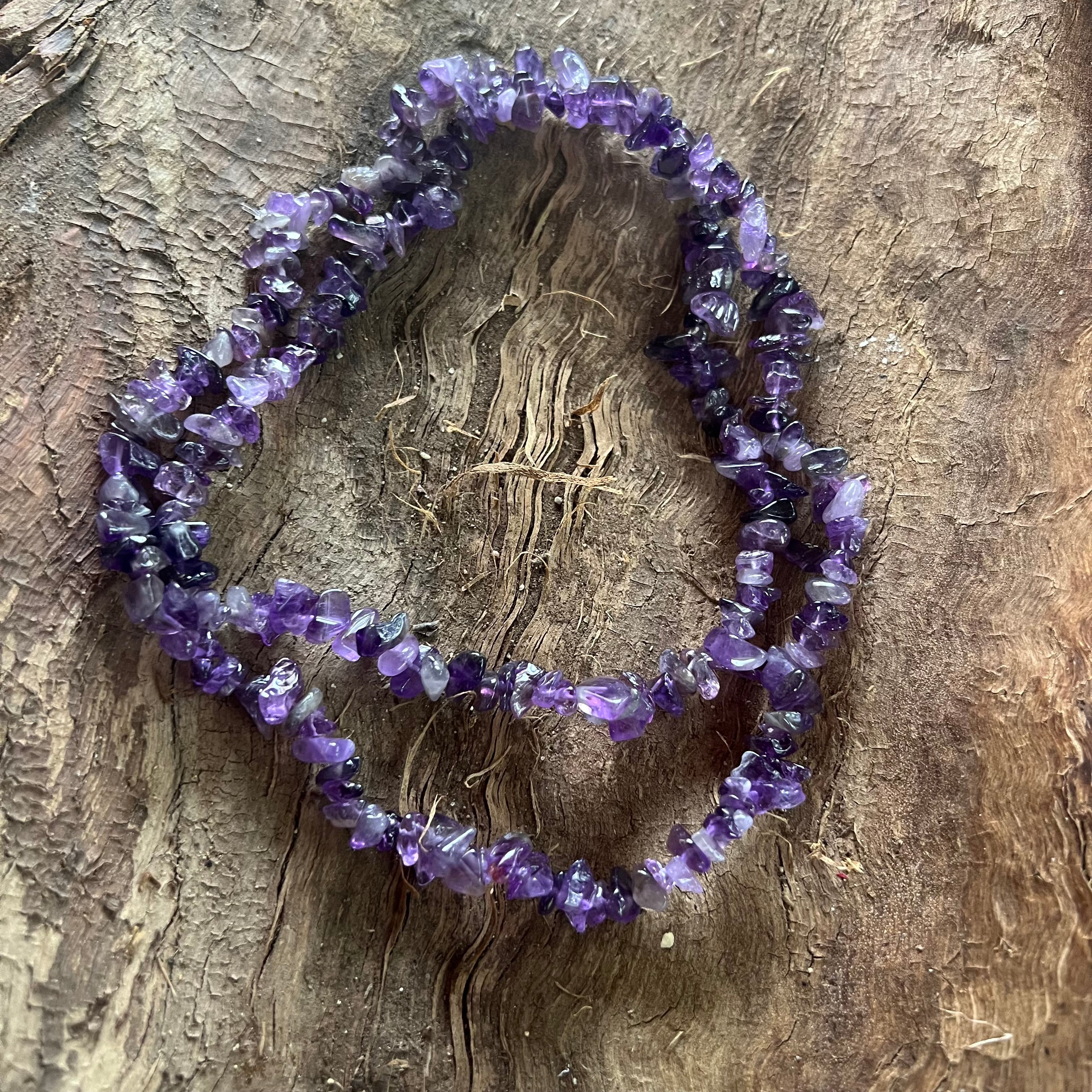 Hosszú ametiszt chips nyaklánc, kb. 80 cm hosszú
