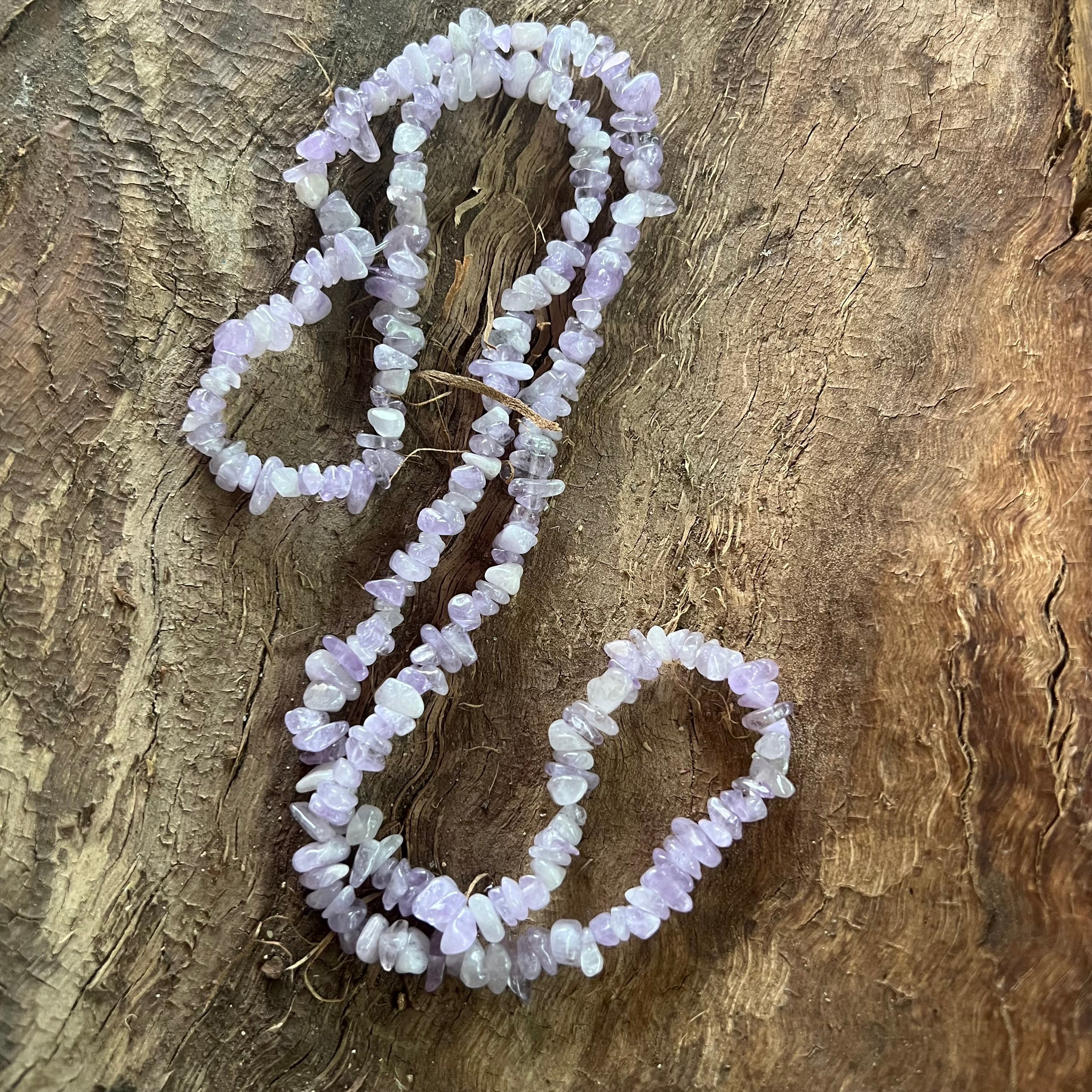 Hosszú ametiszt-lavender chip nyaklánc, kb. 80 cm hosszú