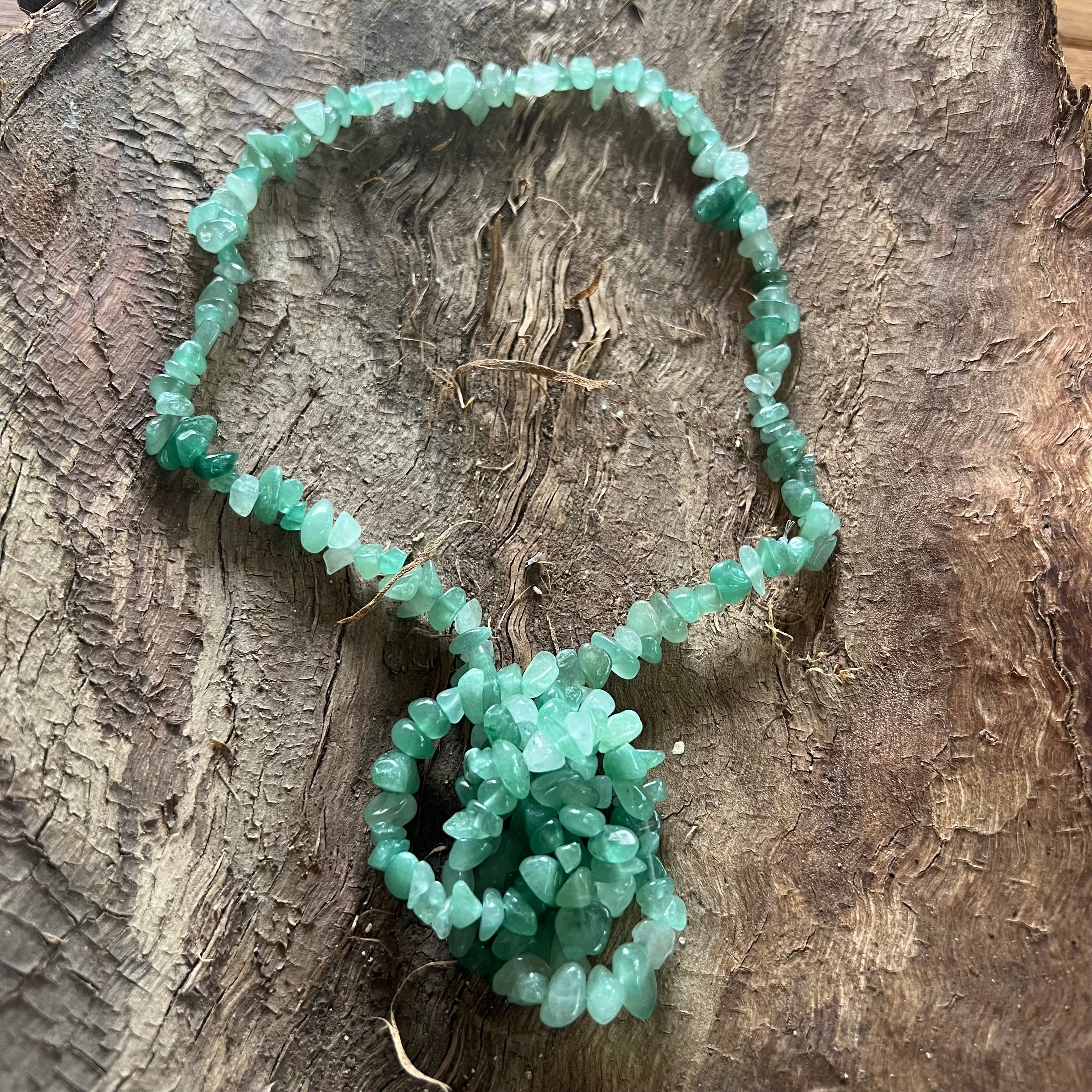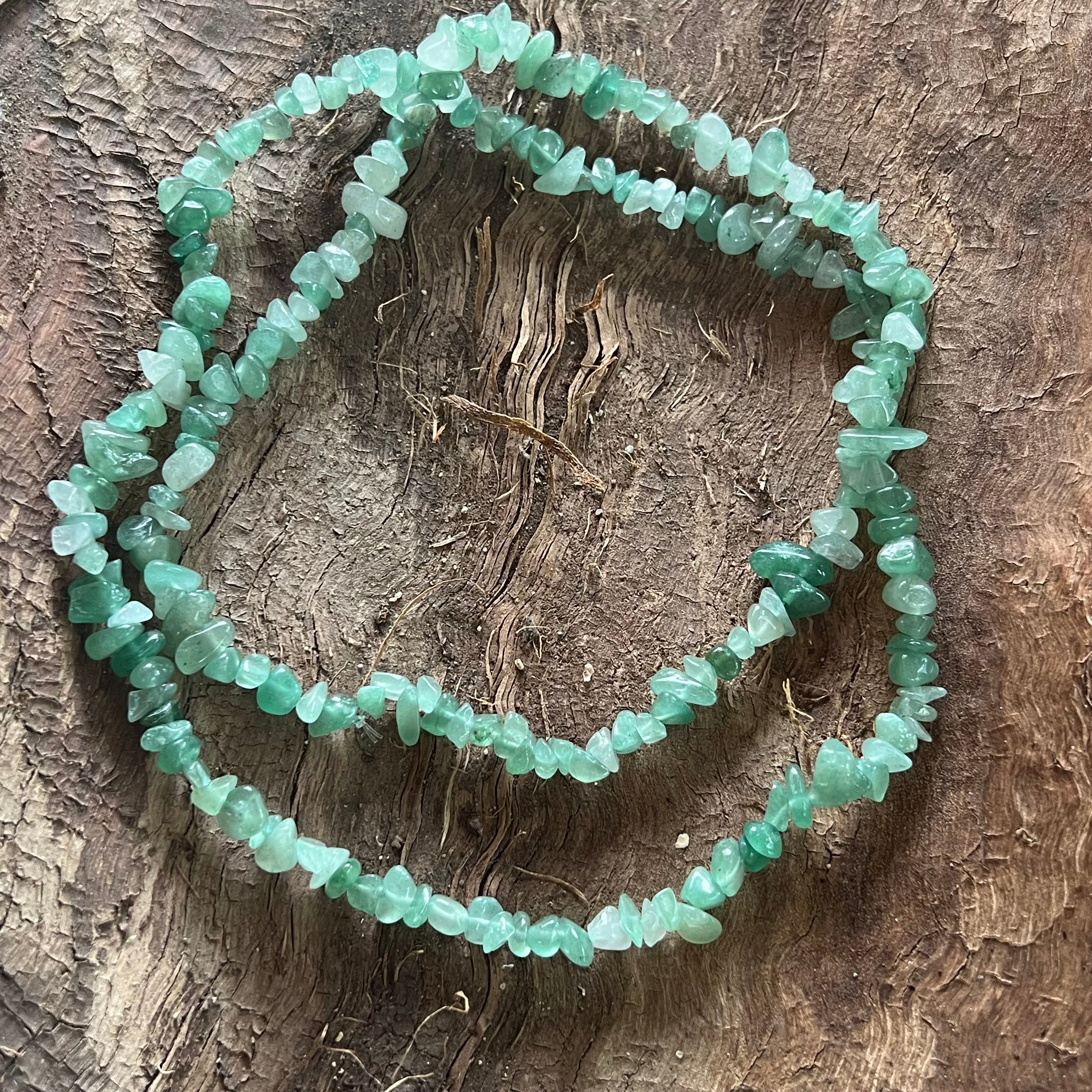Hosszú aventurin chips nyaklánc, körülbelül 80 cm hosszú