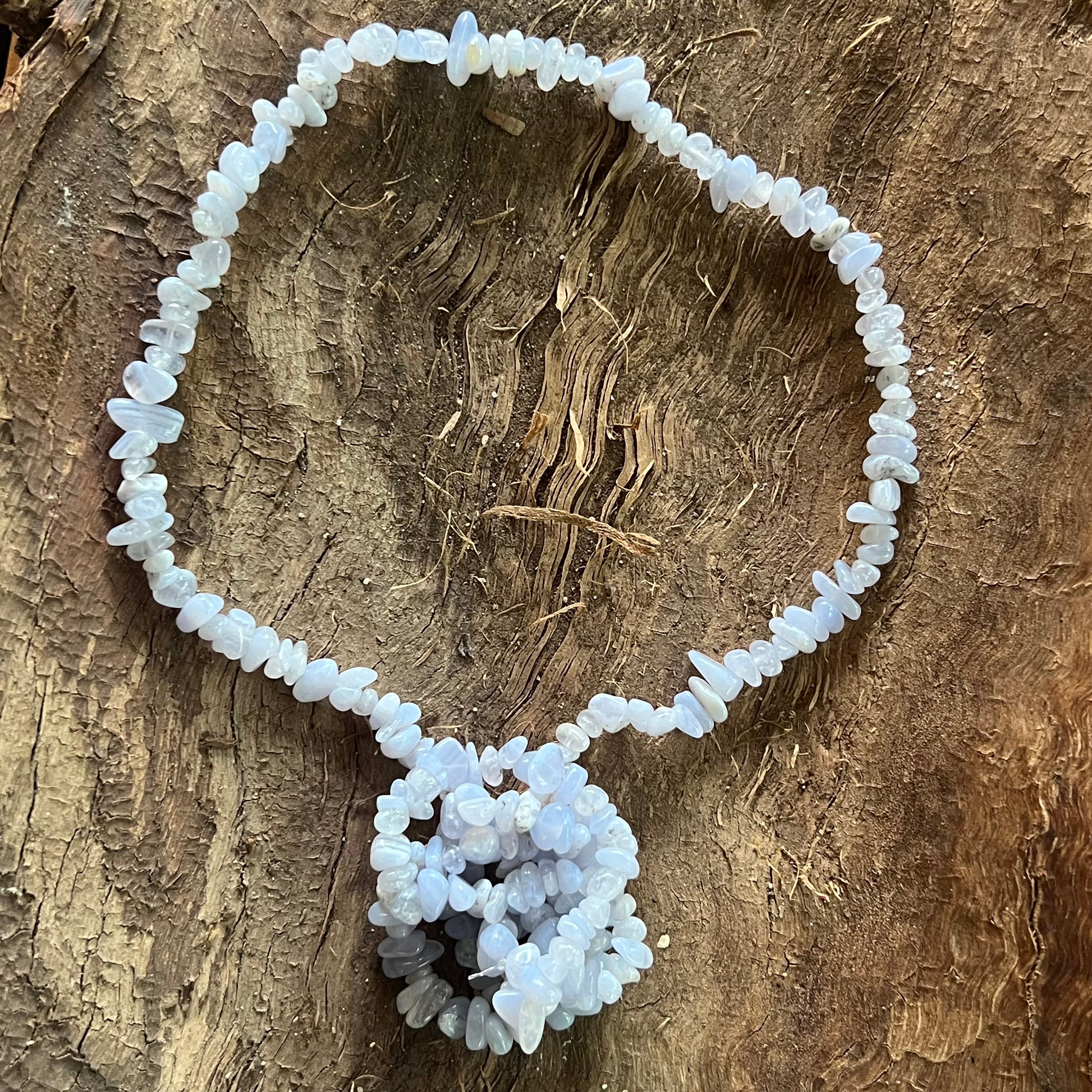 Hosszú kék kalcedon csipke nyaklánc