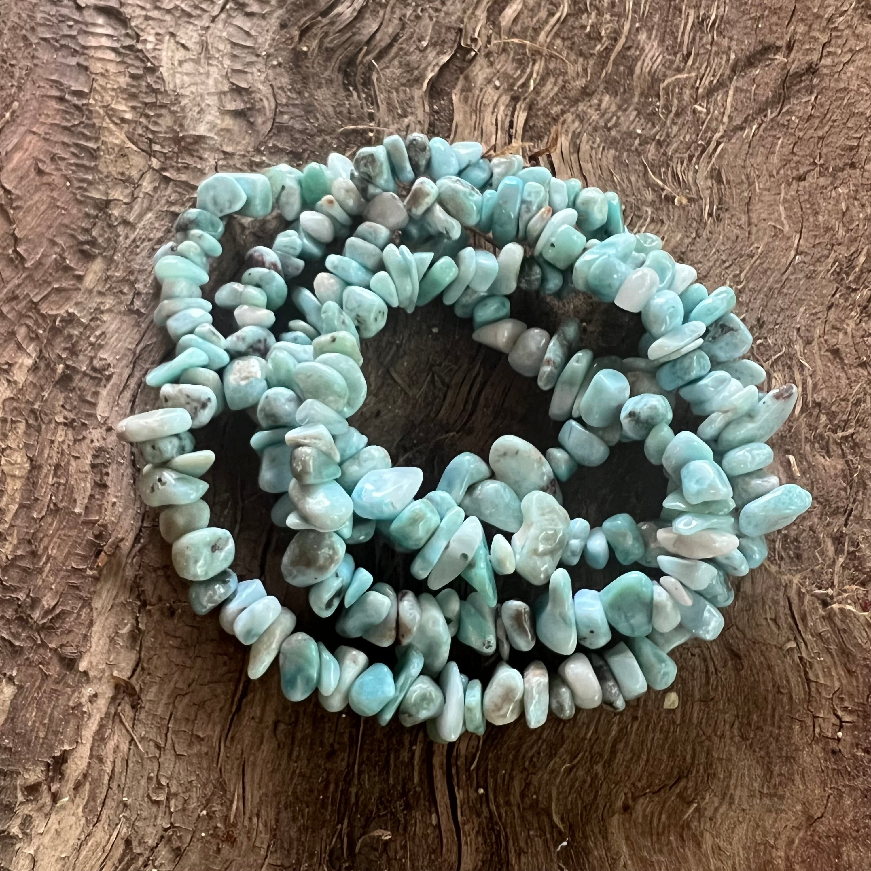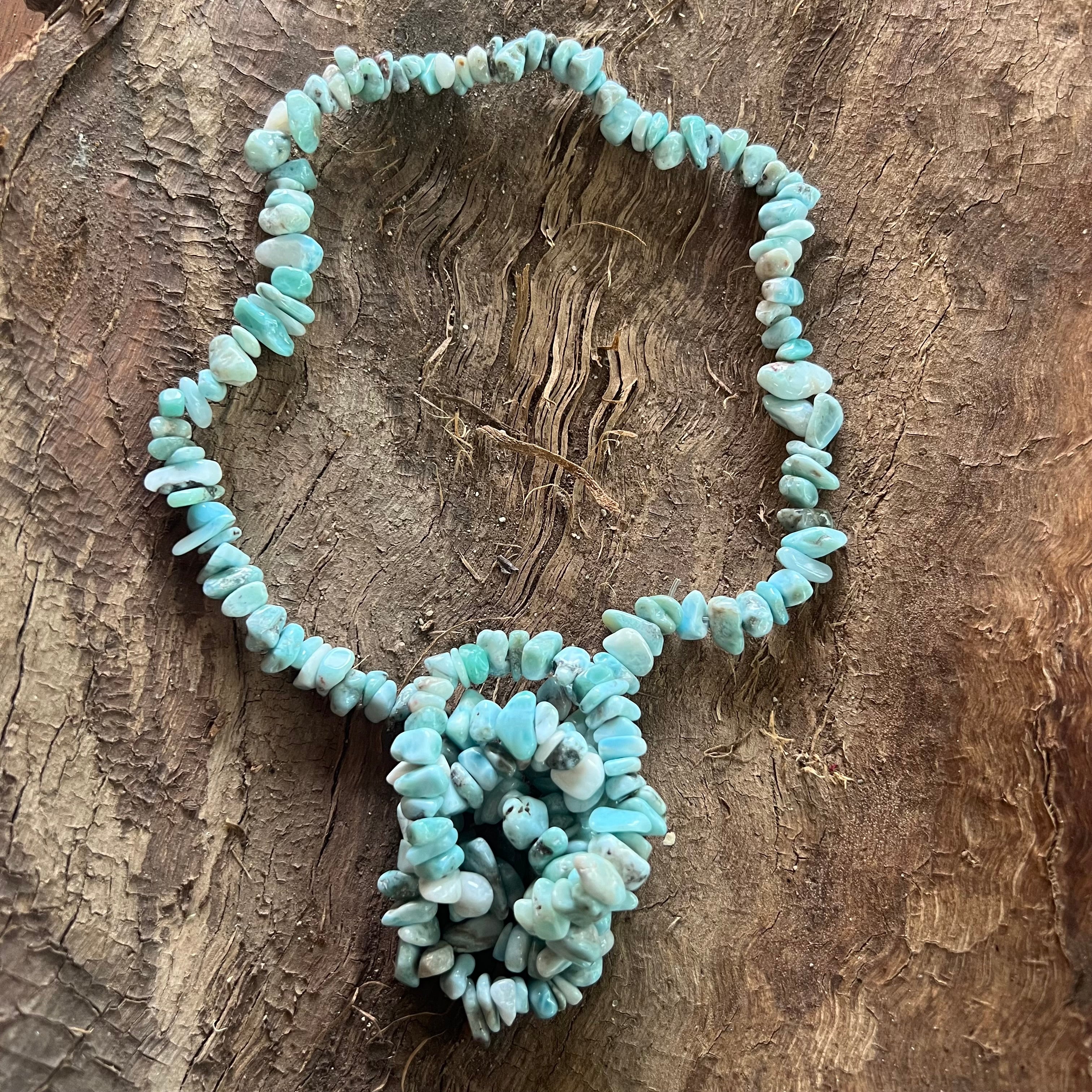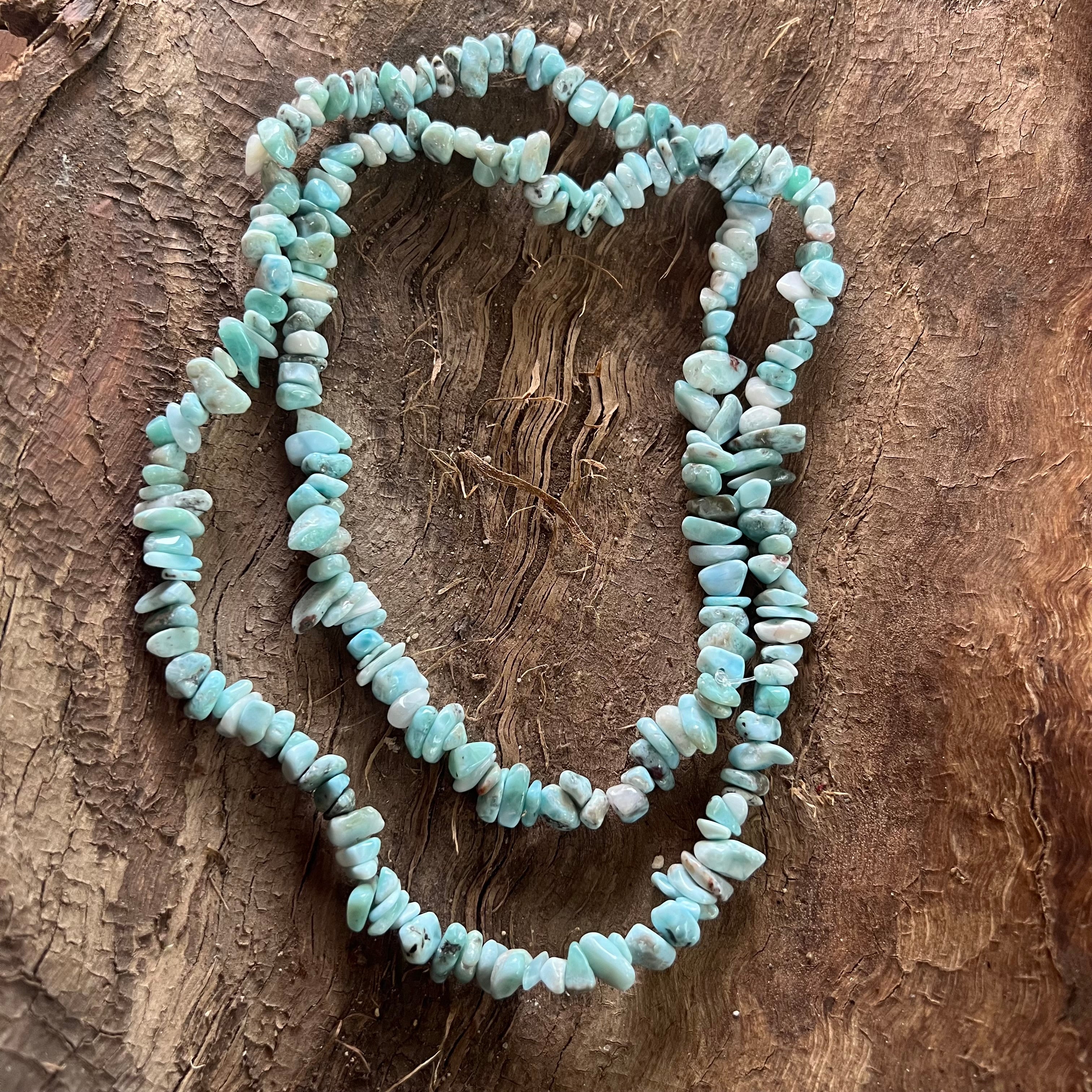 Hosszú larimar chips nyaklánc, kb. 80 cm hosszú