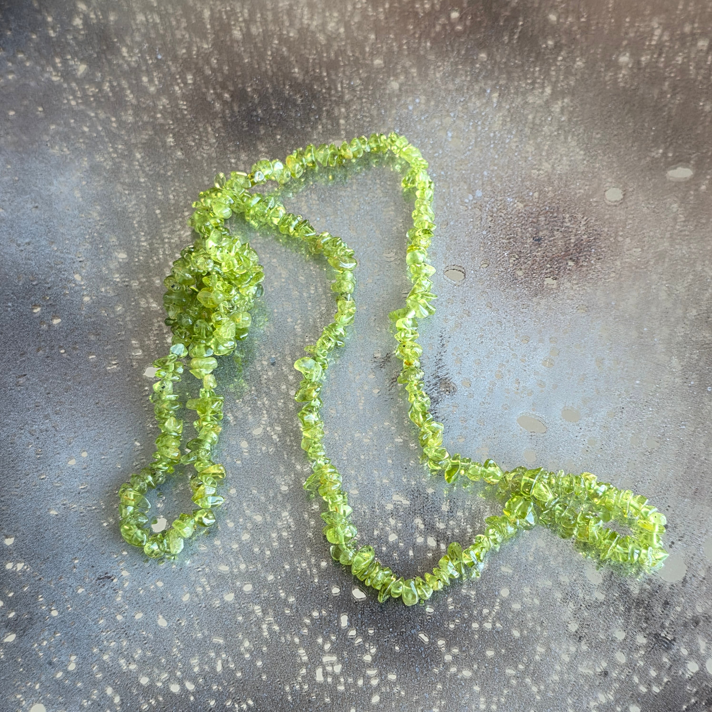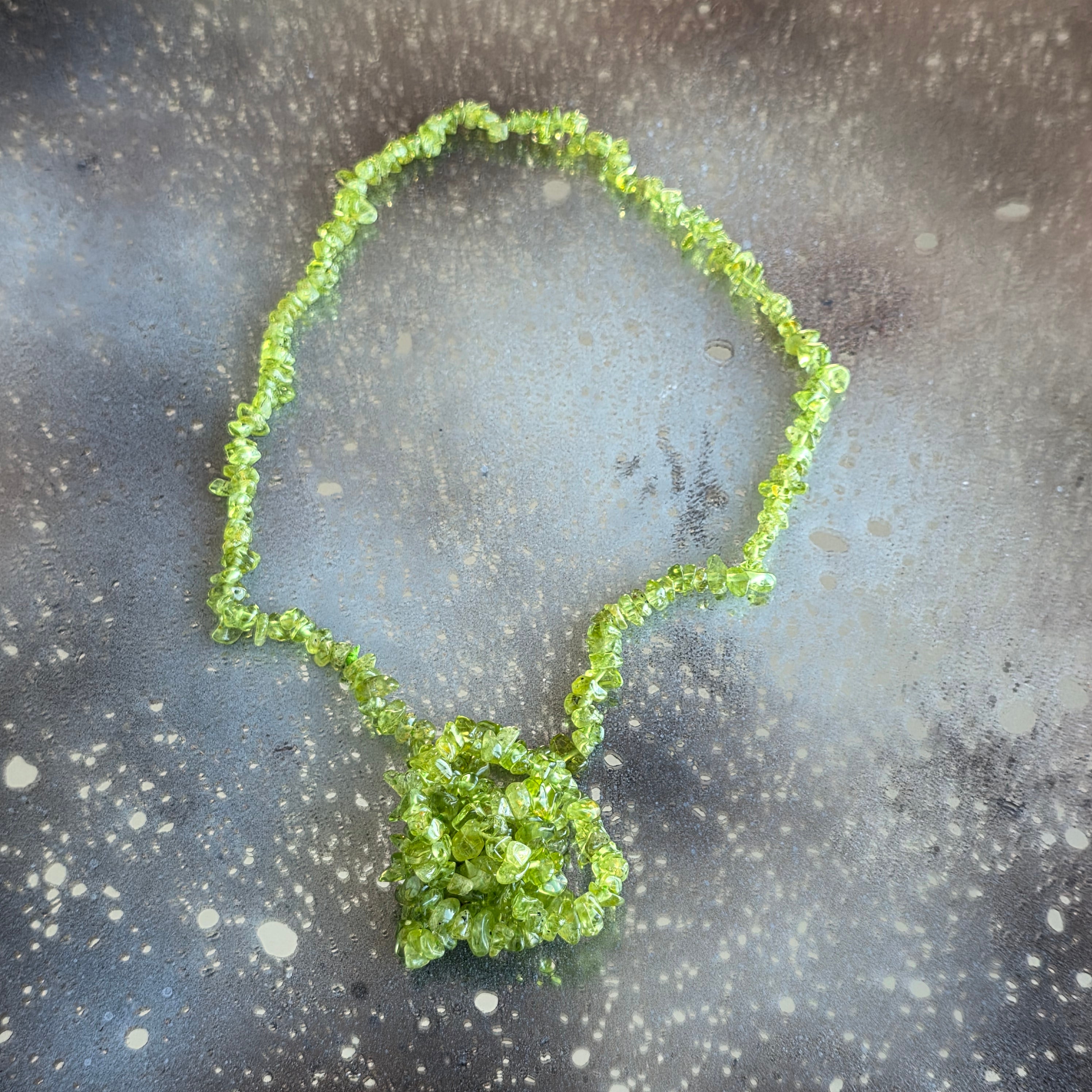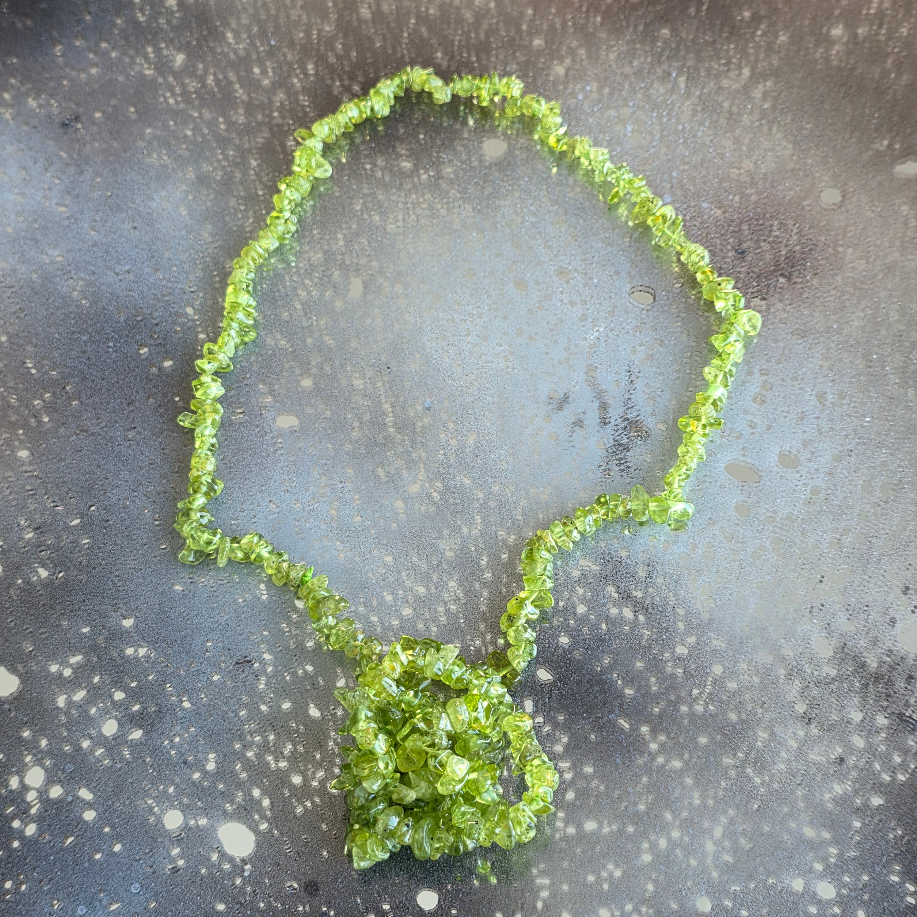 Leírás - Hosszú nyaklánc peridot chipsekkel