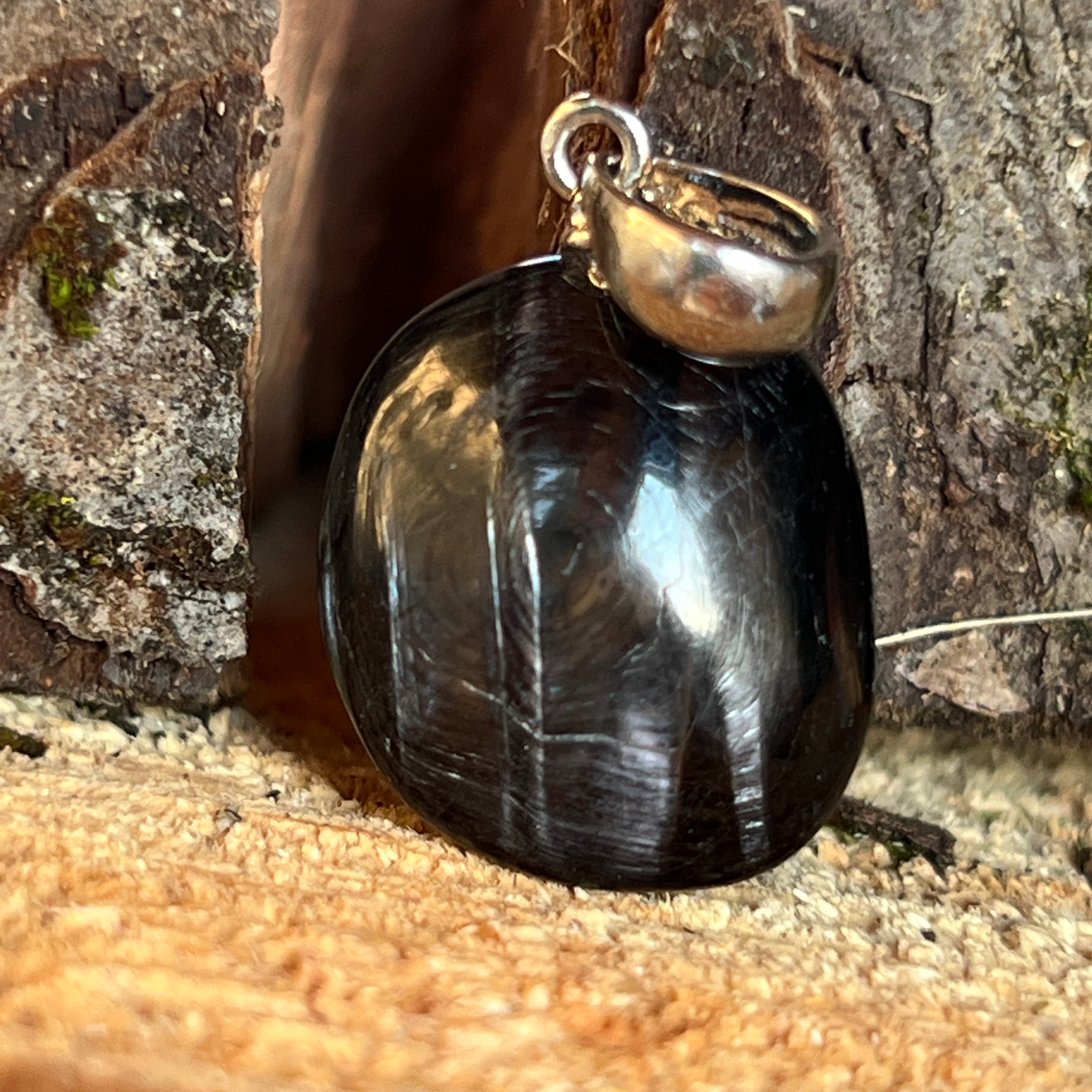 Elegáns és titokzatos, ez természetes bukdácsolt hipersztén medál úgy tűnik, hogy magában tartja a kozmosz néma fényét. A szürkétől a sötétbarnáig terjedő gyöngyszemei az árnyékok és a csúcsfények finom játékát keltik – önvizsgálatra és belső egyensúlyra hívnak.