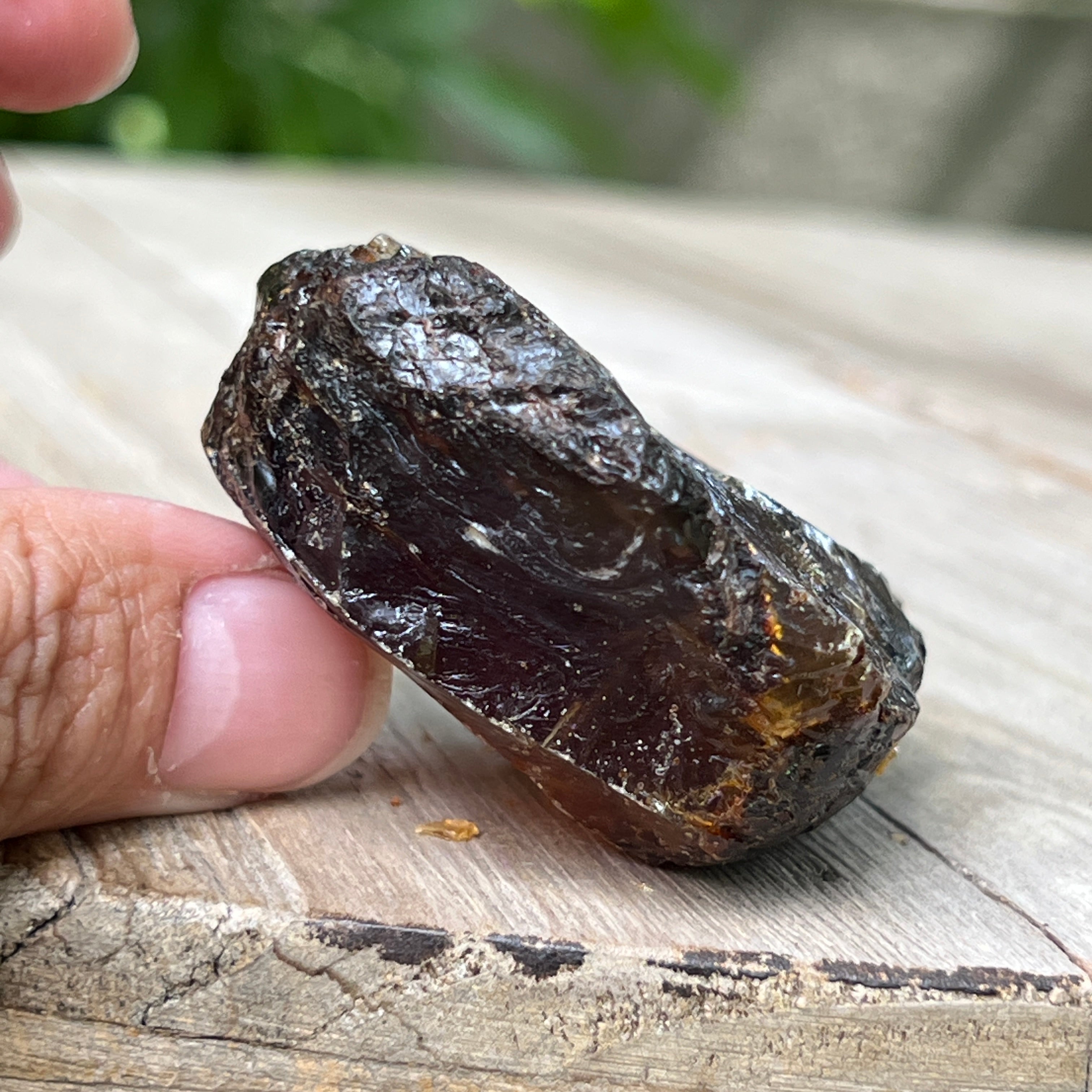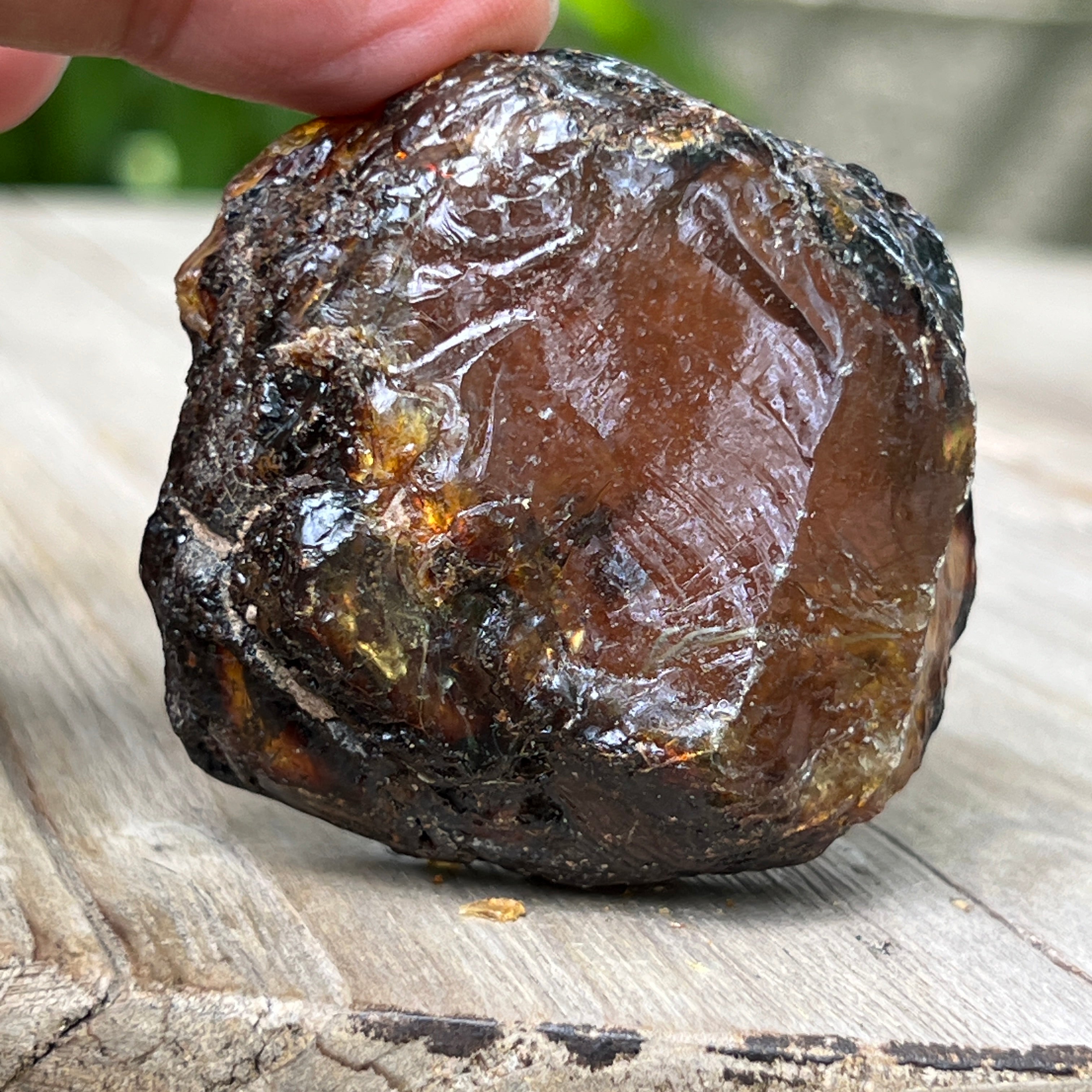 Természetes, durva fosszilis gyanta példány, Indonézia, Szumátra régiójából – az egyik kevés aktív gyanta forrás Délkelet-Ázsiában. Ez a trópusi terület gazdag szerves üledékekben és intenzív geológiai aktivitással rendelkezik, ideális feltételeket biztosítva a gyanta képződéséhez.