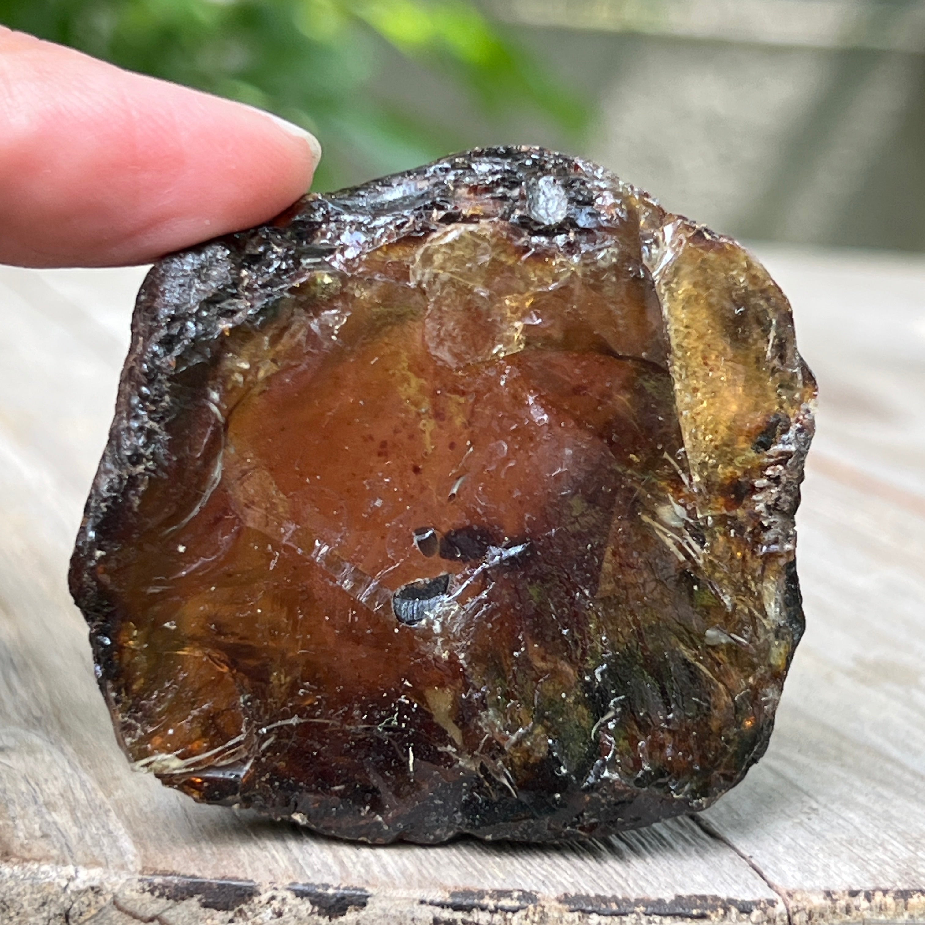 A bemutatott darab nyers, feldolgozatlan, szabálytalan felületű és természetes alakú. A színe a meleg sárgától a sötétbarnáig változik, és az anyaga opálos, enyhén áttetsző részekkel. Gyűjtők, geológiai érdeklődésűek vagy oktatási célú kiállítás számára ideális.