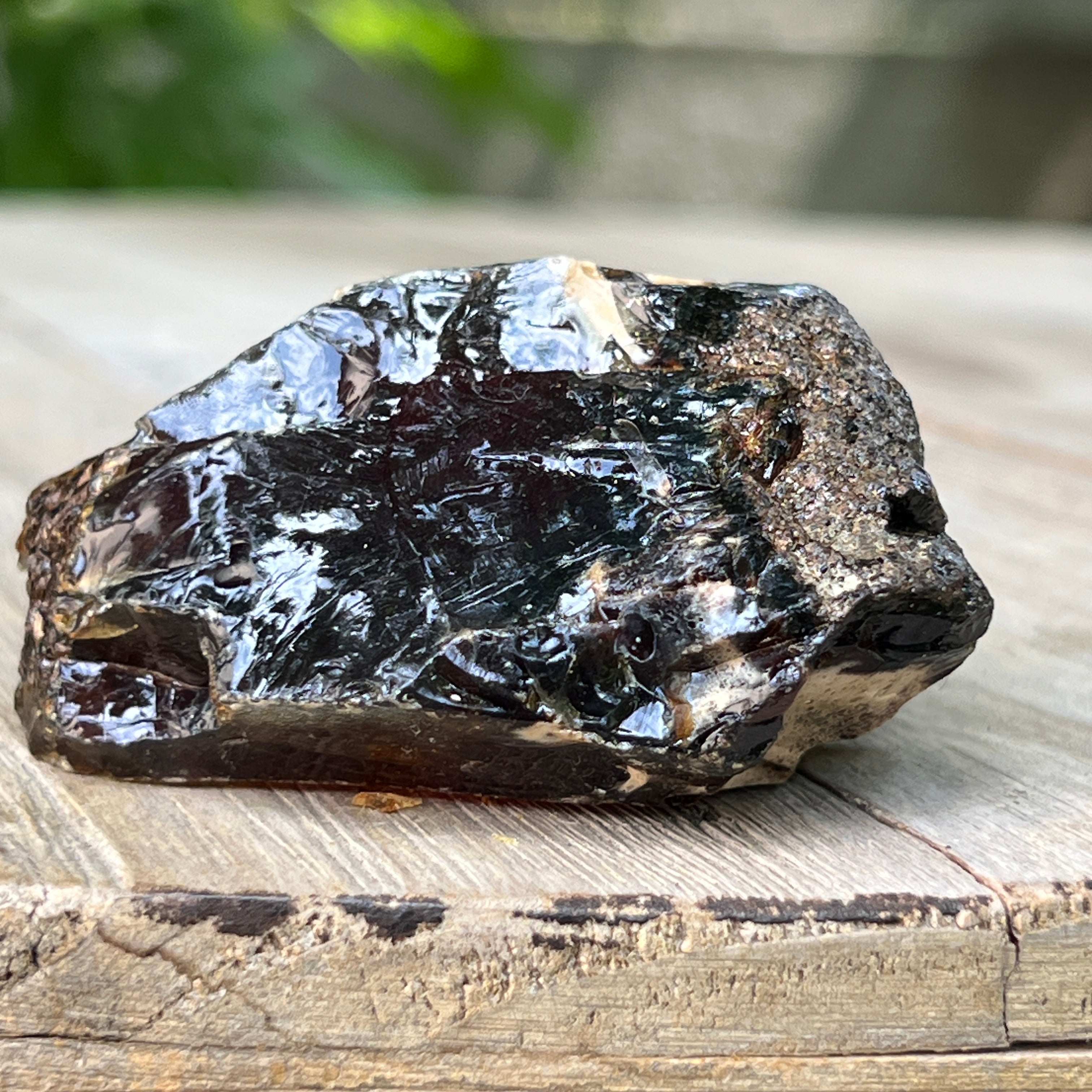A bemutatott darab nyers, feldolgozatlan, szabálytalan felületű és természetes alakú. A színe a meleg sárgától a sötétbarnáig változik, textúrája opálos, enyhén áttetsző részekkel. Gyűjtőknek, geológia iránt érdeklődőknek vagy oktatási célú kiállításra ideális.